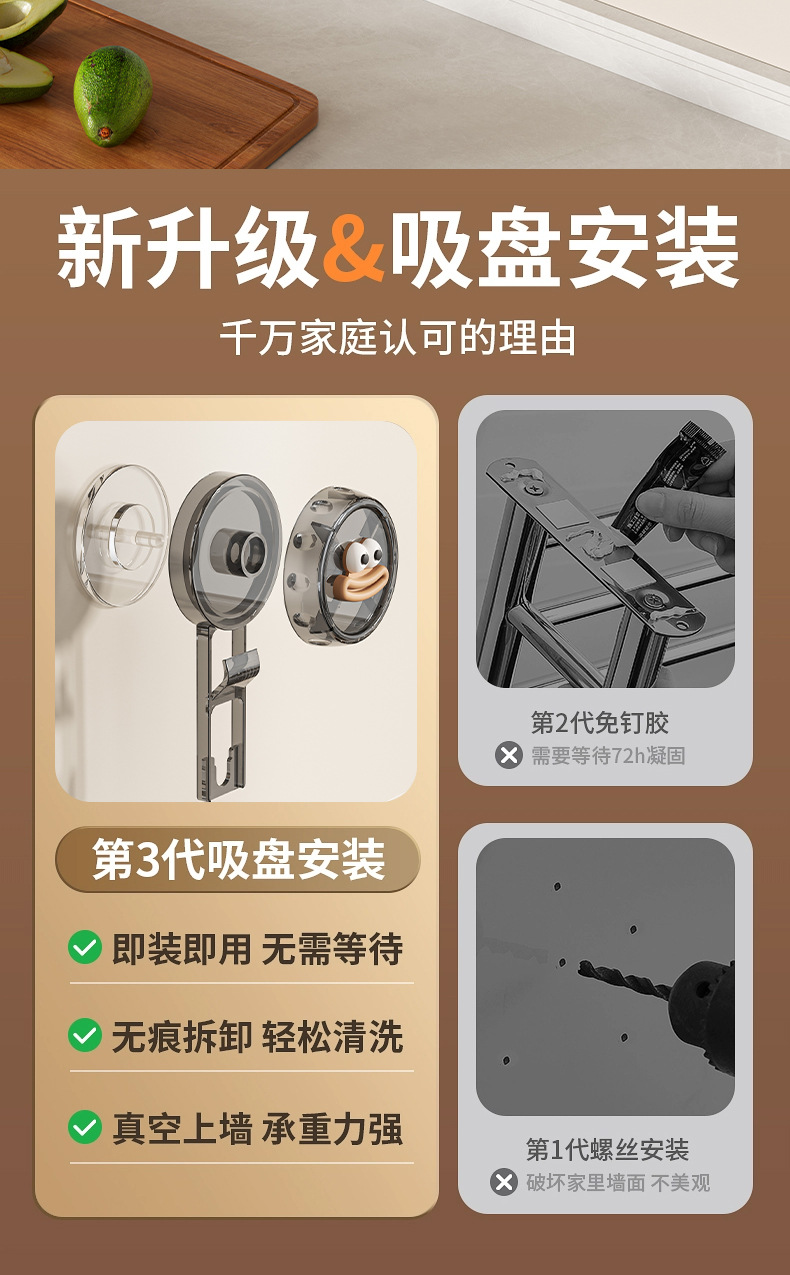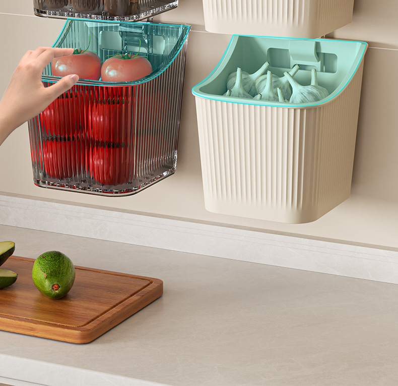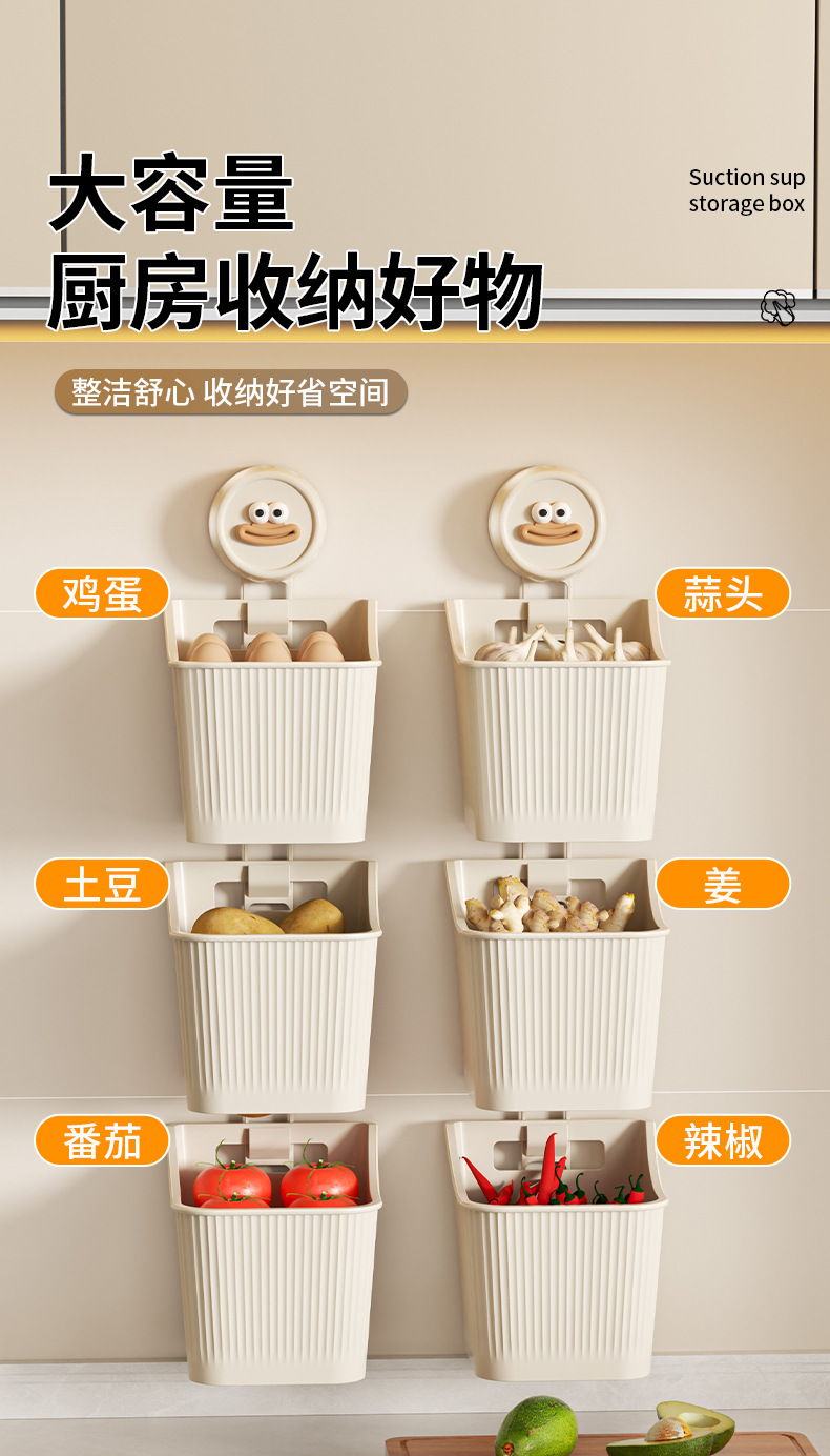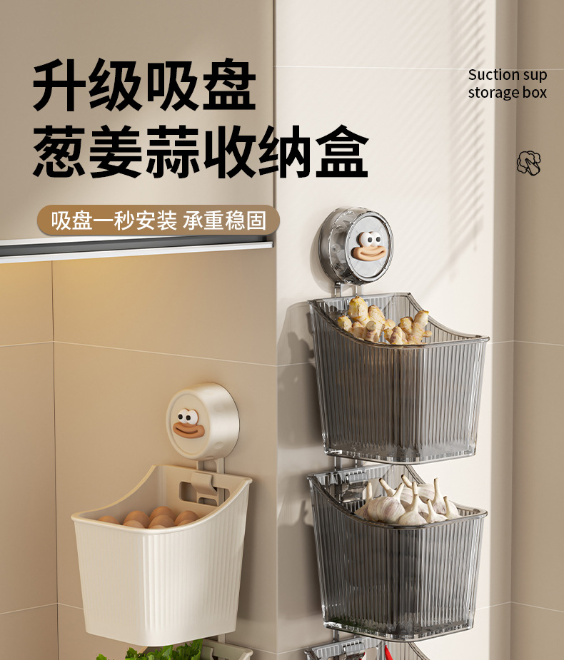 주방 흡입컵 양파, 생강, 마늘 보관함, 벽걸이형 생강 마늘 걸이 바구니, 펀치 없는 마늘 보관함