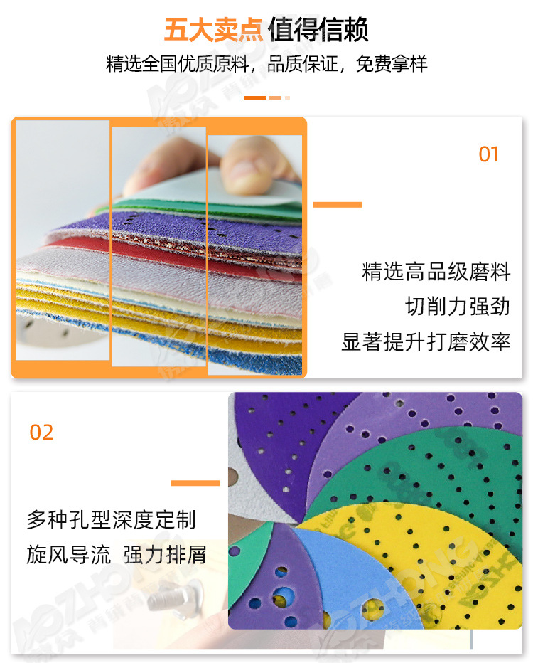 페인트 수리용 맞춤형 플록 사포, 목재 연마, 금속 표면 처리, 기모 디스크 사포
