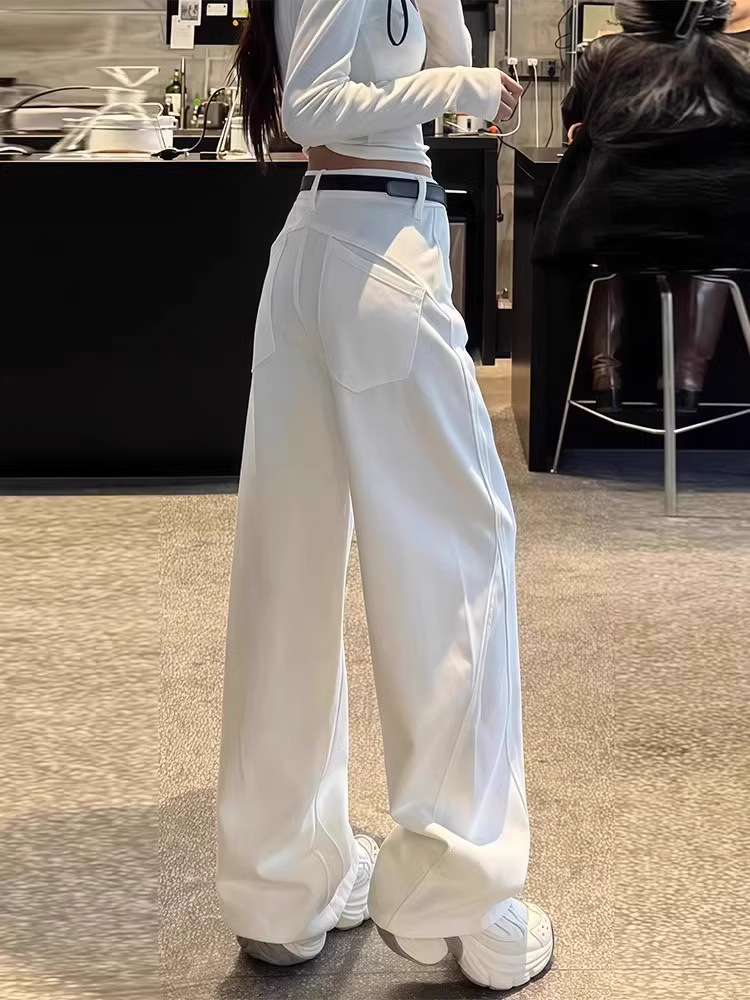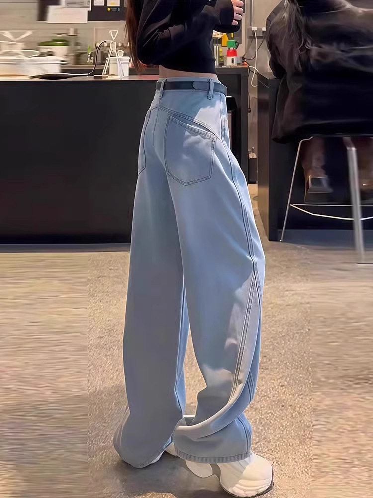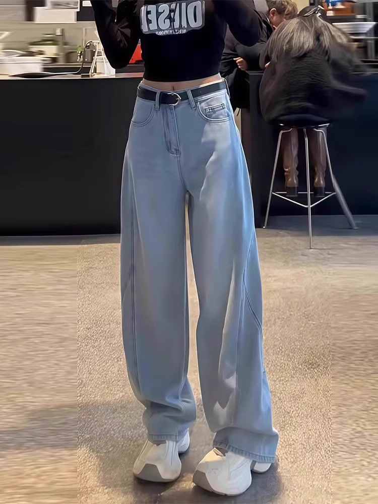 여성용 레트로 세이버 청바지 봄 여름 뚱뚱한 mm 대형 배꼽 모양의 몸 루즈한 하이 웨이스트 슬리밍 스트레이트 와이드 레그 팬츠스토어 가기