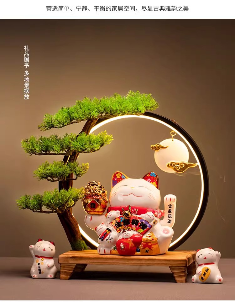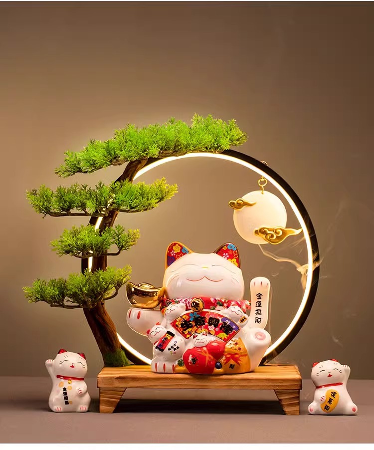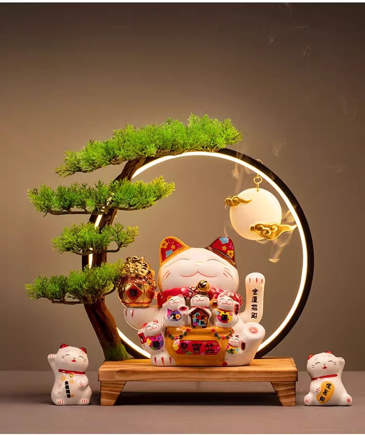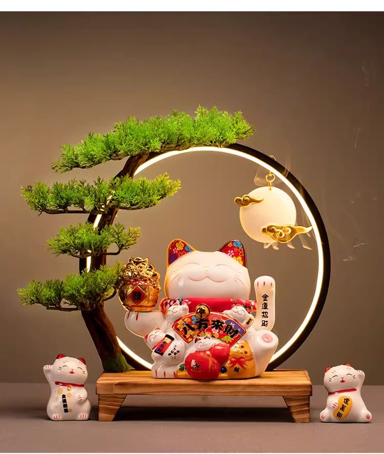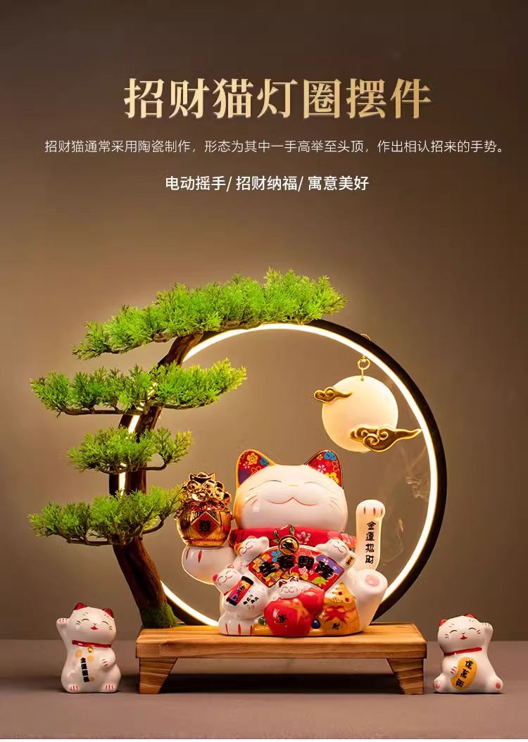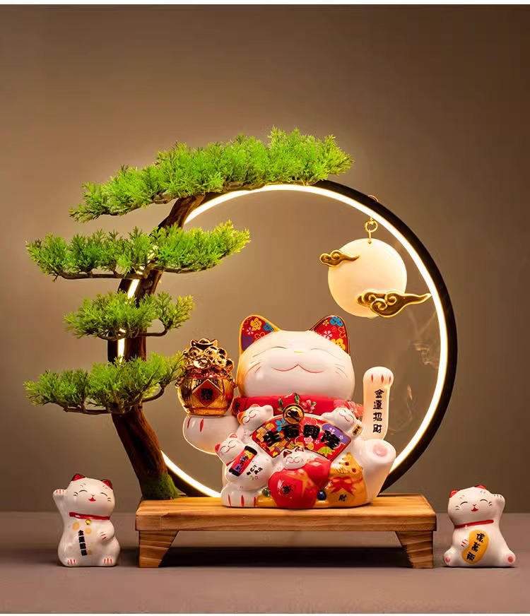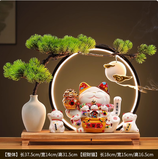 • (리진두진(풍요의 뿔) 행운의 고양이 + 램프 원형 + 손 흔들기 고양이 + 완전한 세트)