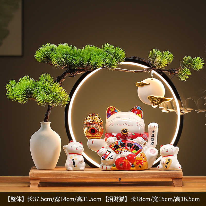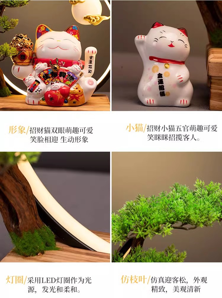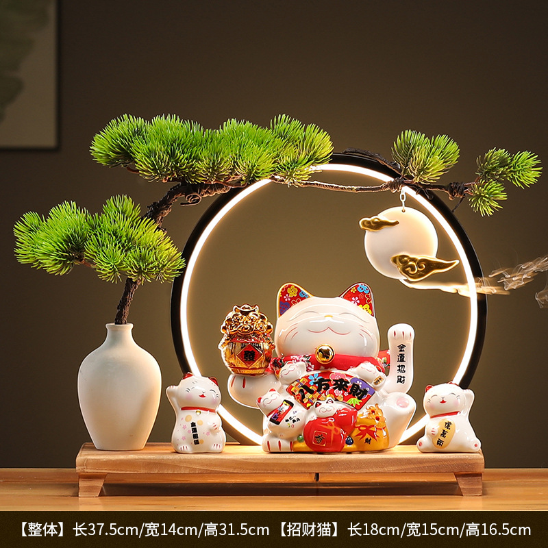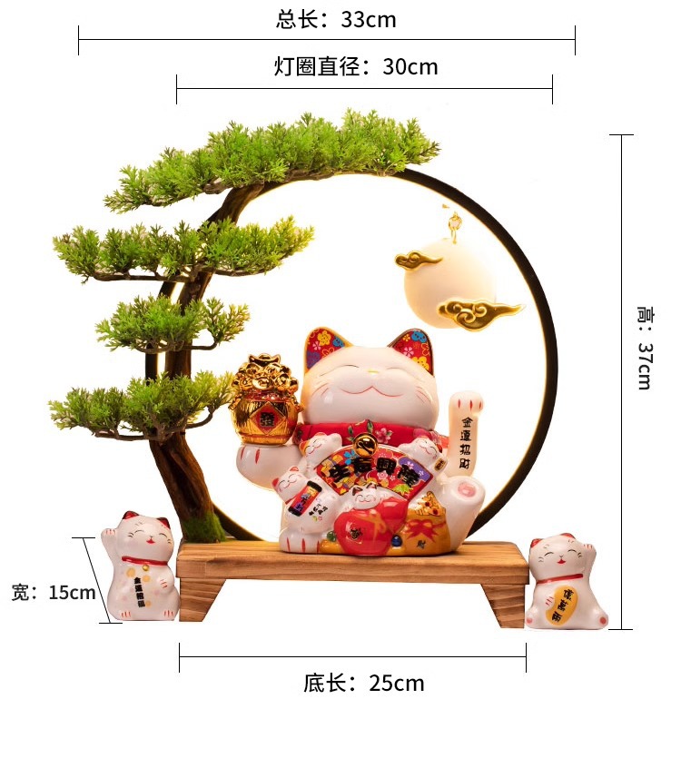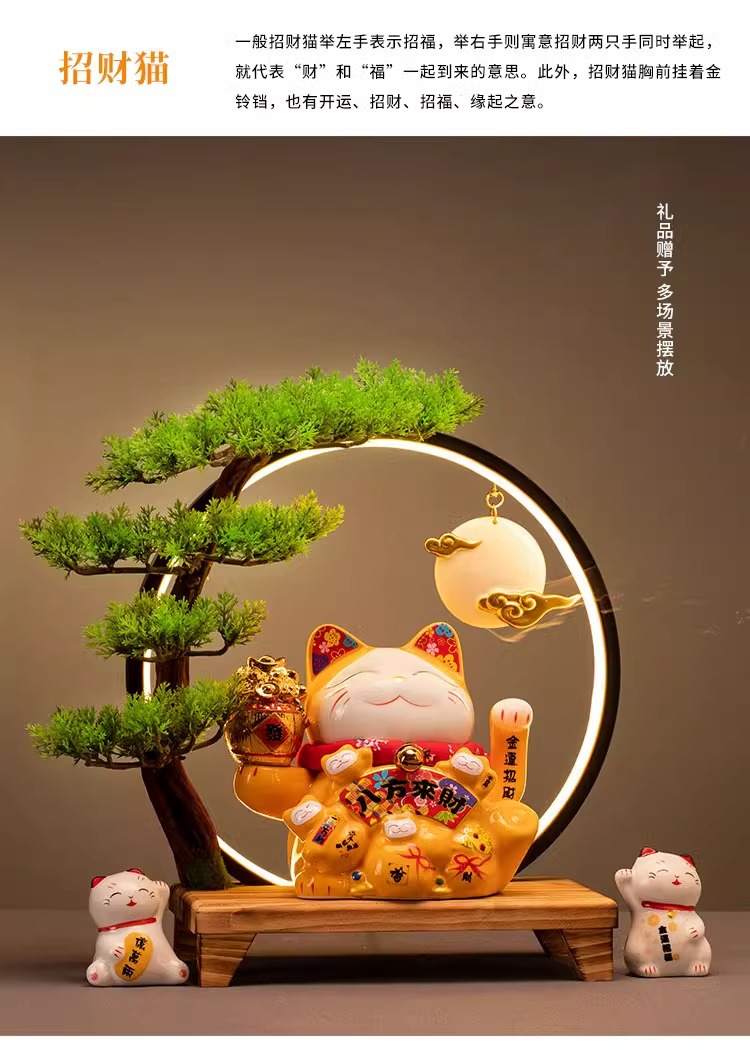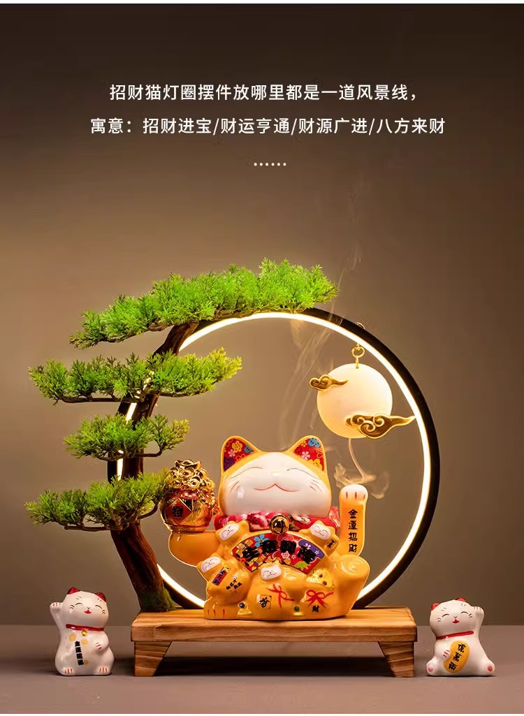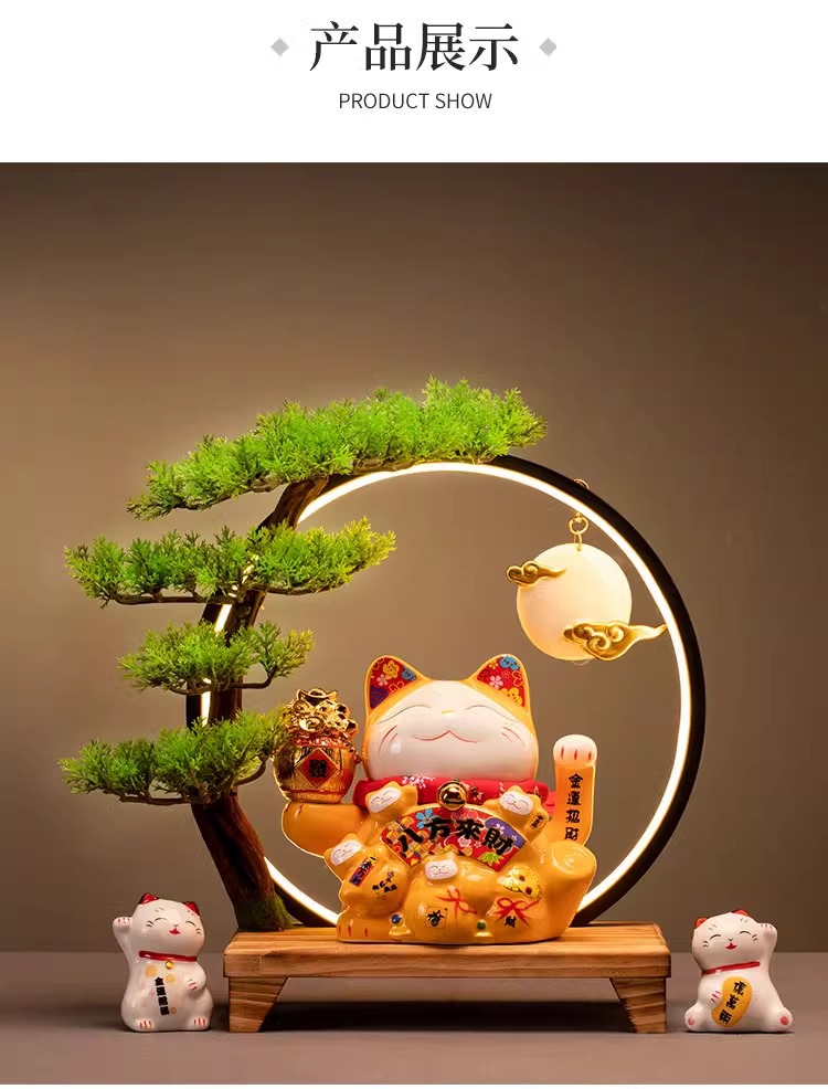 • (리진두진(풍요의 뿔) 행운의 고양이 + 램프 원형 + 손 흔들기 고양이 + 완전한 세트)