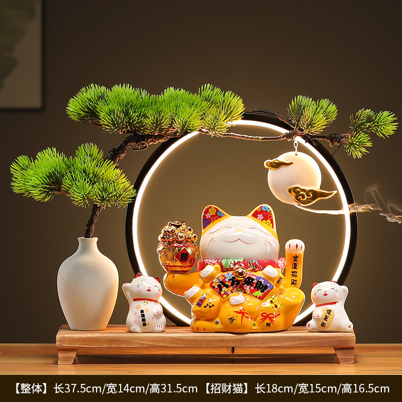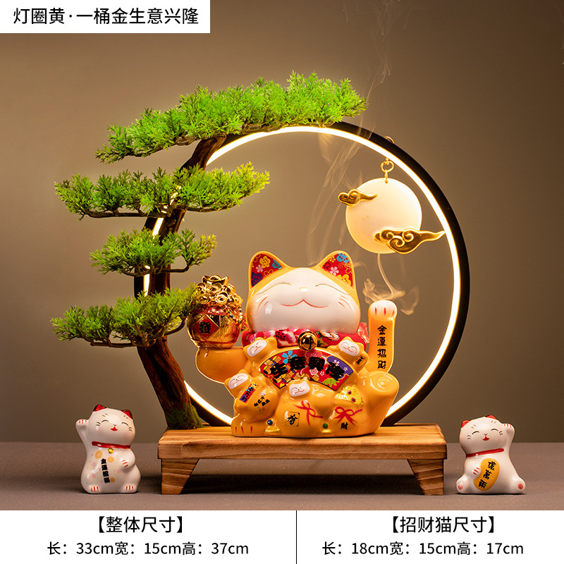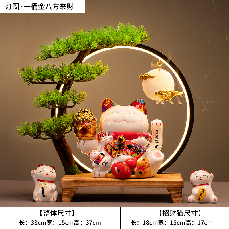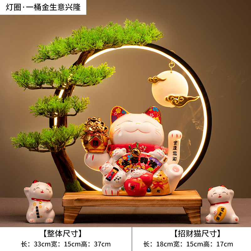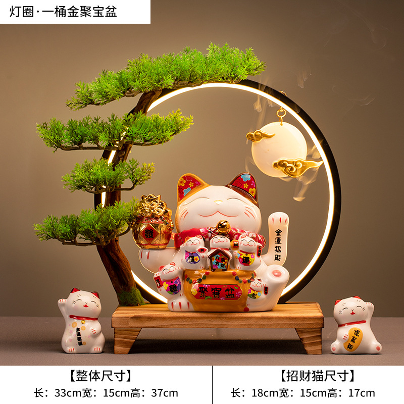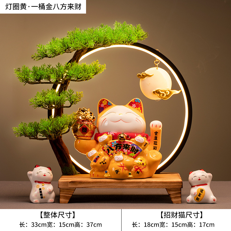 • (황금통(장사가 호황) 행운의 고양이 + 손 흔들기 + 램프 원형 세트)