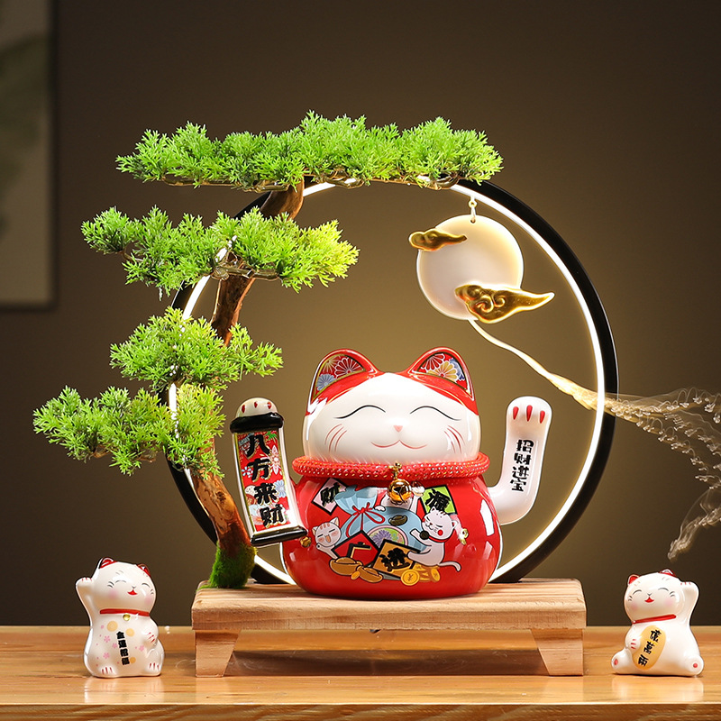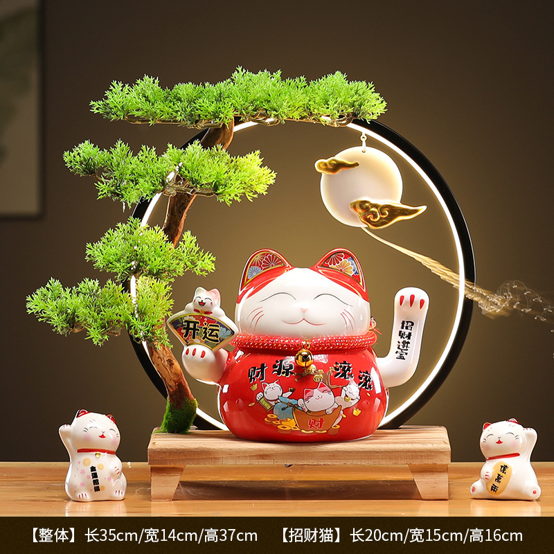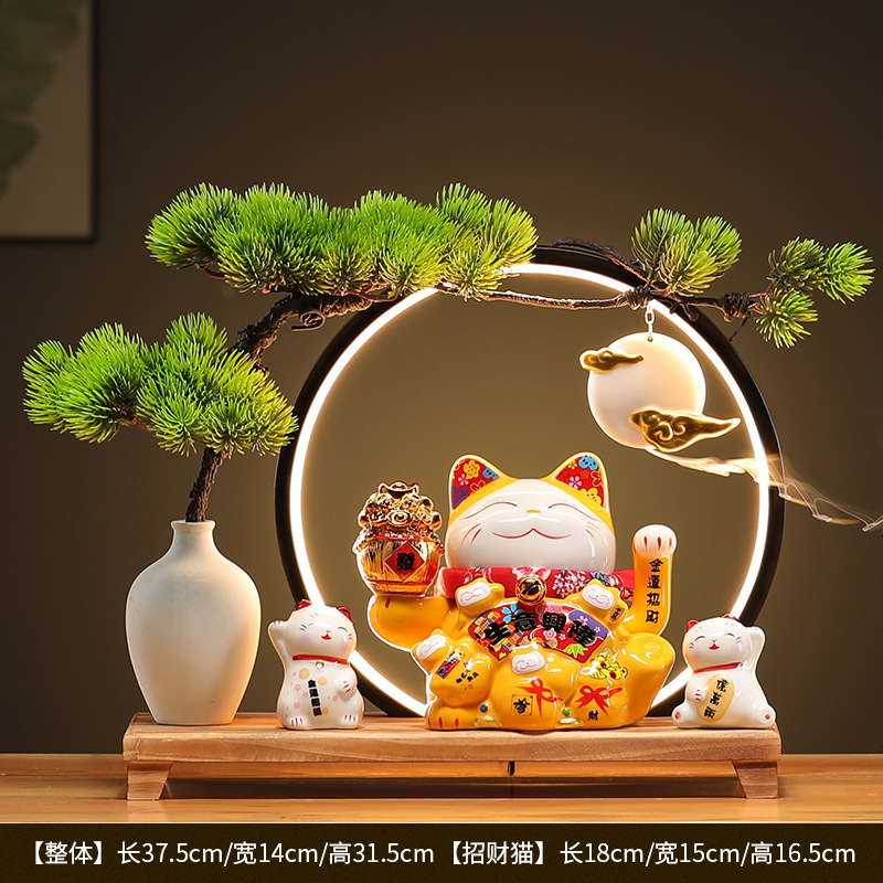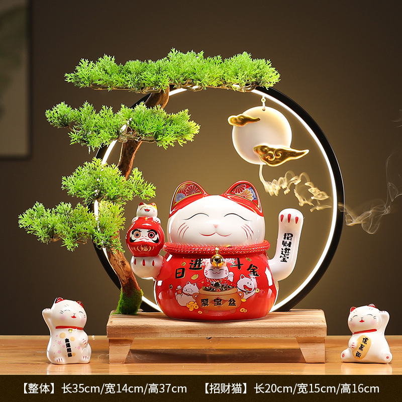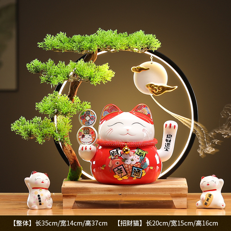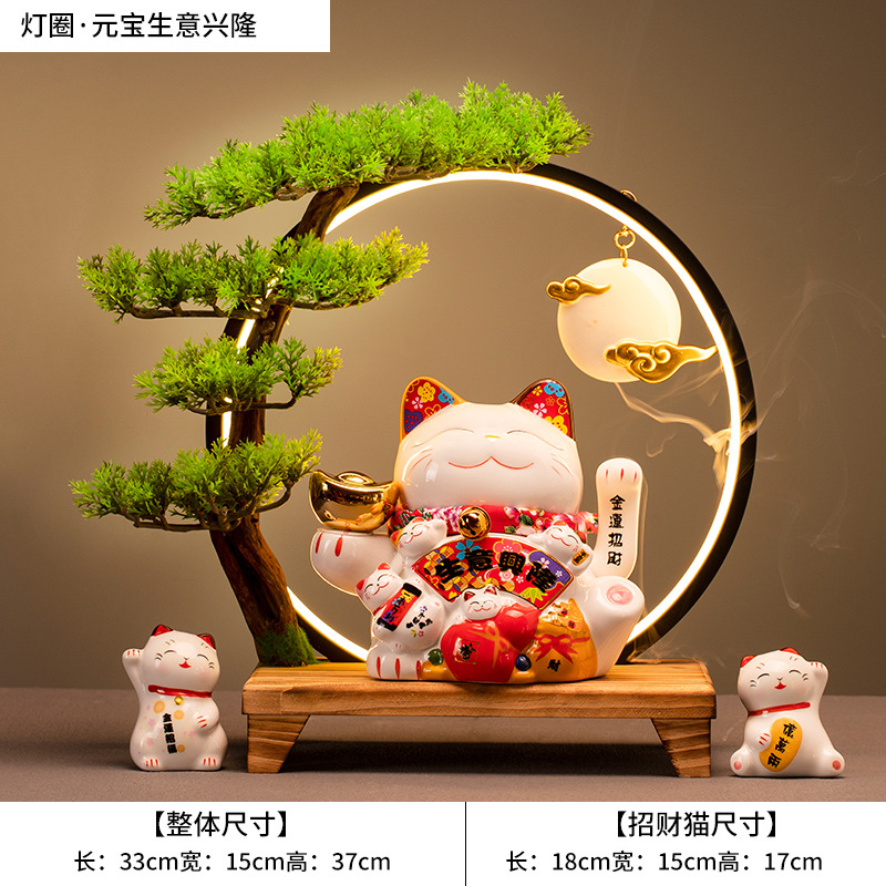 • (황금통(장사가 호황) 행운의 고양이 + 손 흔들기 + 램프 원형 세트)
