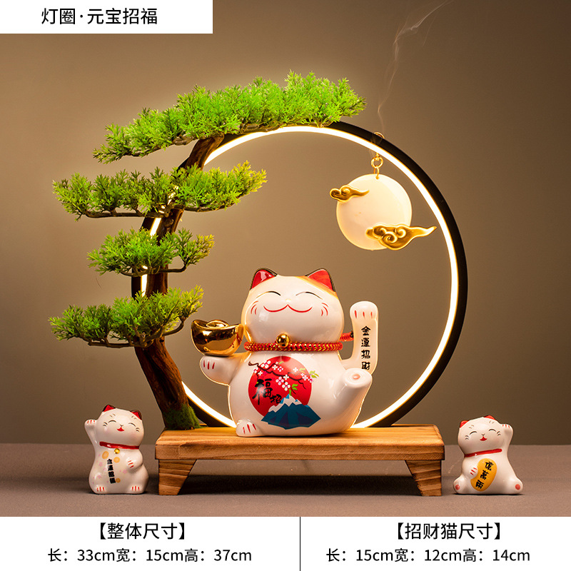 • (원보(행운을 부르는) 행운의 고양이 + 손 흔들기 + 램프 원형 세트)