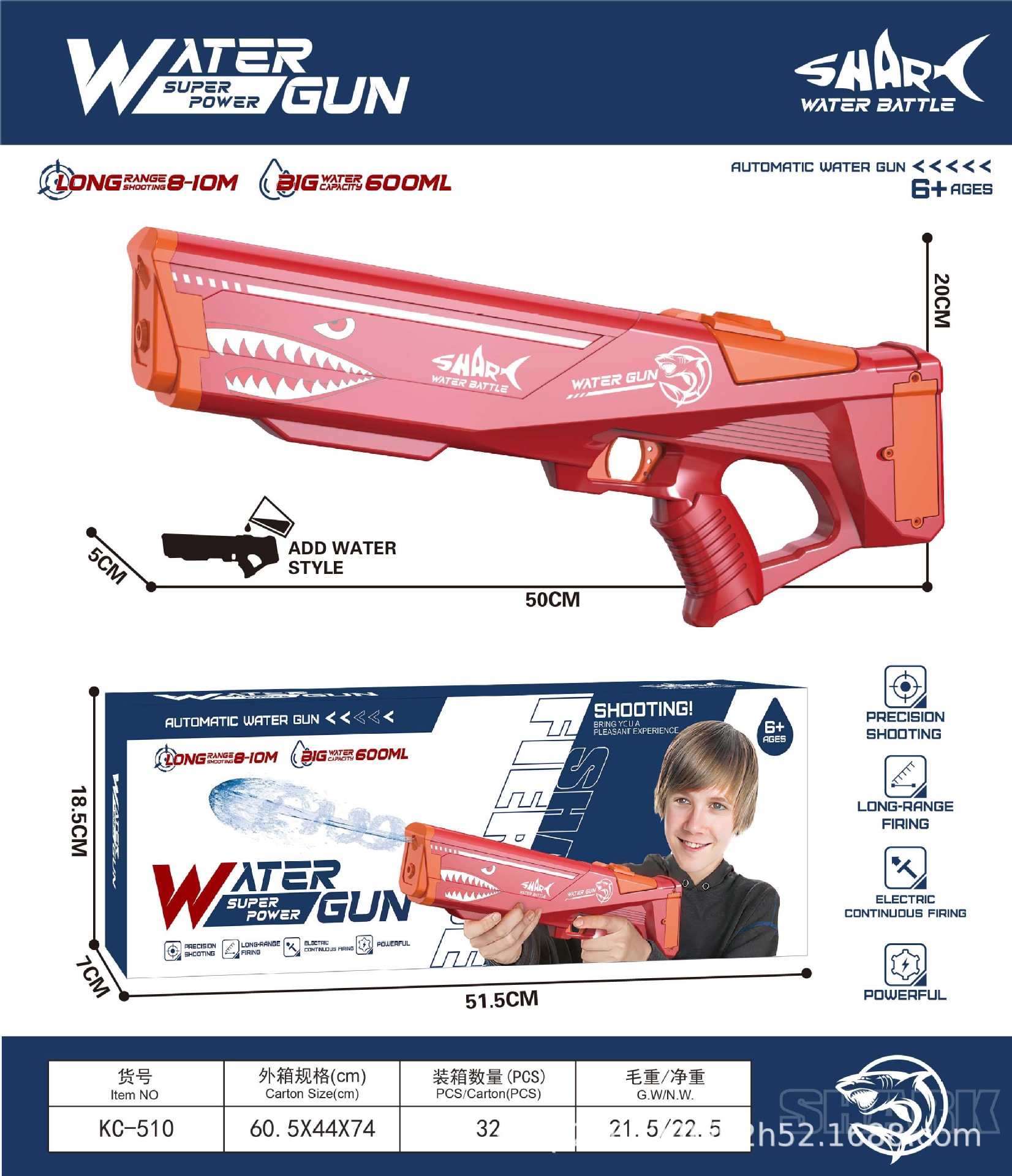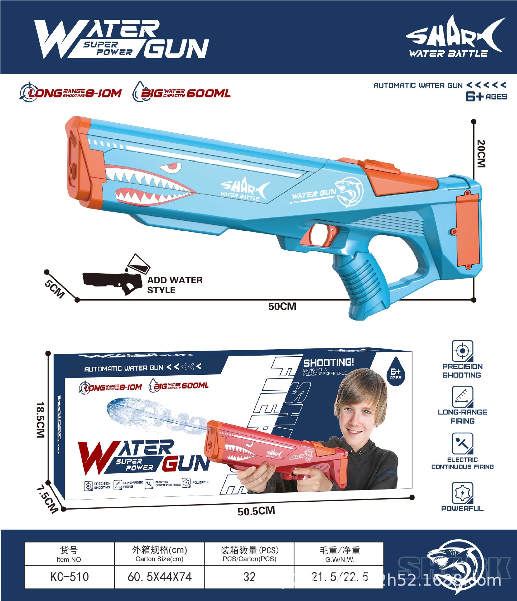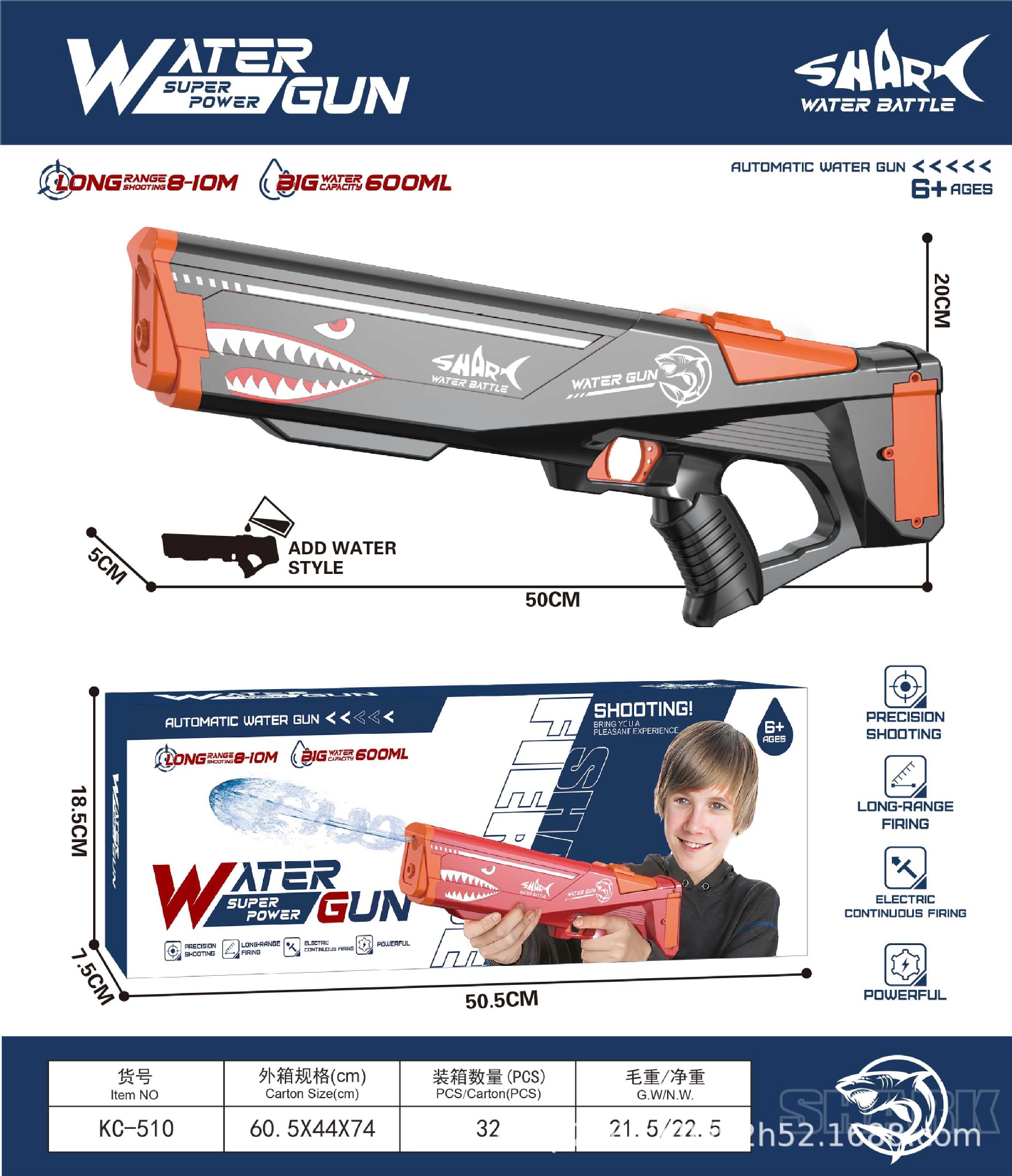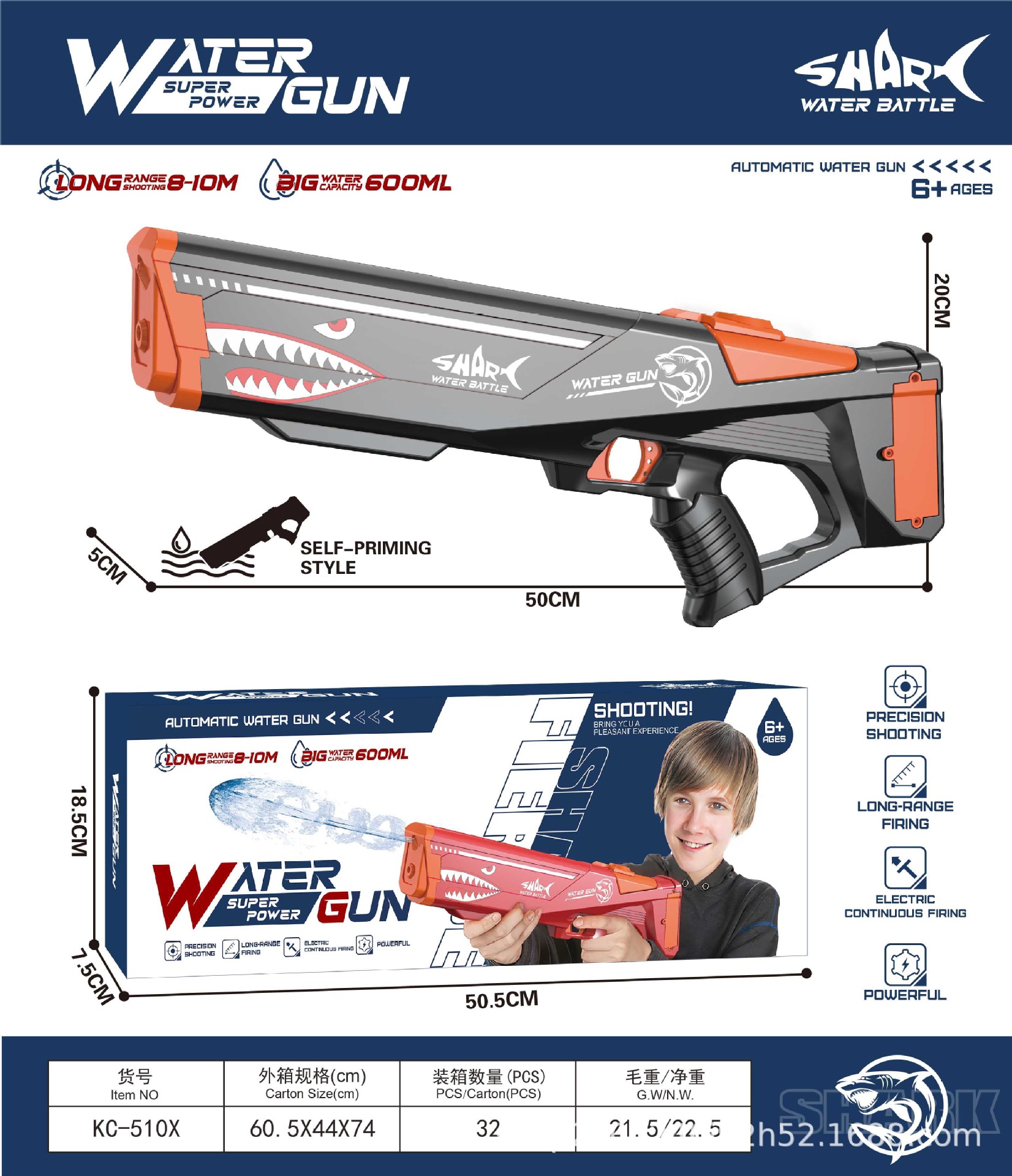 국경 간 엄선 자동 흡수 전기 연속 풀아웃 물총 어린이 야외 물놀이 장난감 물총 도매스토어 가기