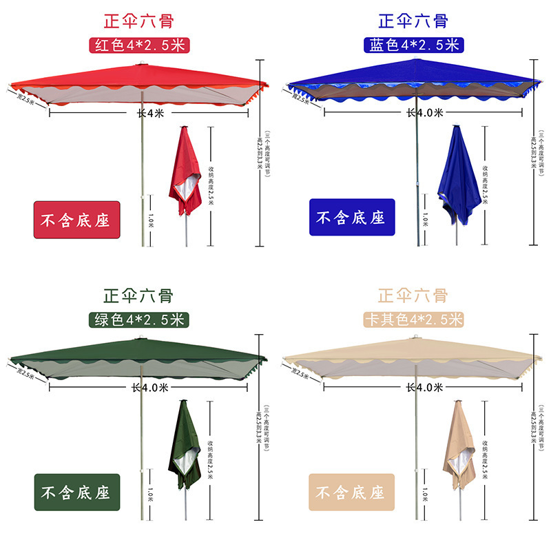 • 우산 두꺼워짐 4m × 3.1m 갈비 색상 비고 빨간색 파란색 진한 녹색 카키색