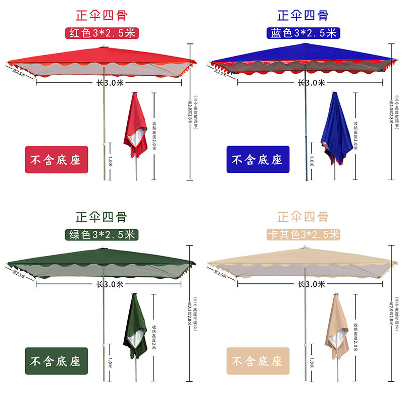 • 우산 두꺼워짐 3m × 2.6m 갈비 색상 비고 빨간색 파란색 진한 녹색 카키색