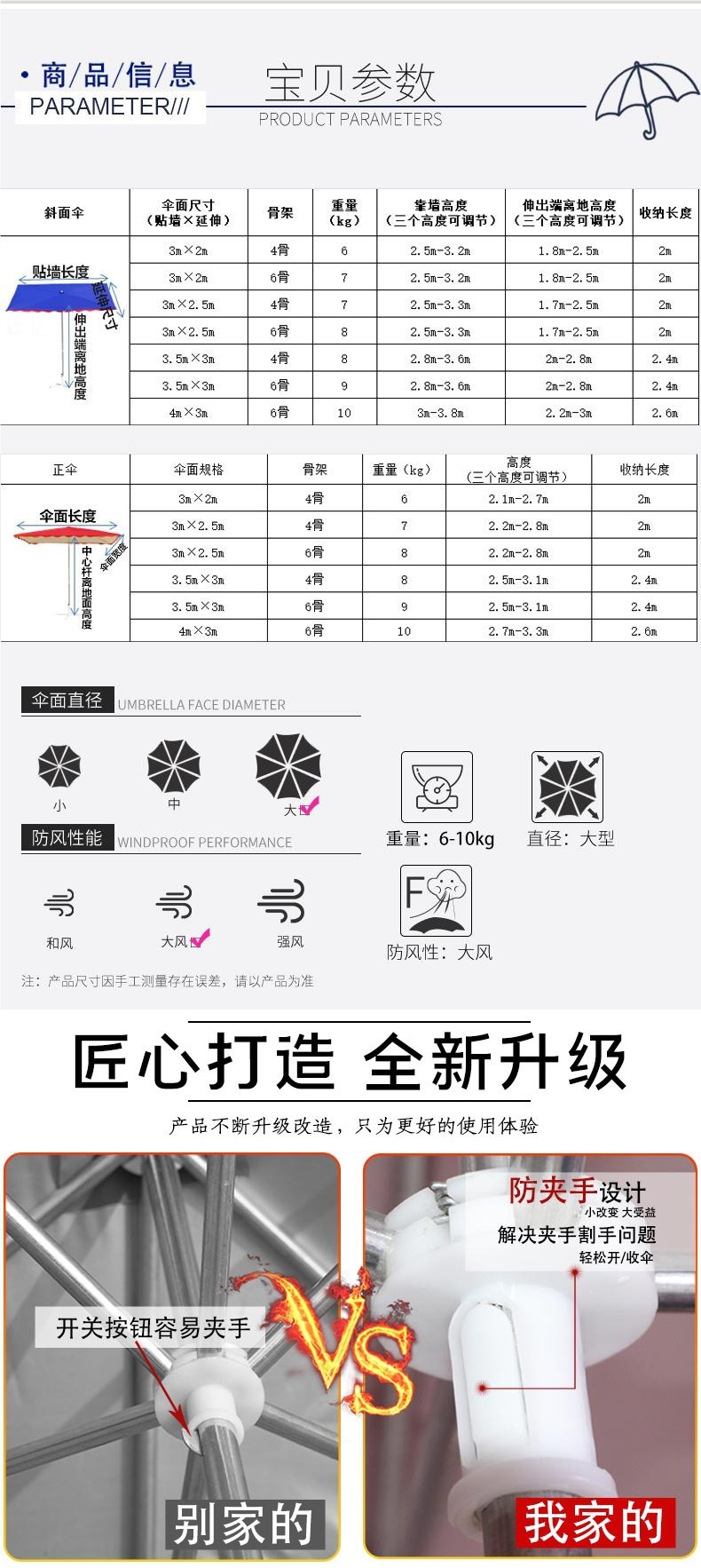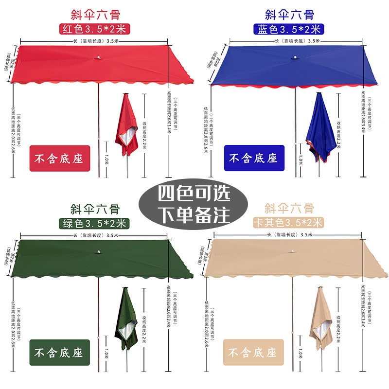 • 우산 두꺼워짐 3.5m × 3.6m 갈비뼈 색상 비고 빨간색 파란색 짙은 녹색 카키색