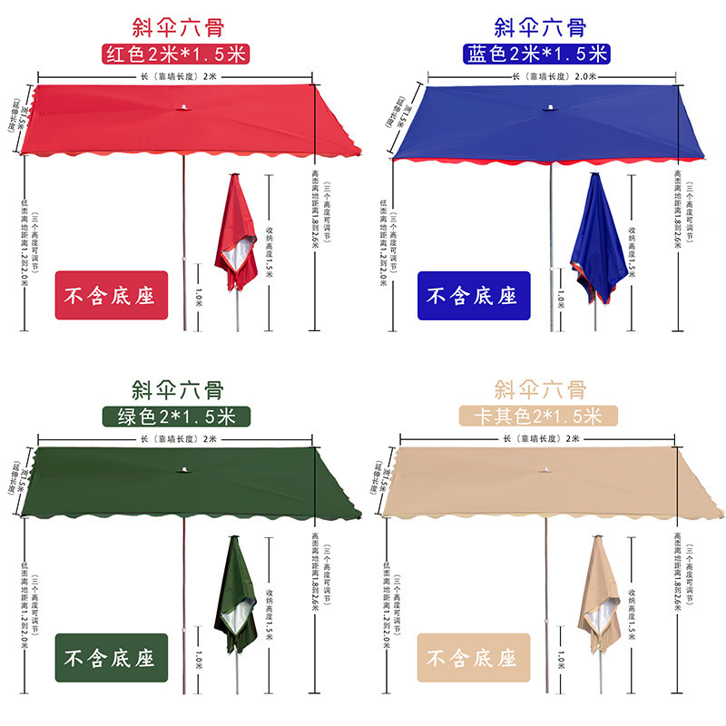 • 우산 두꺼워짐 2m × 1.9m 갈비 색상 비고 빨간색 파란색 진한 녹색 카키색