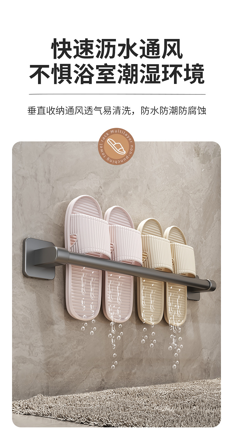 욕실 펀치 프리 슬리퍼 랙, 욕실 슬리퍼 배수 랙, 화장실 슬리퍼 랙, 수건 걸이 보관 랙