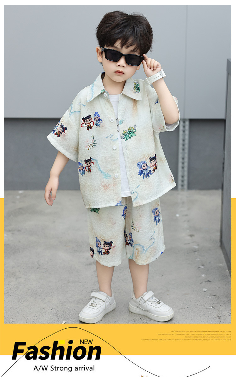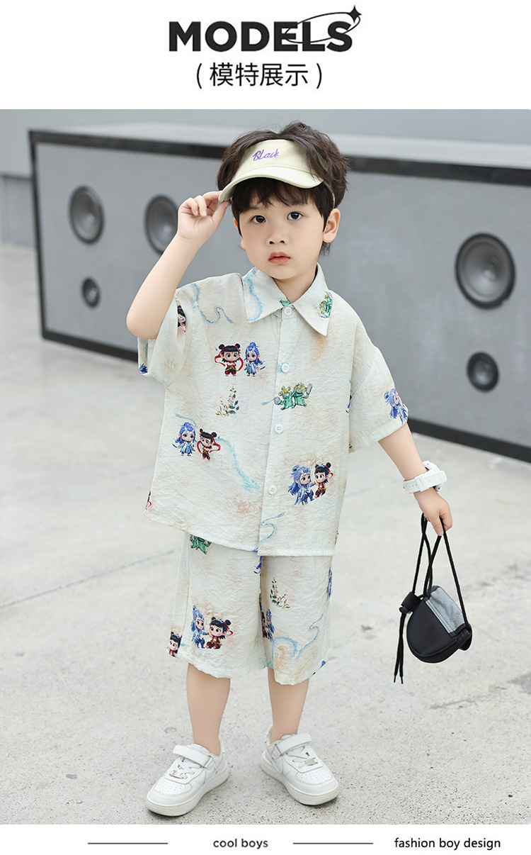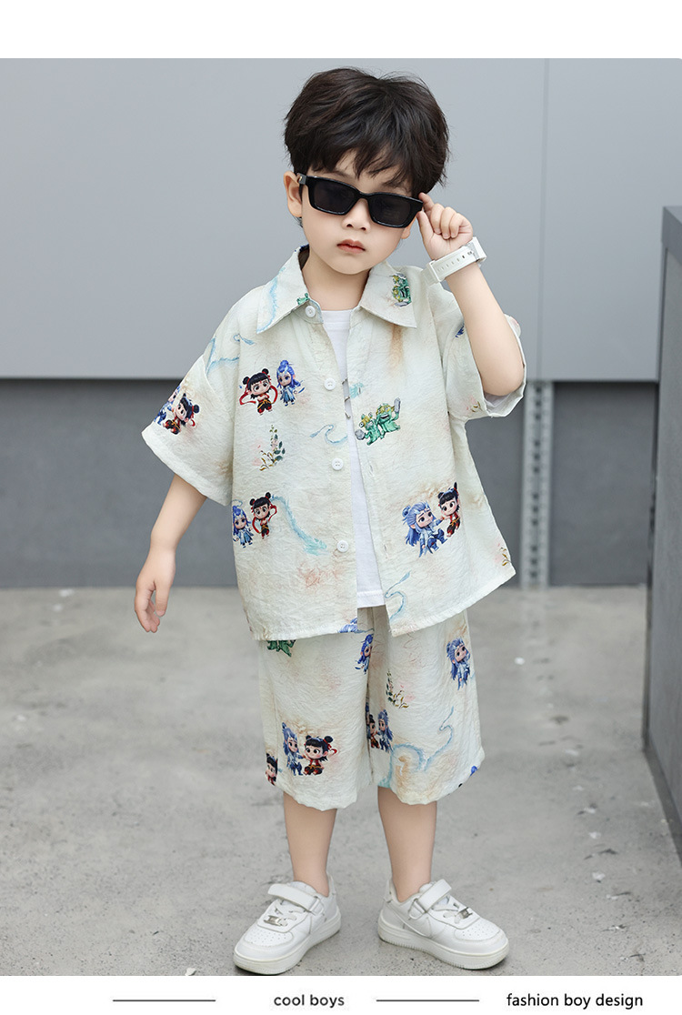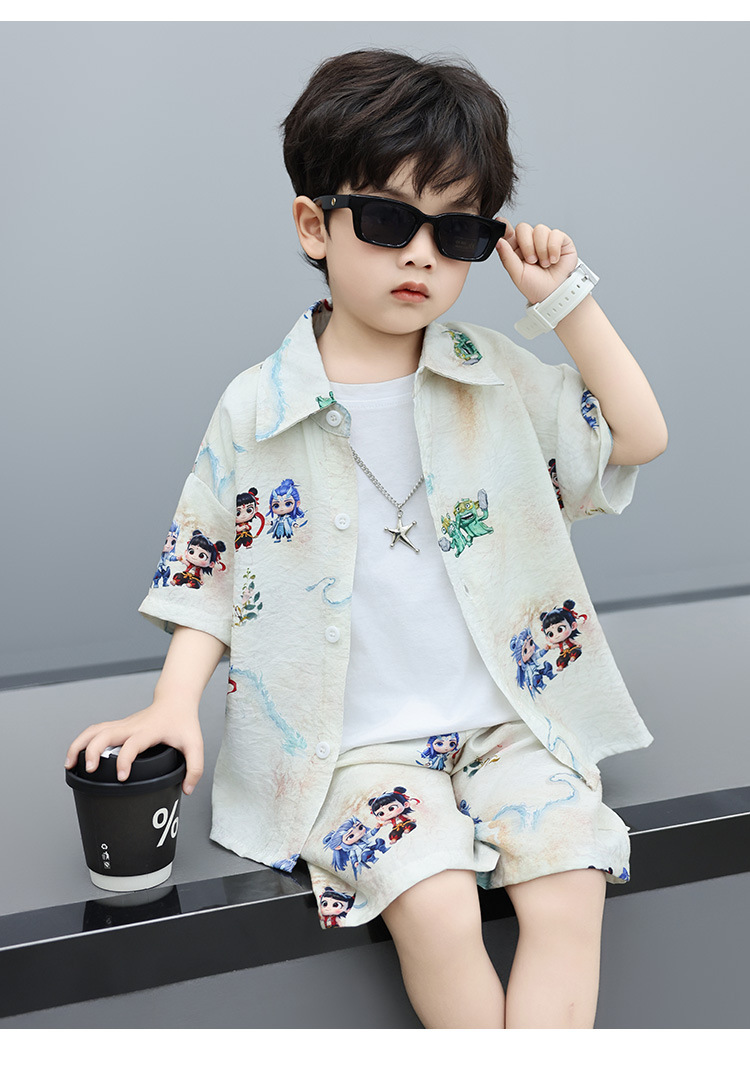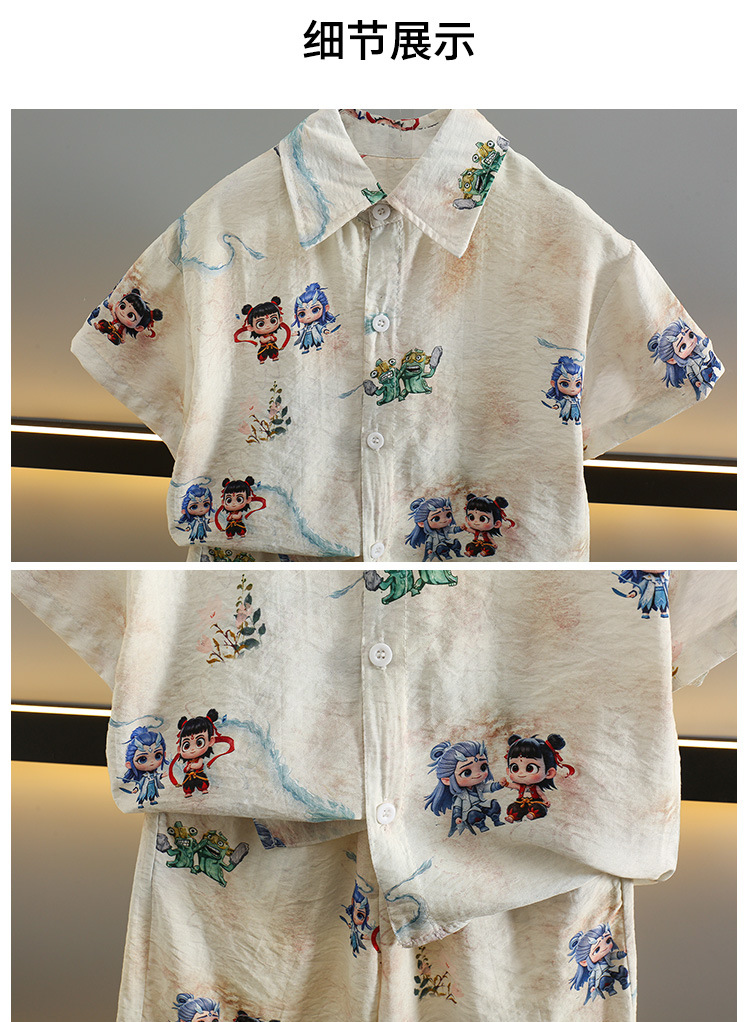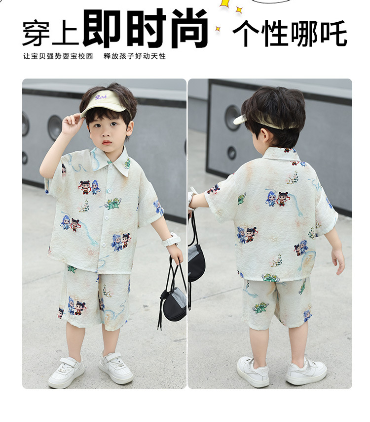 소년 여름 반팔 양복 2025 새로운 유행 어린이 Nezha 셔츠 투피스 세트 어린 소년 여름 옷스토어 가기