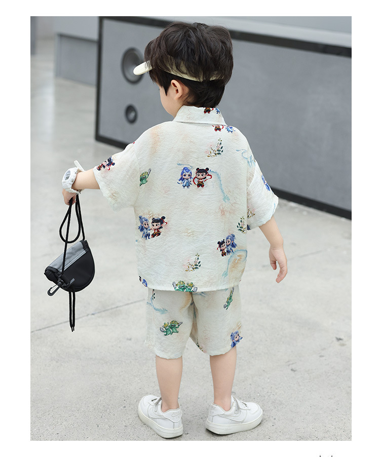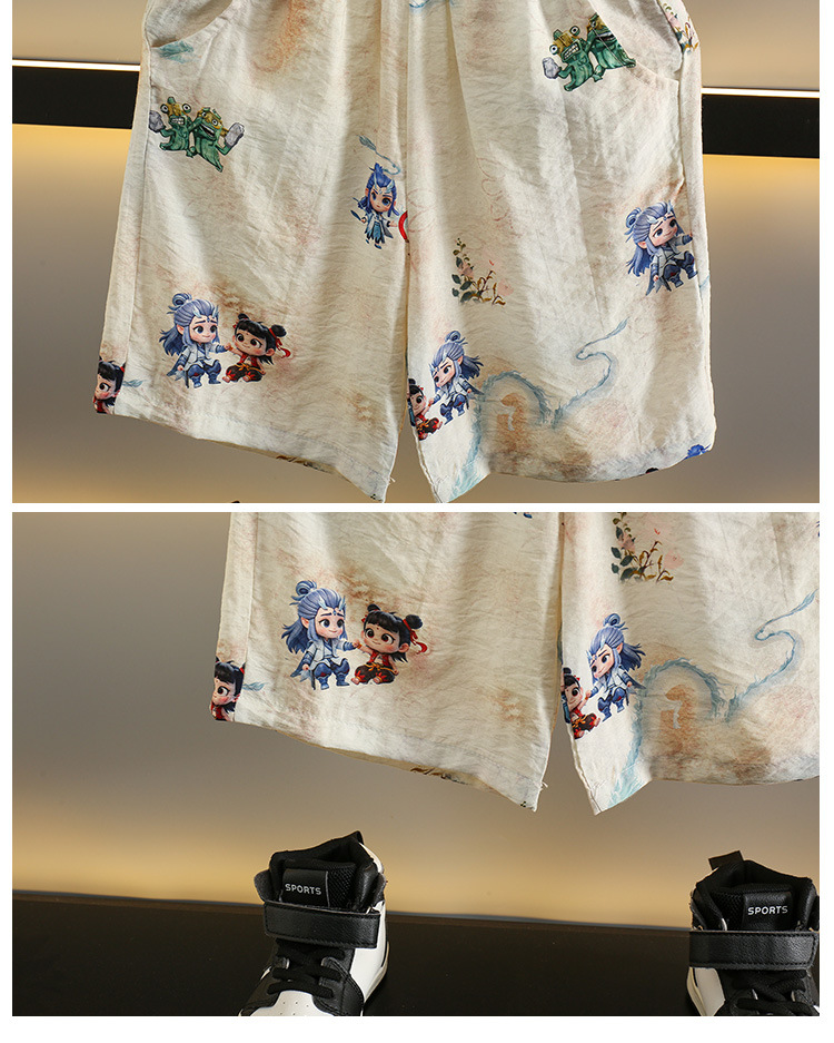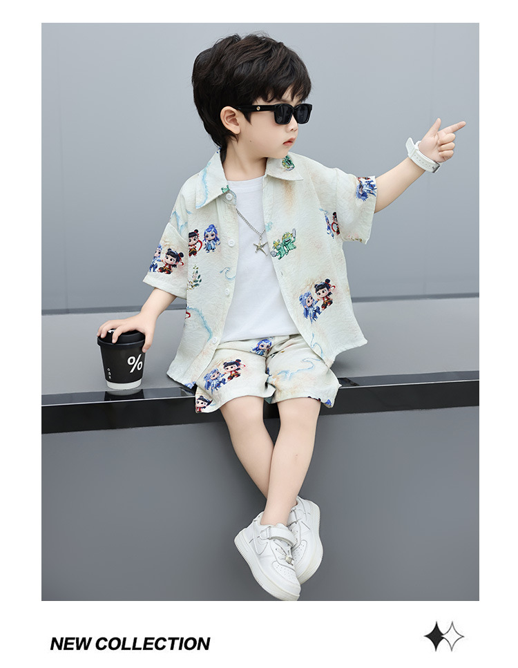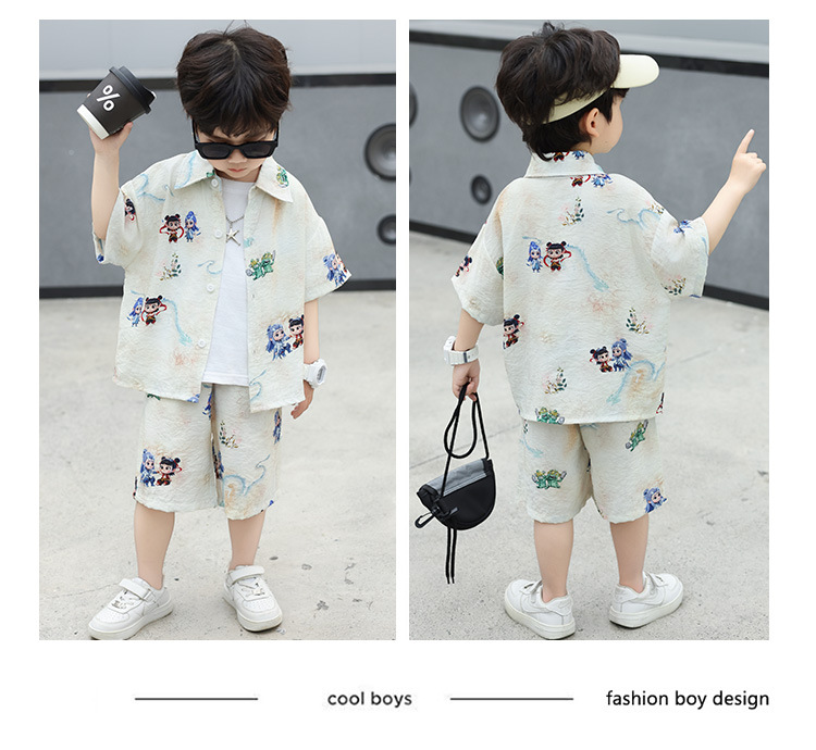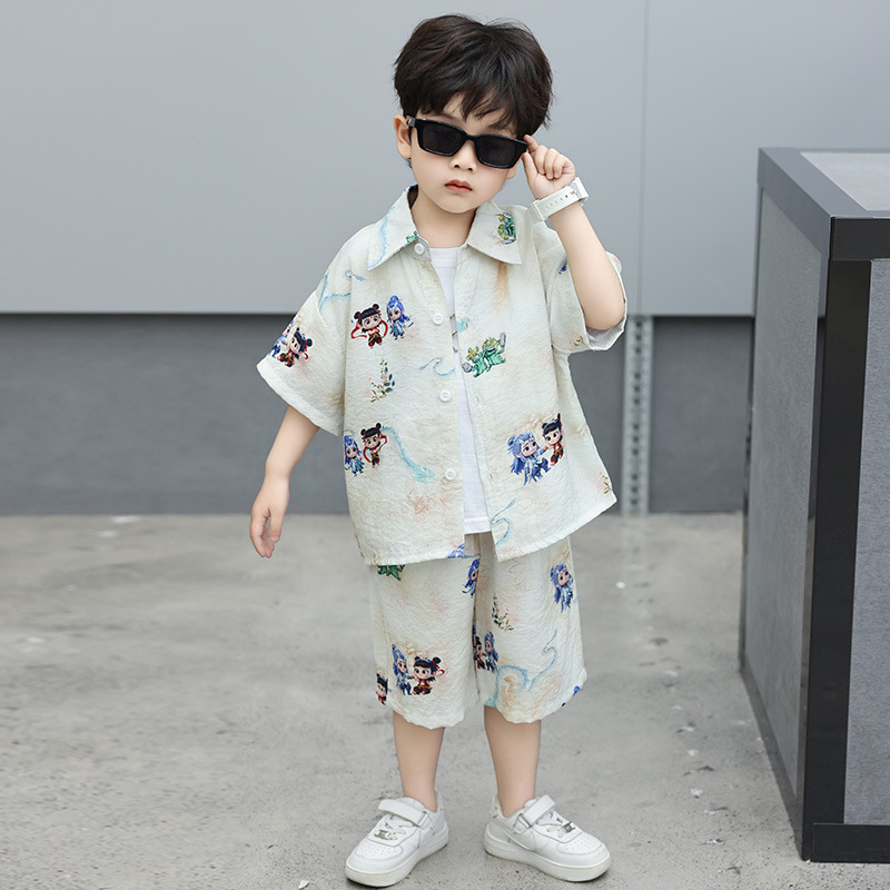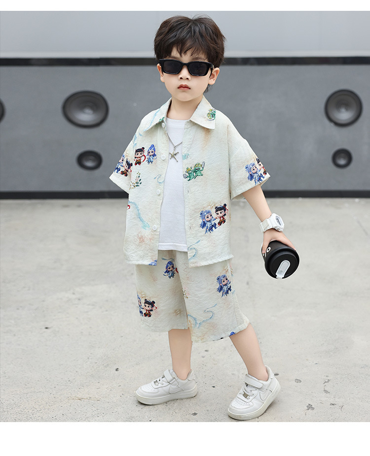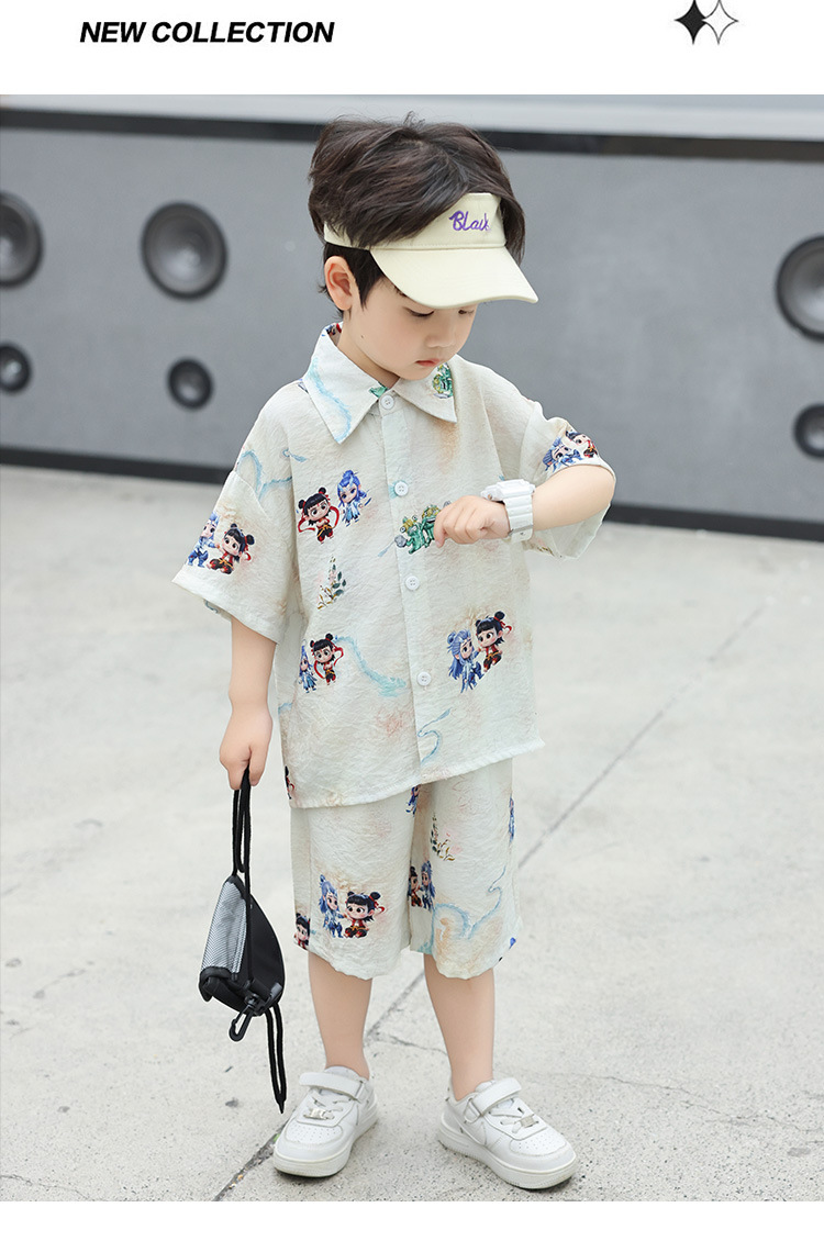 소년 여름 반팔 양복 2025 새로운 유행 어린이 Nezha 셔츠 투피스 세트 어린 소년 여름 옷스토어 가기