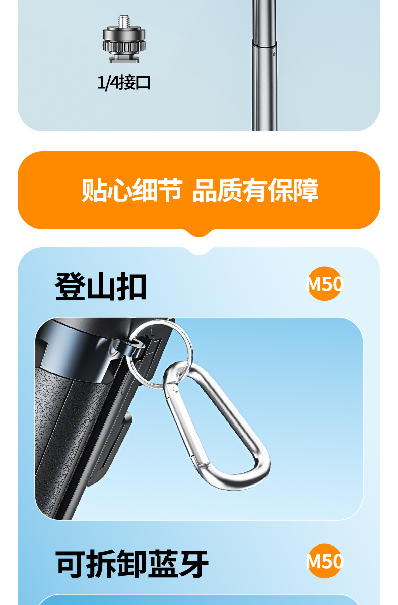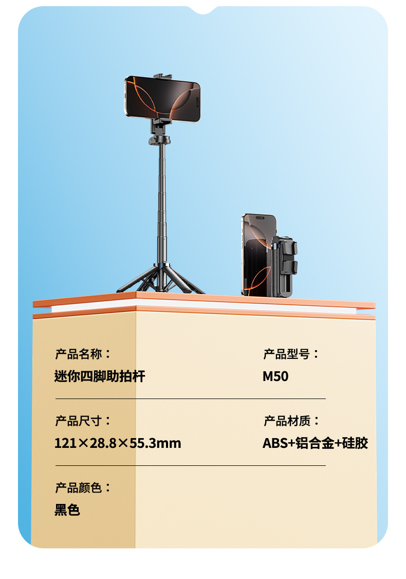 M50 휴대용 미니 다기능 셀카봉 텔레스코픽 4각대 여행용 미니 사진 유물 MINI 셀카봉