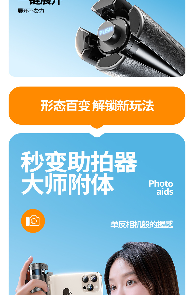 M50 휴대용 미니 다기능 셀카봉 텔레스코픽 4각대 여행용 미니 사진 유물 MINI 셀카봉스토어 가기