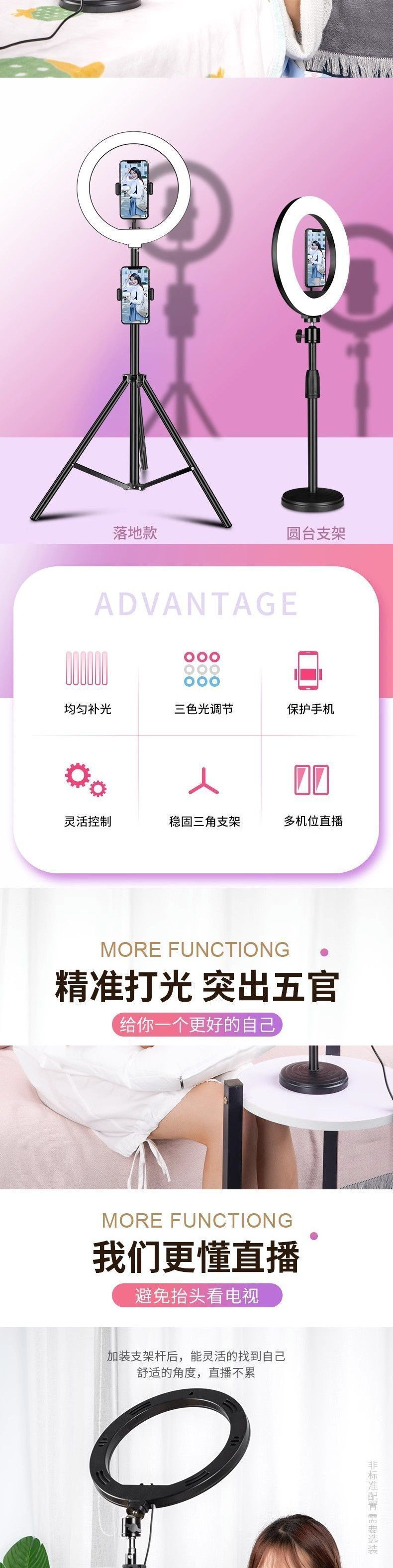 라이브 방송 전용 테이블, 뷰티 라이브 방송 보조 조명, 휴대폰 홀더, 삼각대, 사진 촬영, 실내 휴대폰 사진 촬영