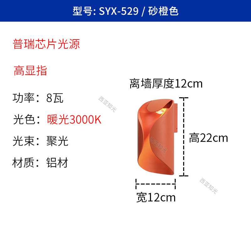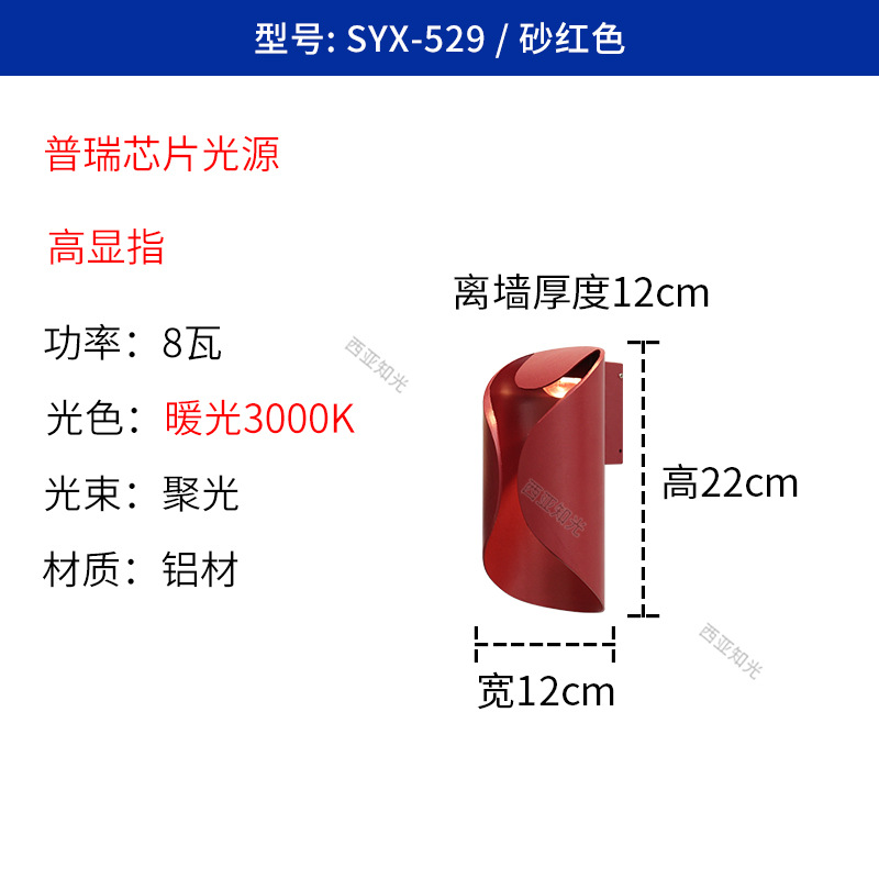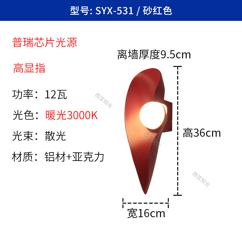 • 샌드 레드/모자 벽 램프/12와트/방수 및 방습