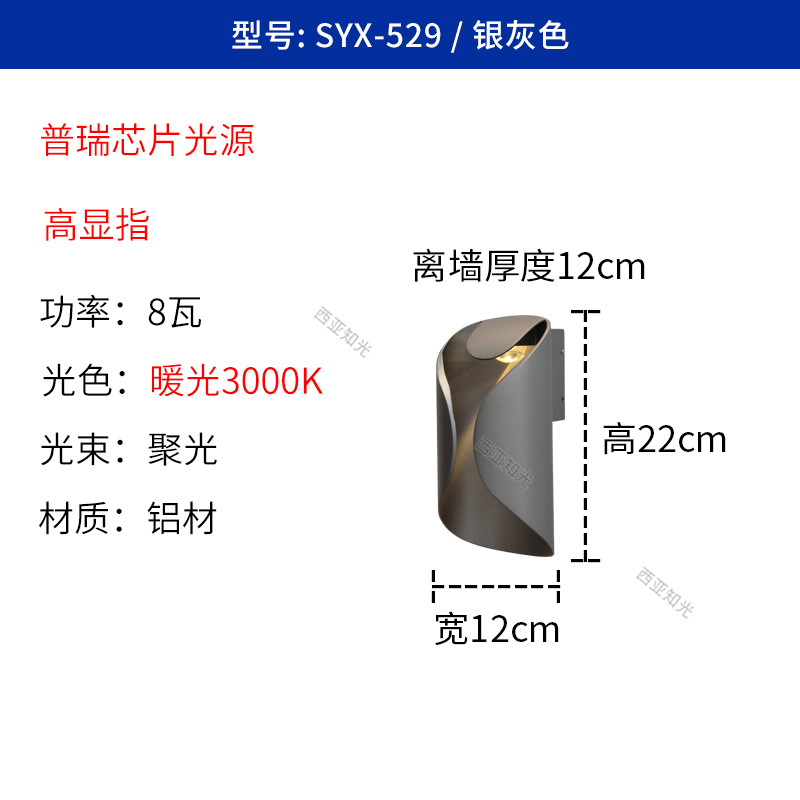• 실버 그레이/이중 벽 램프/8와트/방수 및 방습