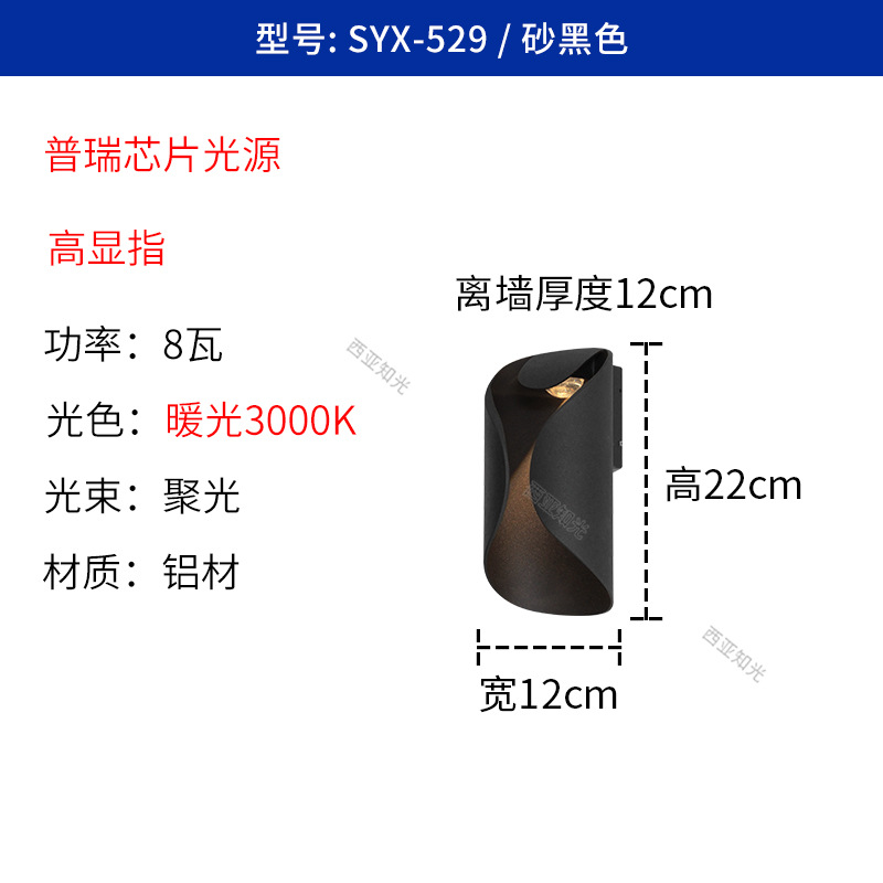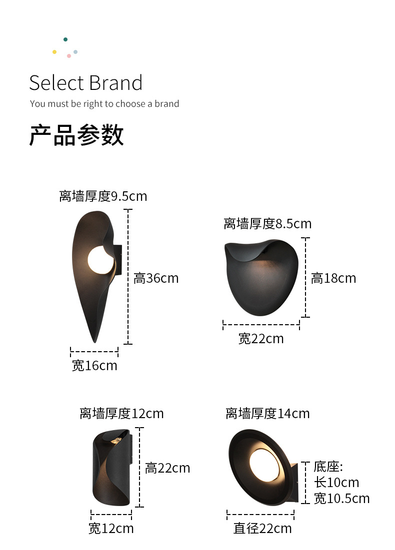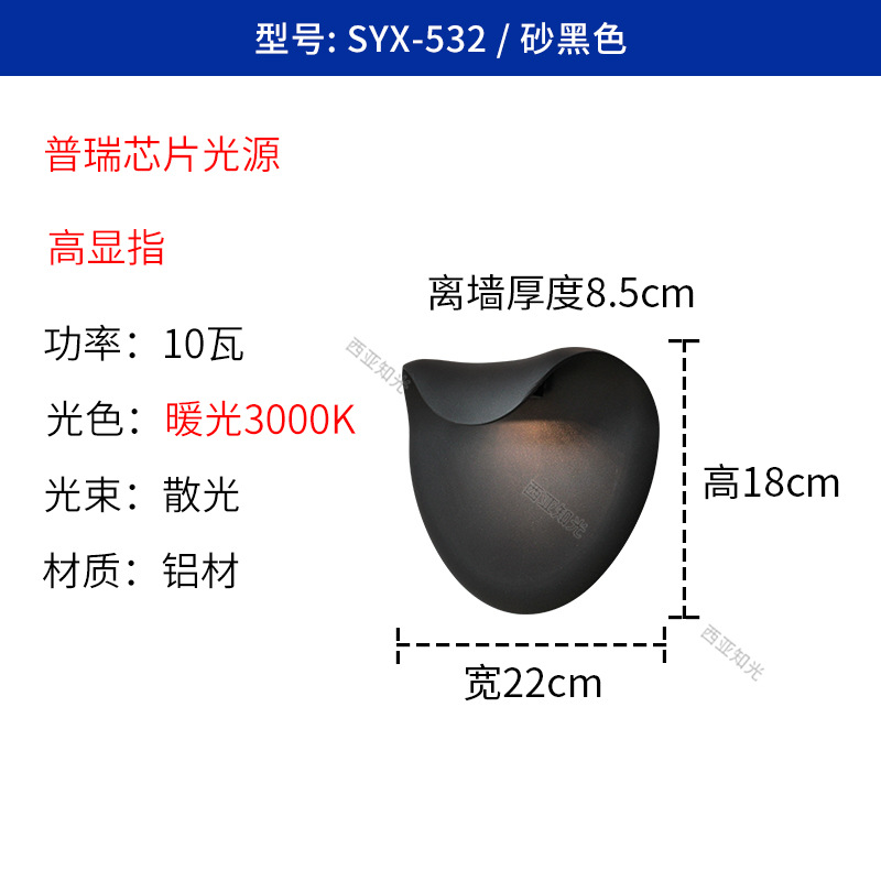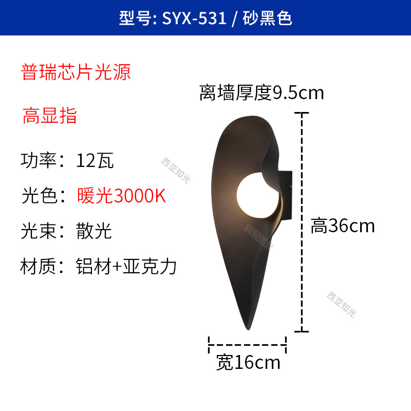 • 샌드 블랙/모자 벽 램프/12W/방수 및 방습