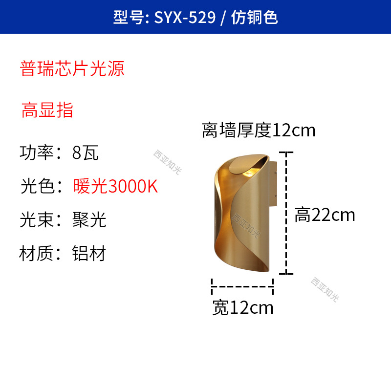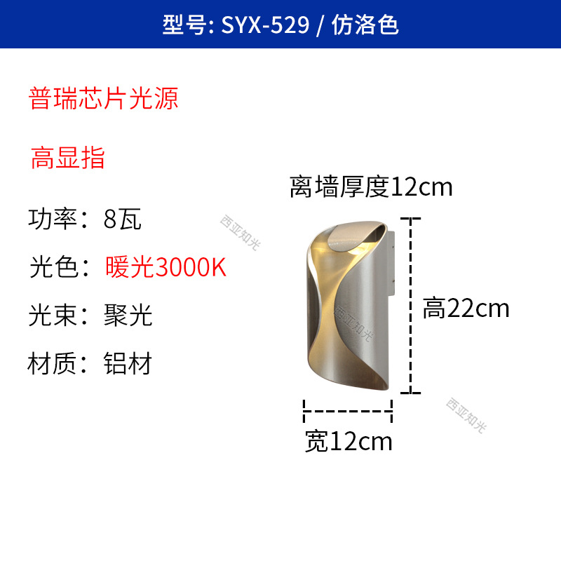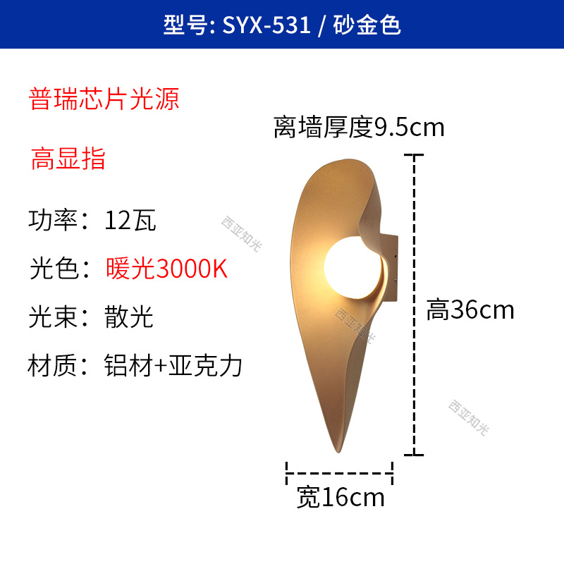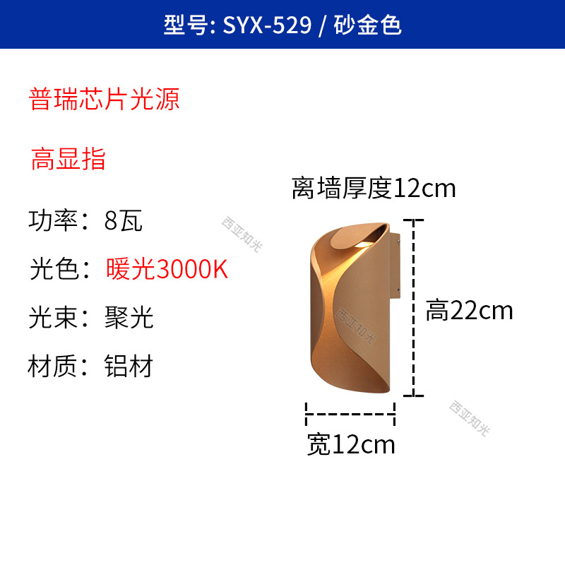 • 샌드 골드/모자 벽 램프/12와트/방수 및 방습