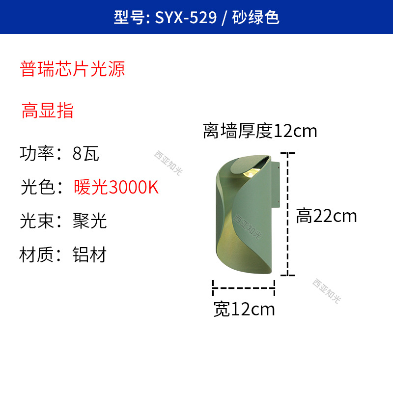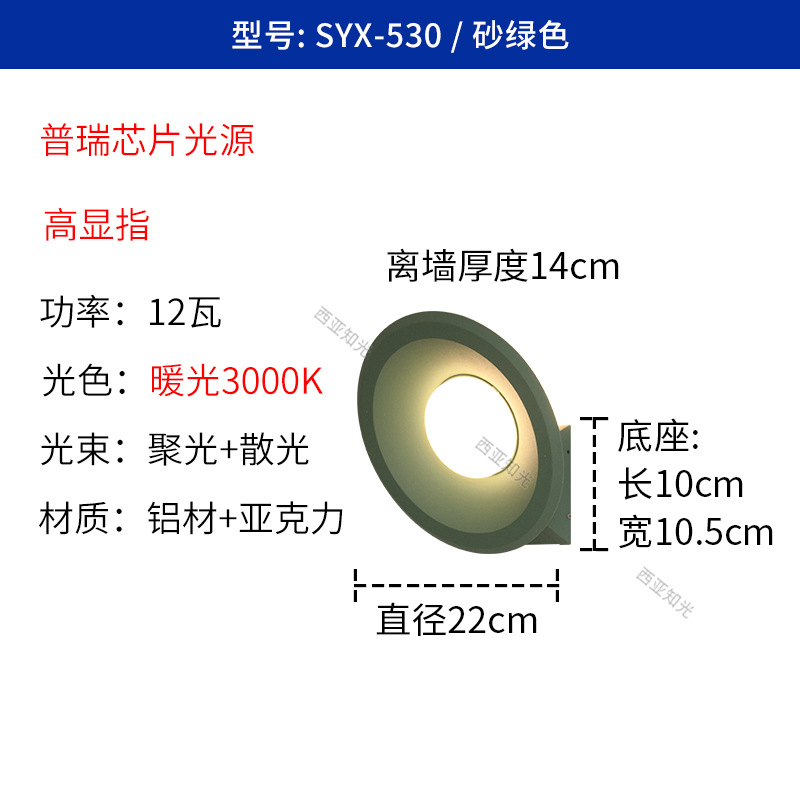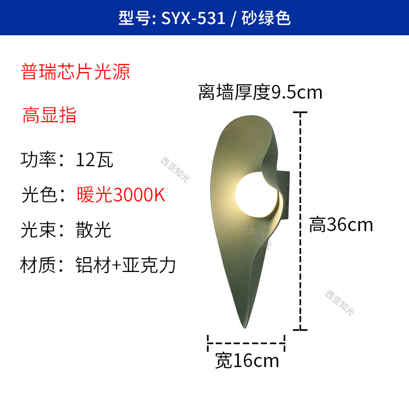 • 샌드 그린/모자 벽 램프/12와트/방수 및 방습