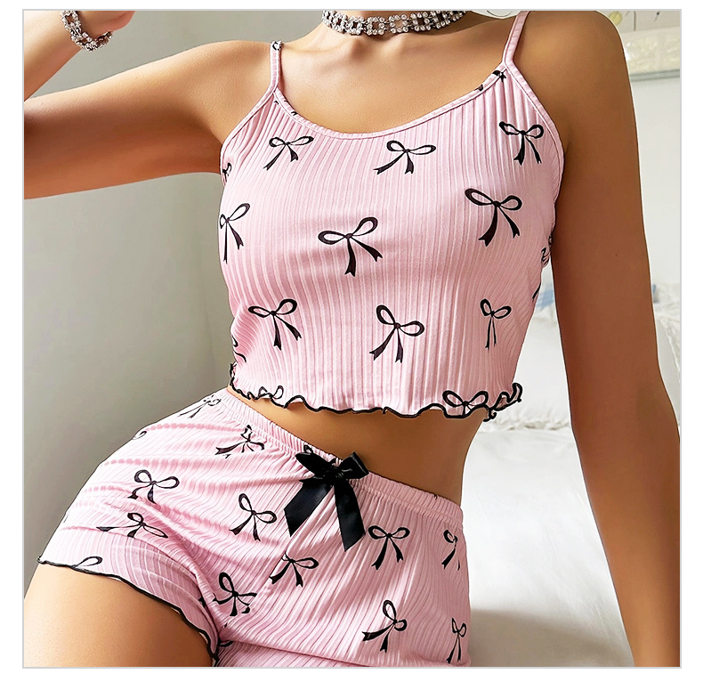 국경 간 temu 섹시한 잠옷 세트 나비 프린트 서스펜더 반바지 편안하고 캐주얼하며 여성용 홈웨어 외부에서 착용 가능