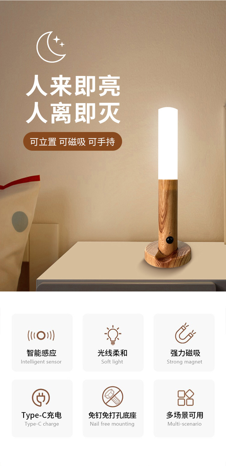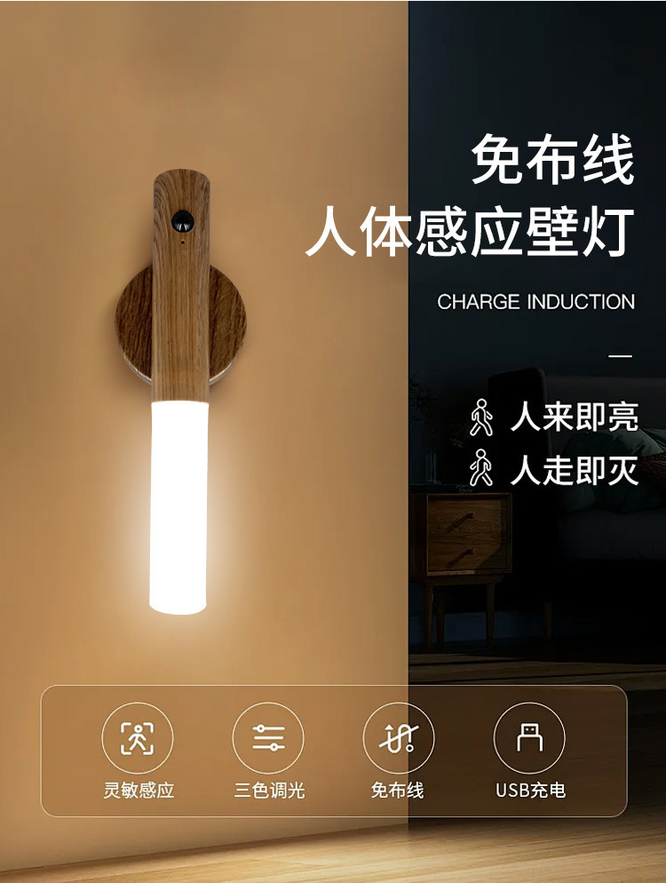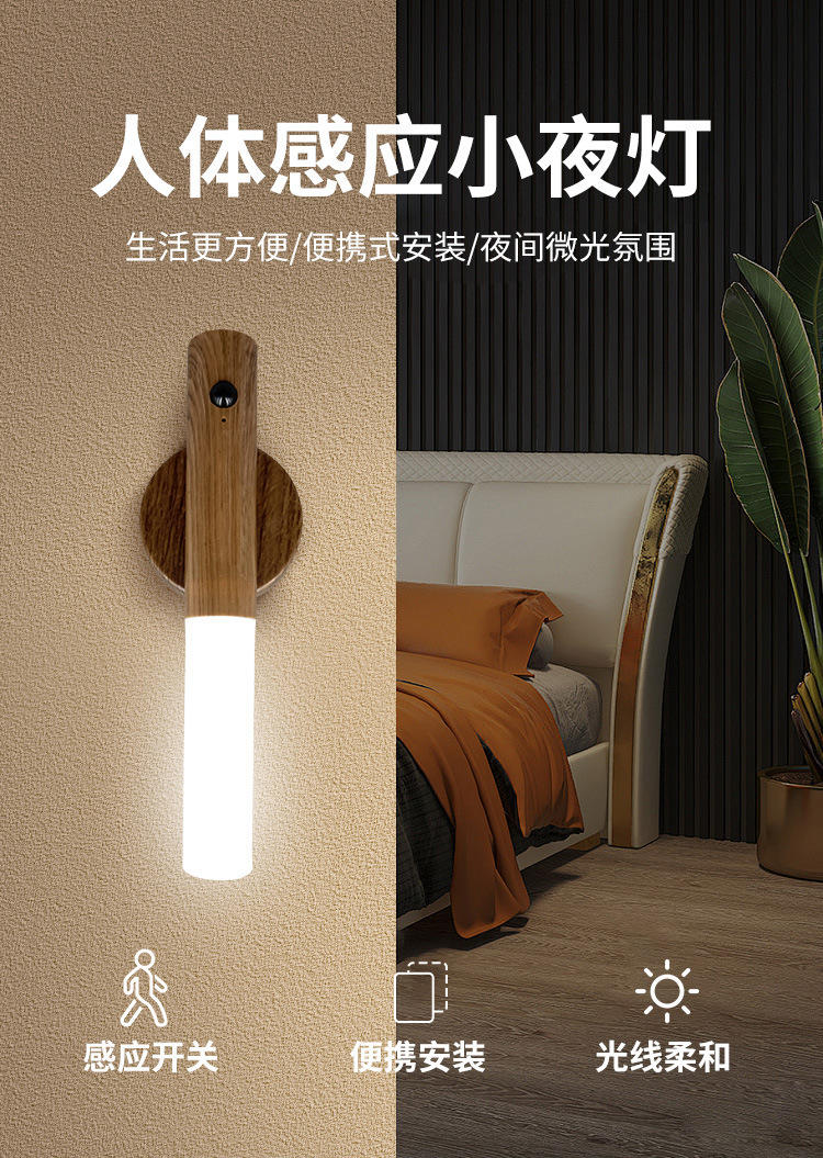신제품 인체감지 야간등 침실용 창의적인 벽등 침대 옆 계단 통로 현관용 소형 센서 야간등