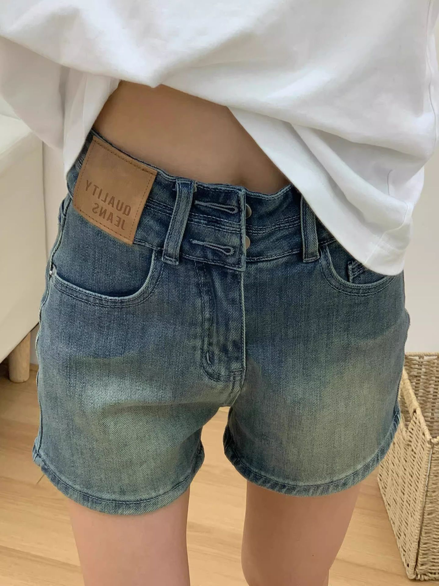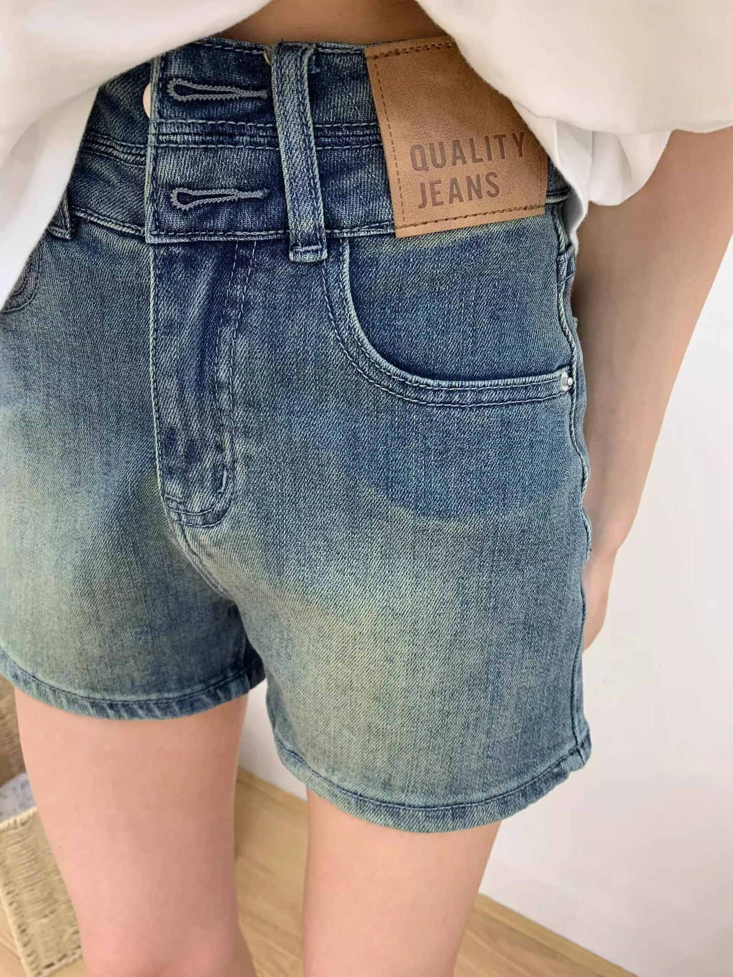 여성을위한 플러스 사이즈 레트로 다목적 데님 반바지 여름 2025 디자인 하이 웨이스트 슬리밍 스트레이트 핫 팬츠스토어 가기