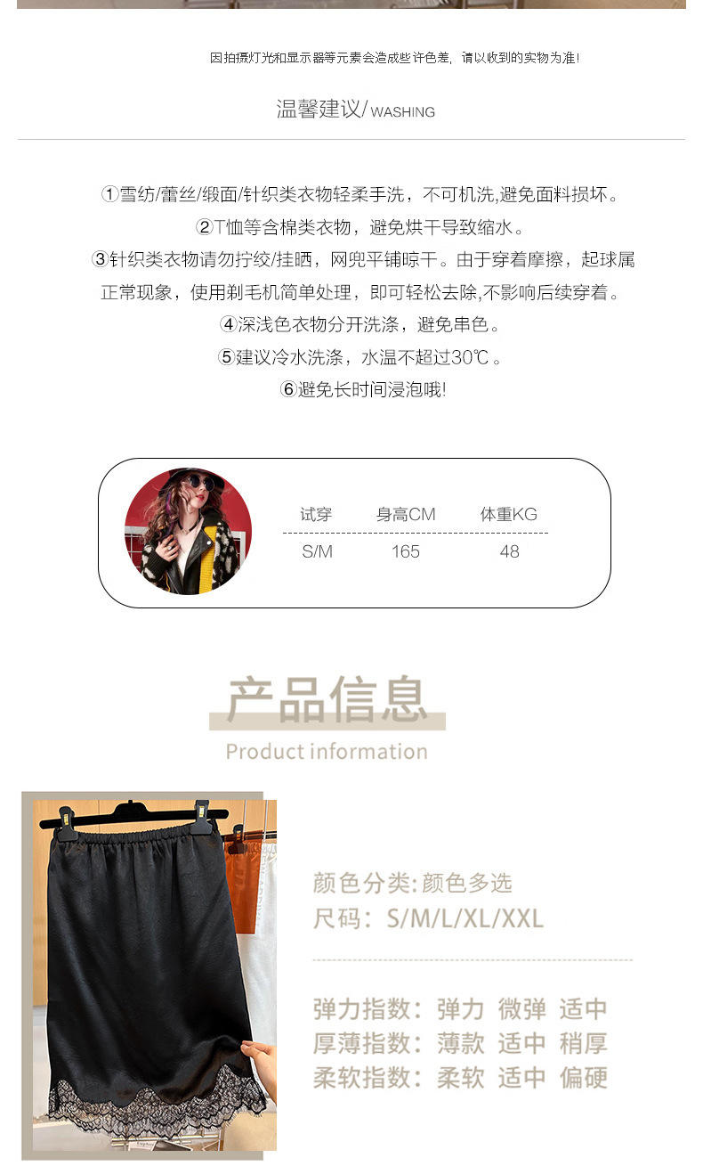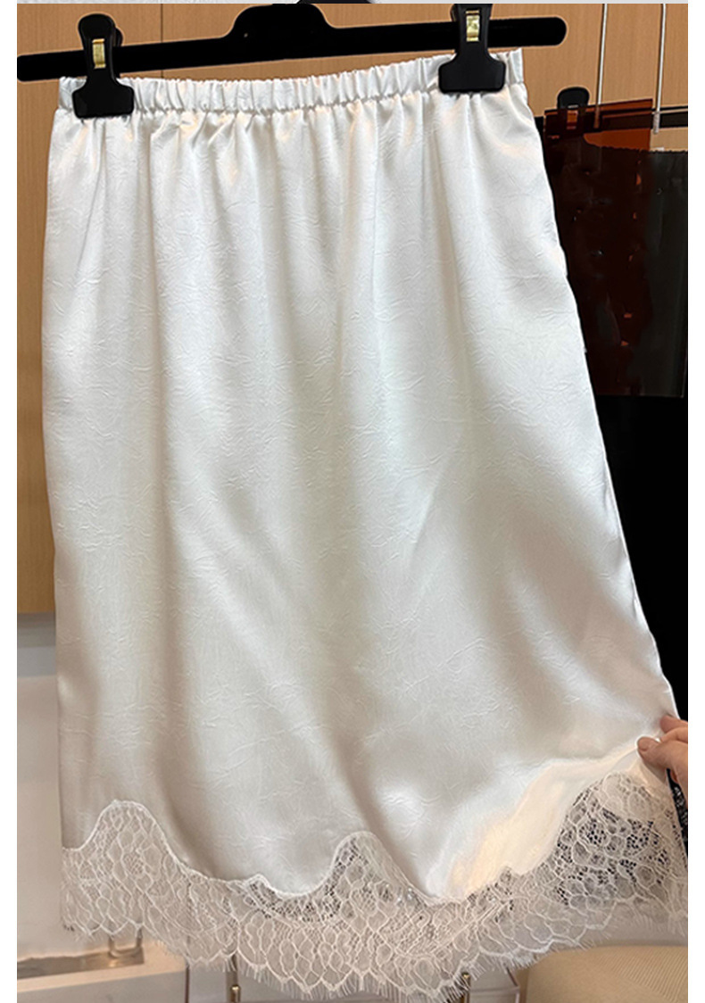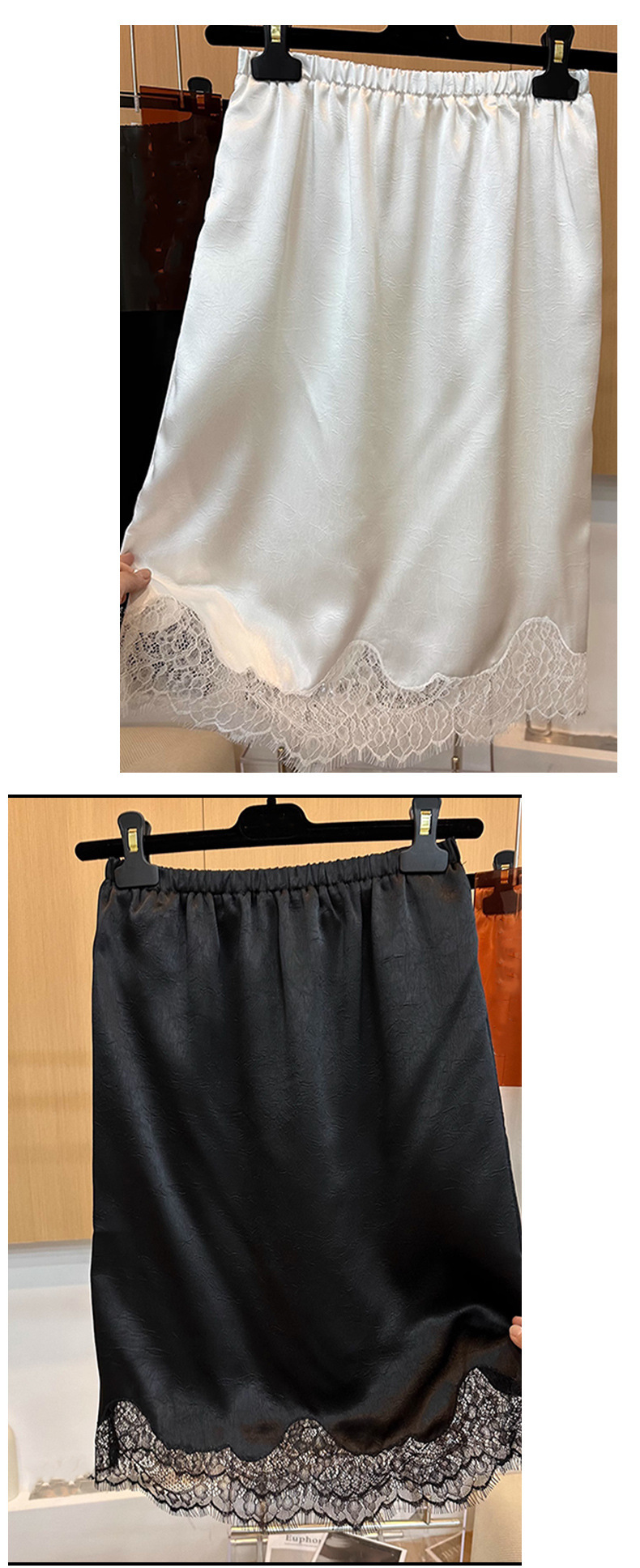 심천 2025 새로운 Nanyou 여성 유럽 스타일 크로 셰 뜨개질 레이스 스플 라이스 하이 웨이스트 새틴 자카드 a 라인 스커트 여성용스토어 가기
