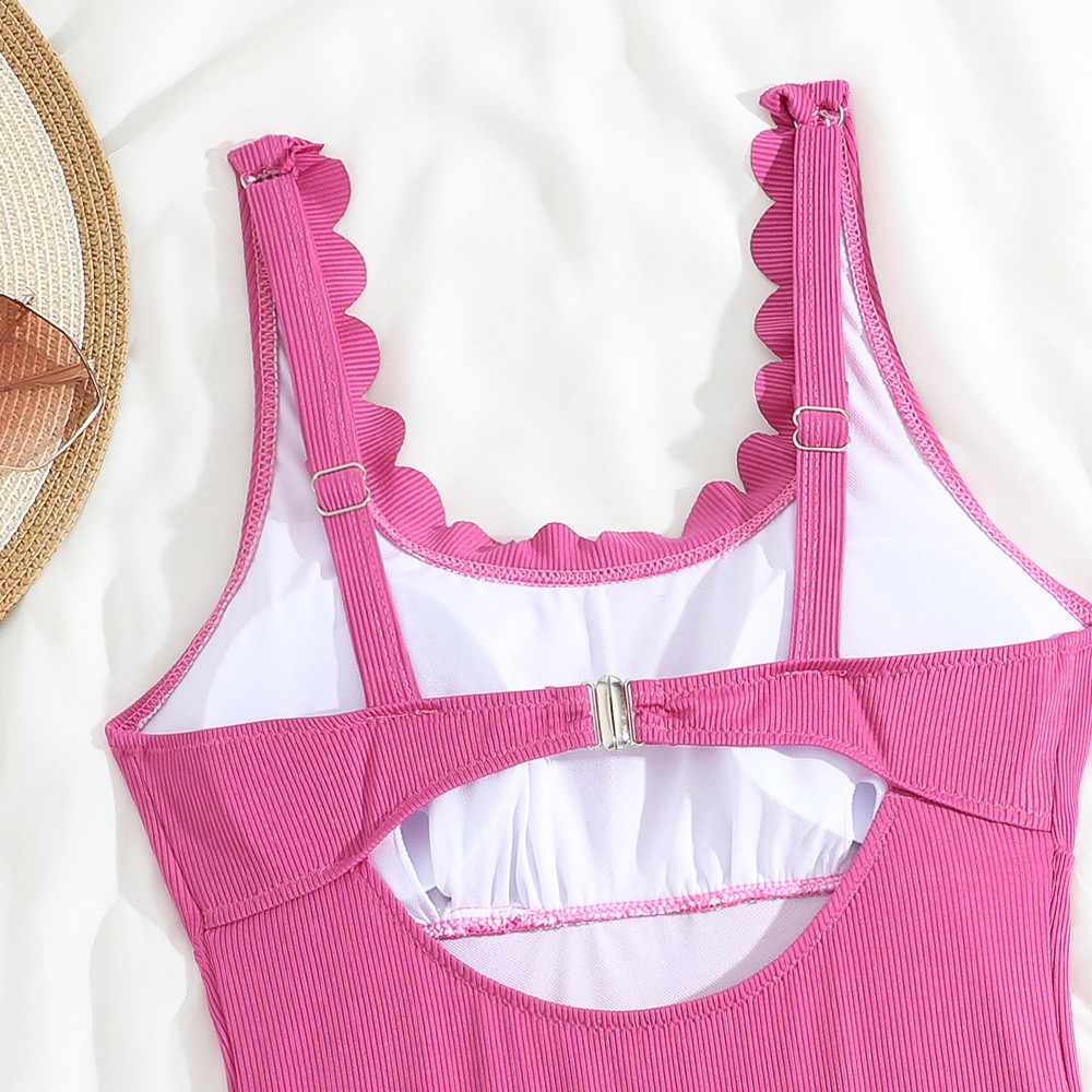 유럽과 미국의 수영복, 여성스럽고 꽉 끼는 레이스 삼각형 플러스 사이즈 핏 스트립 보수적 단색 크로스보더 여성용 새 수영복스토어 가기