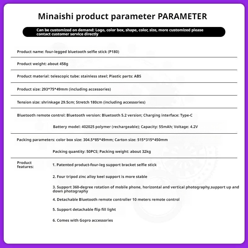 P185 P180 셀카봉 휴대용 손떨림 방지 두껍고 길어진 1.8m 알루미늄 합금 4피트 라이브 방송 플로어 스탠드스토어 가기