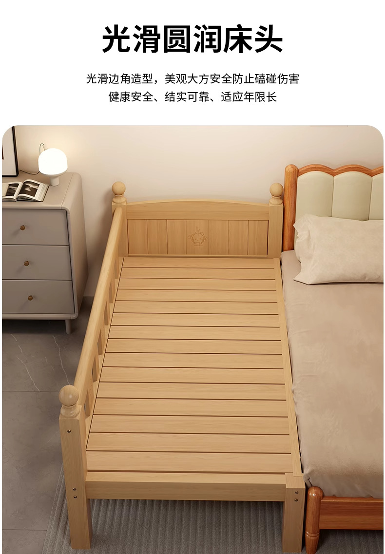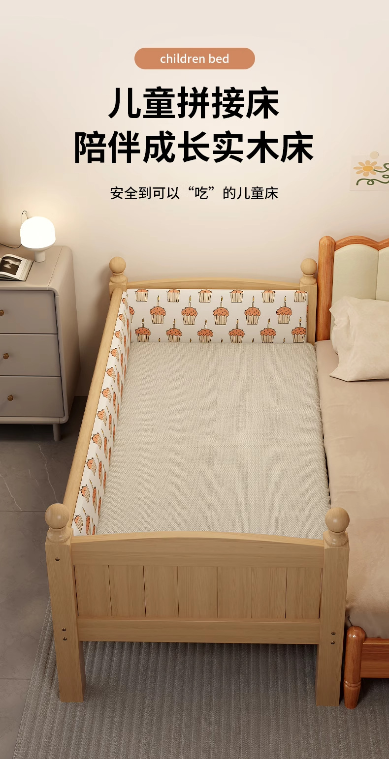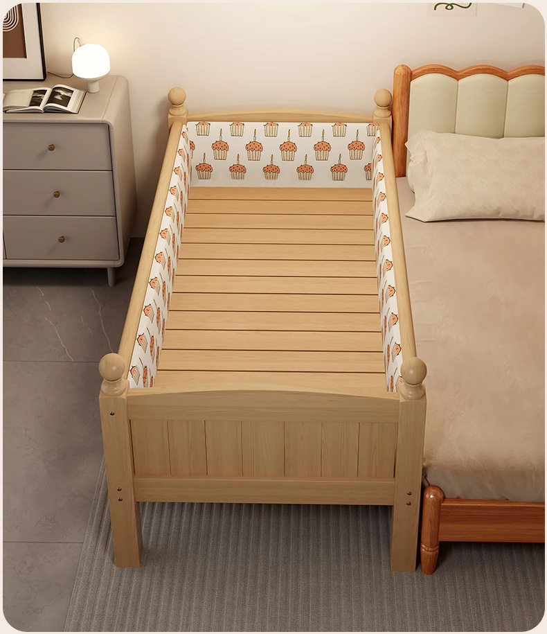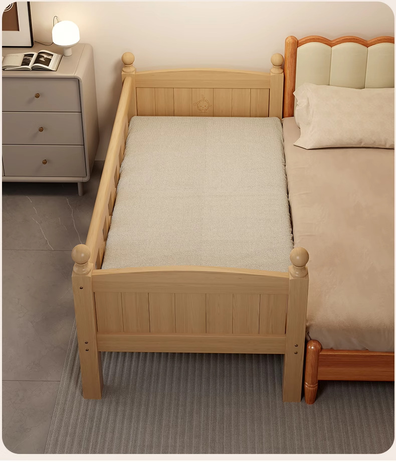 가드레일 어린이 침대, 페인트가 없는 전체 원목 접합 침대, 아기 유아용 침대, 대형 침대와 원활하게 연결된 이음매 없는 침대, 확장된 엘라인 침대스토어 가기