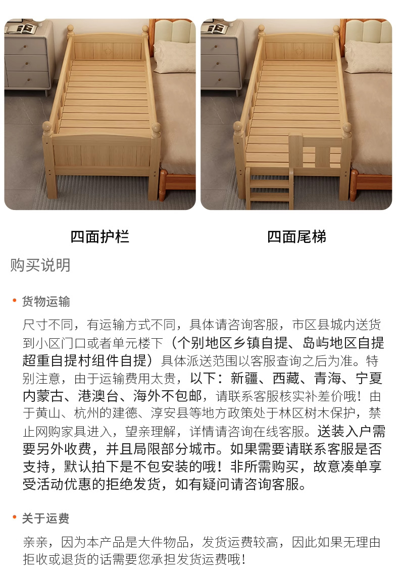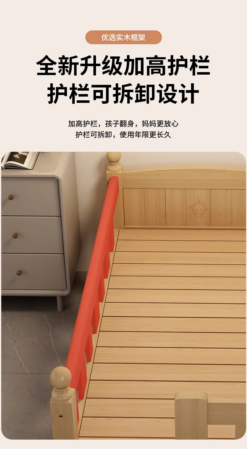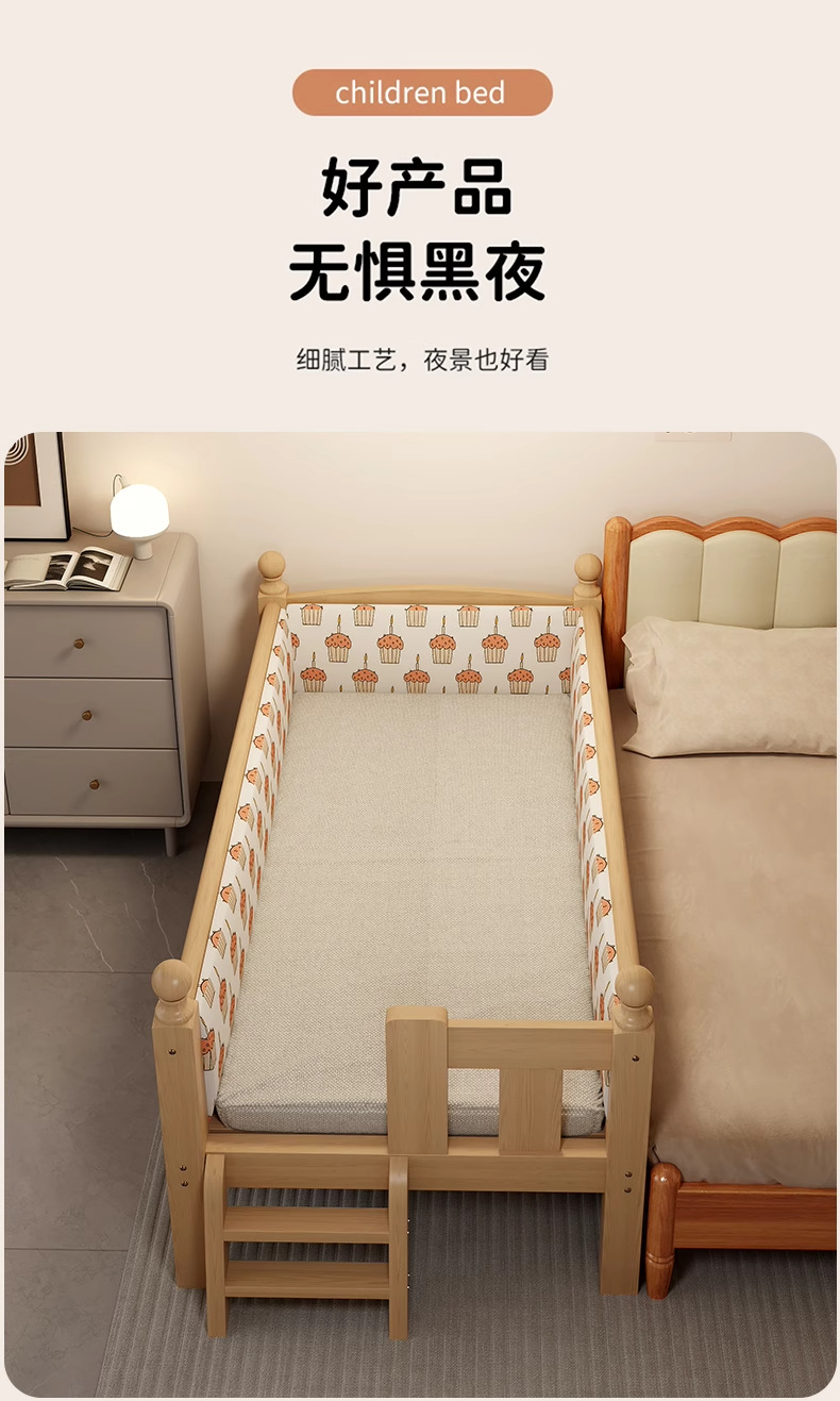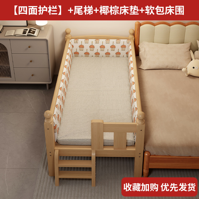 가드레일 어린이 침대, 페인트가 없는 전체 원목 접합 침대, 아기 유아용 침대, 대형 침대와 원활하게 연결된 이음매 없는 침대, 확장된 엘라인 침대스토어 가기