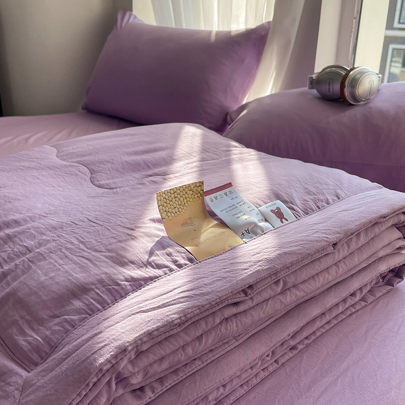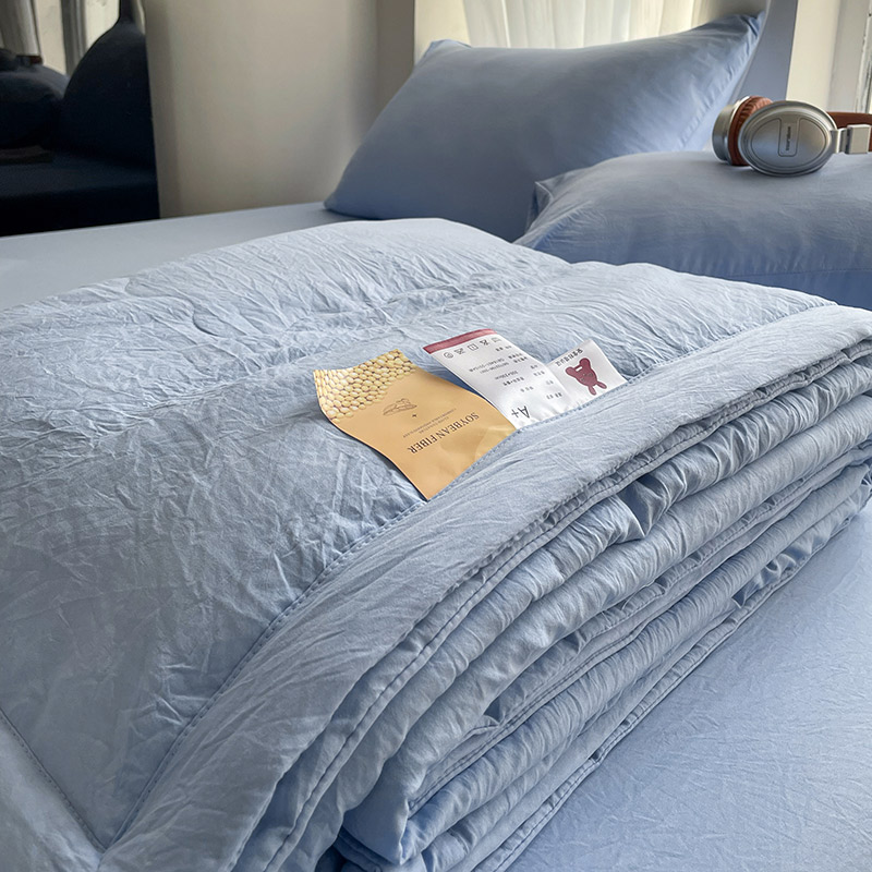 Ins 슈퍼 소프트 블루 워시 코튼 여름 이불 4피스 여름 이불 솔리드 컬러 기계 세탁 가능 에어컨 경량 이불 코어