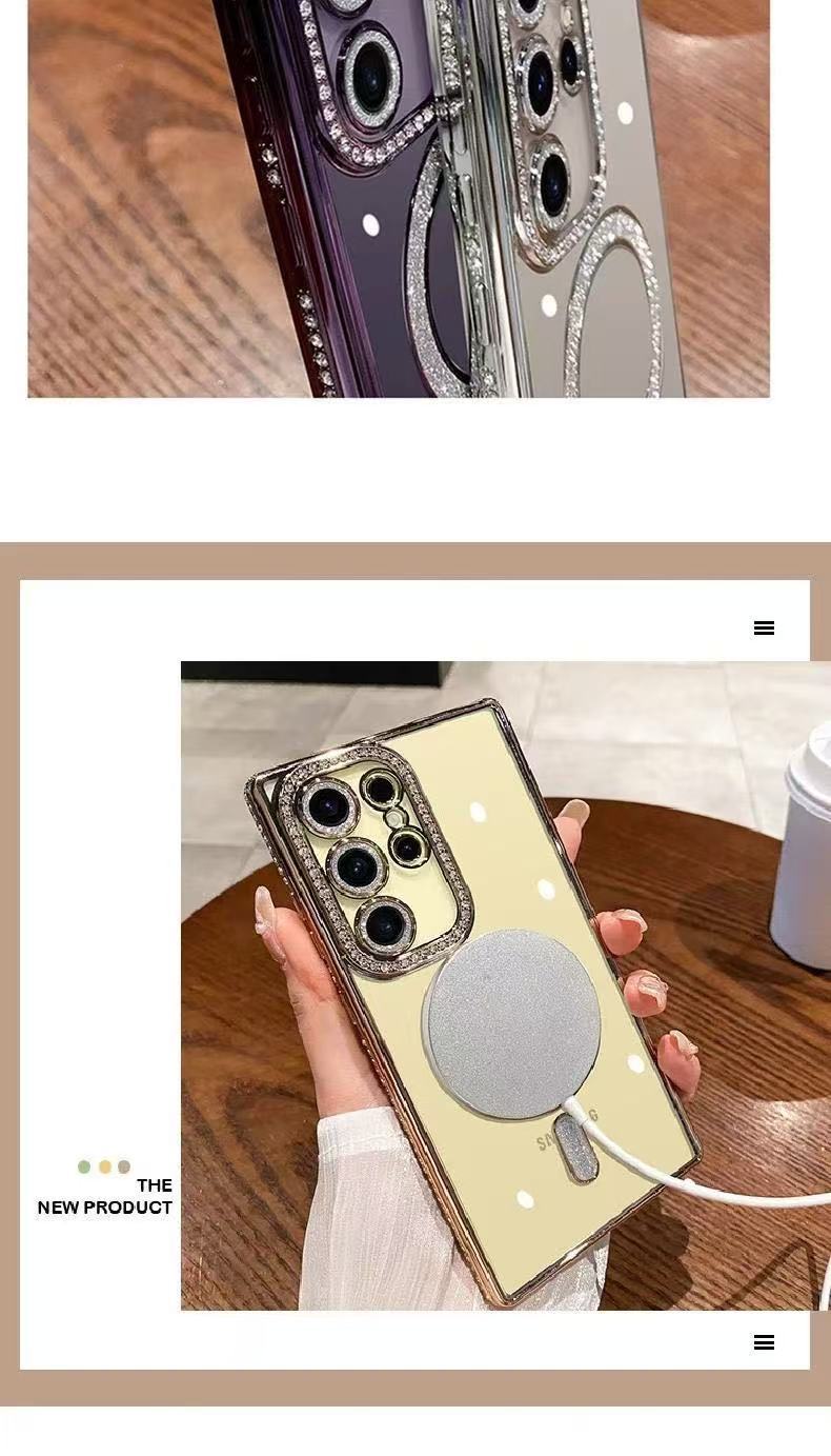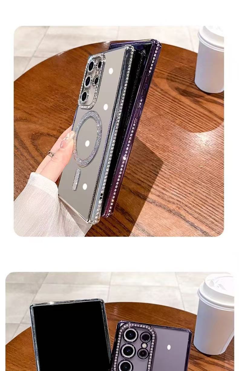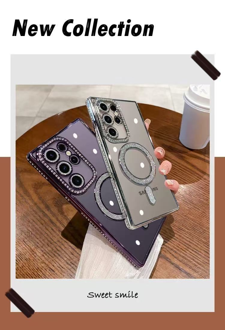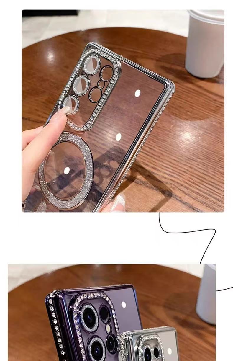 삼성 S25 S24FE S23 플러스 S22 울트라 보호 케이스에 적합한 반짝이는 라인스톤 자석 휴대폰 케이스스토어 가기