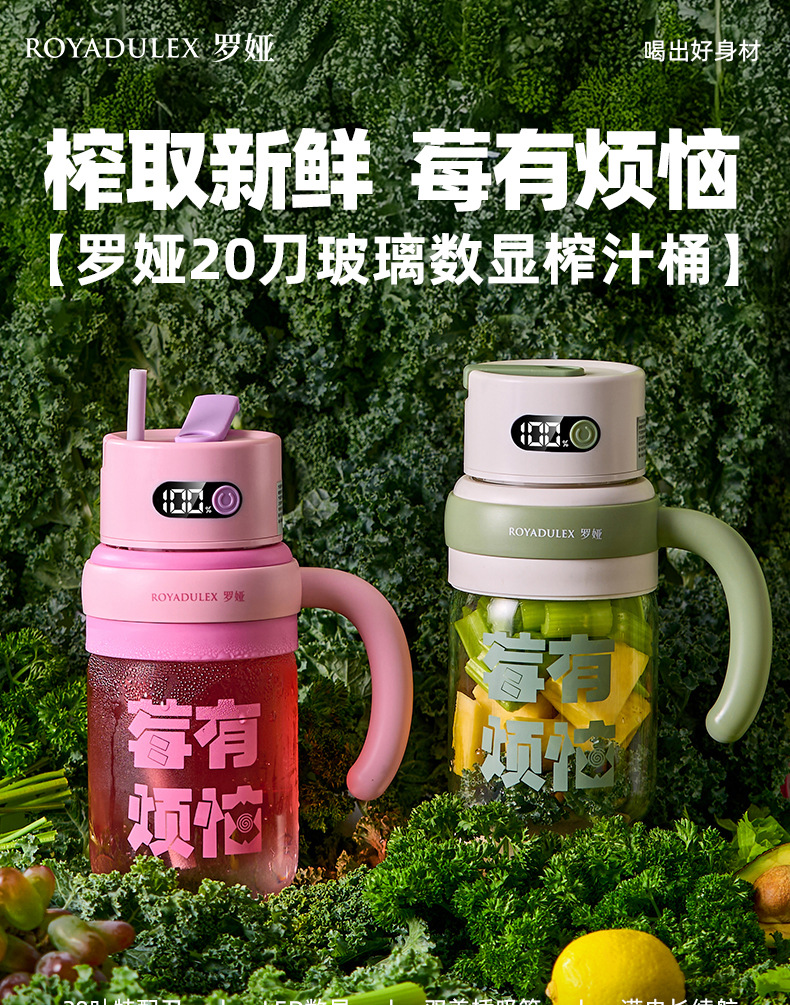 로야 유리 주스통 휴대용 주스기 대용량 컵 다기능 학생용 물컵 무소음스토어 가기