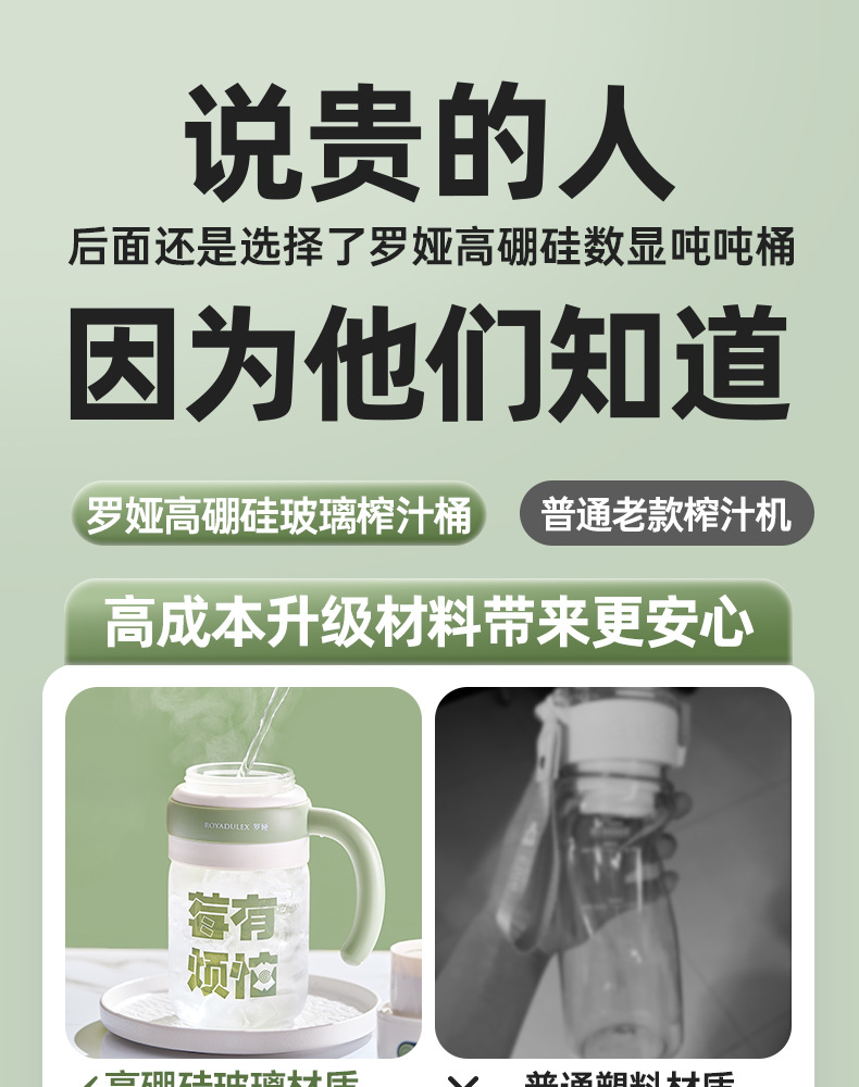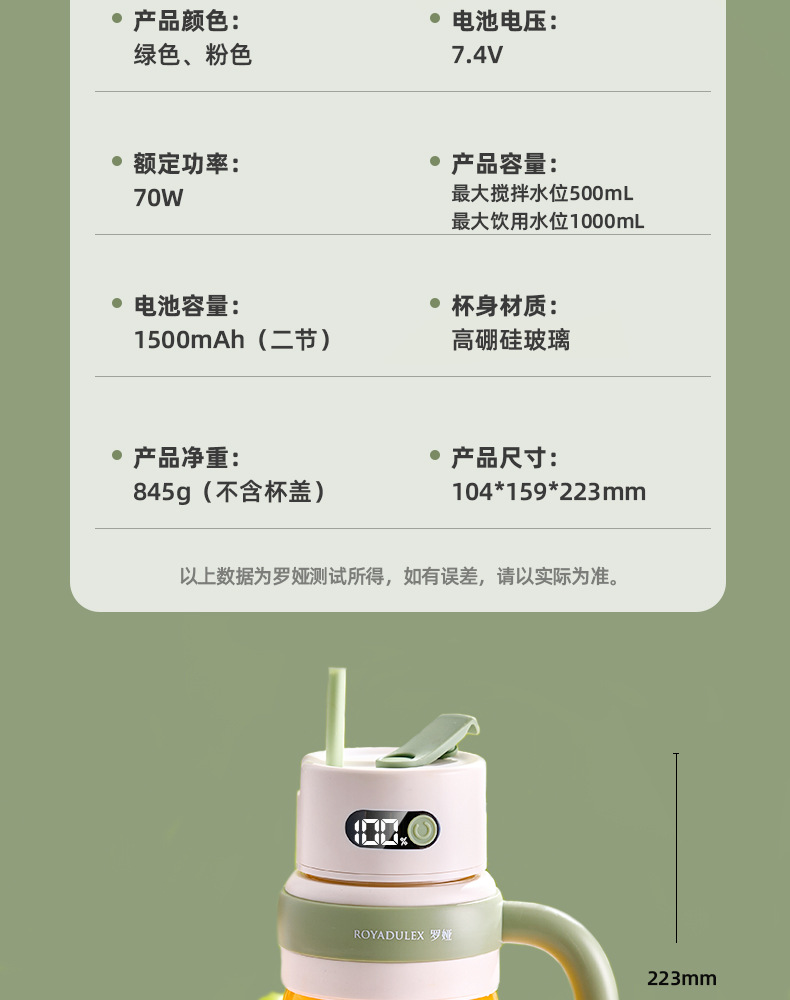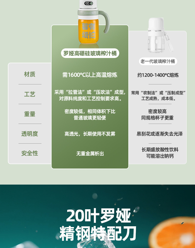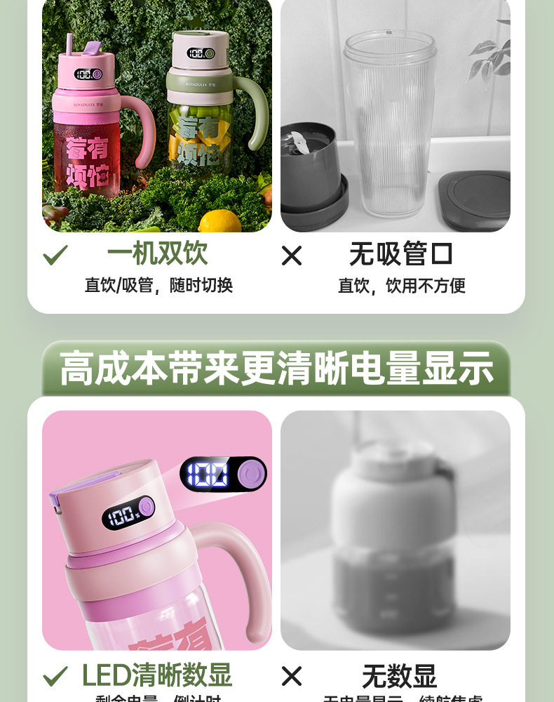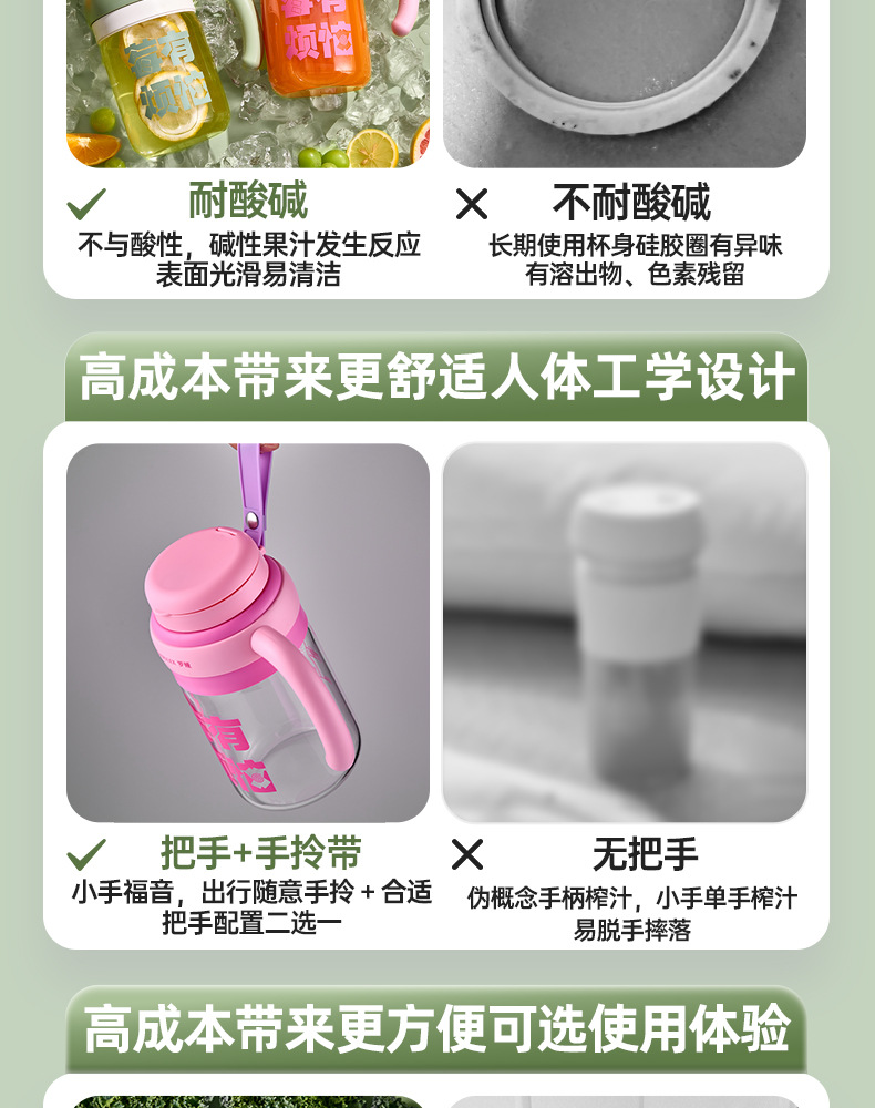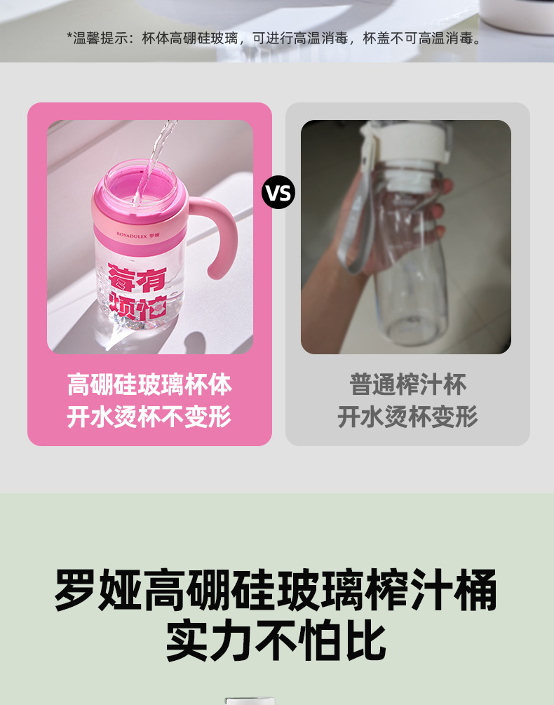 로야 유리 주스통 휴대용 주스기 대용량 컵 다기능 학생용 물컵 무소음