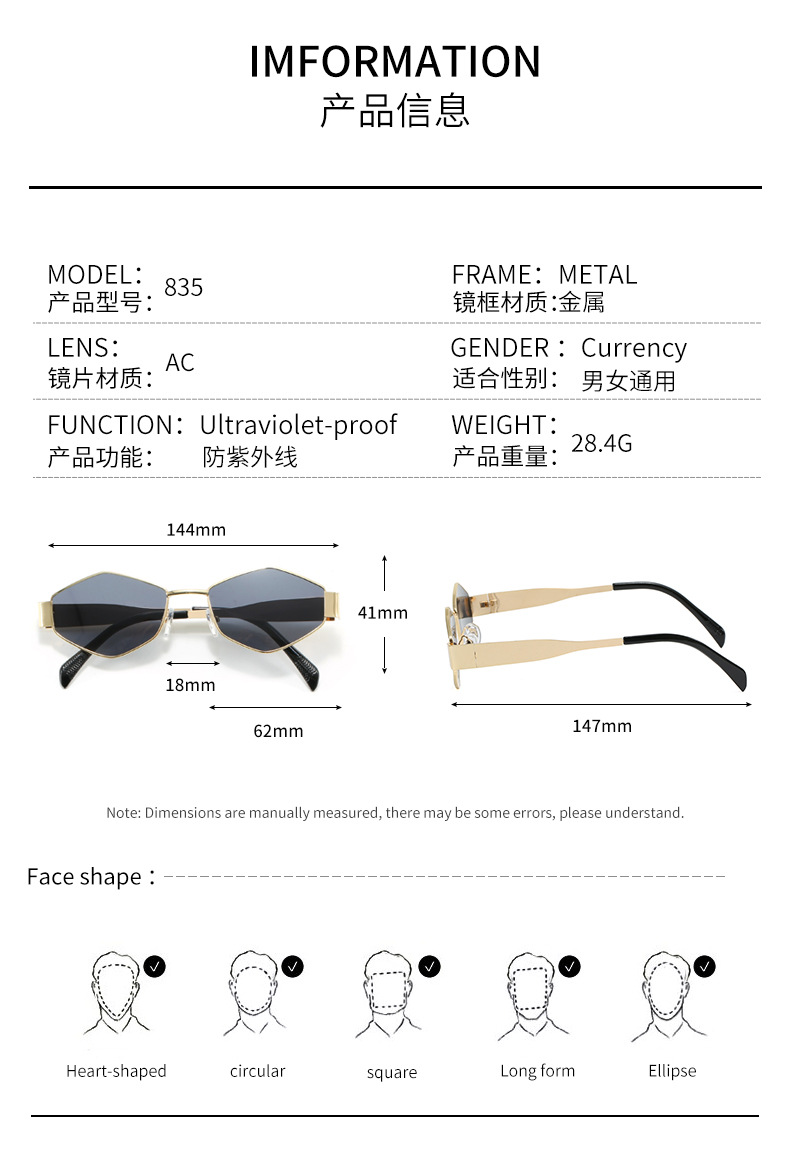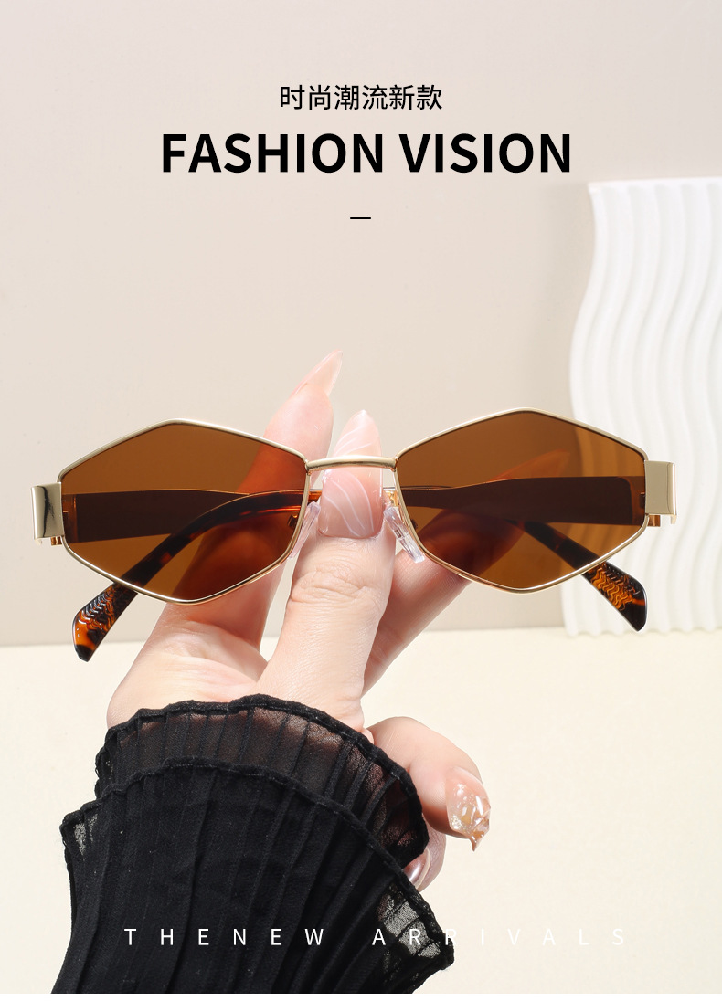 여성용 복고풍 다각형 프랑스 개선문 금속 선글라스 남성용 인터넷 연예인 패션 오목 모양 자외선 방지 선글라스스토어 가기