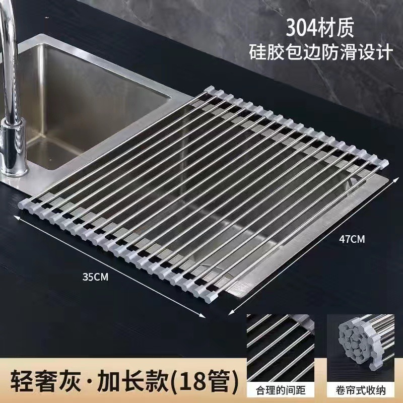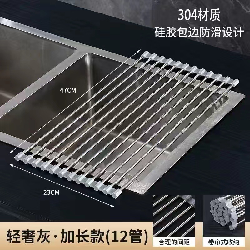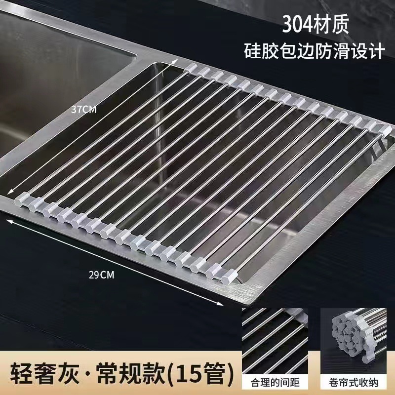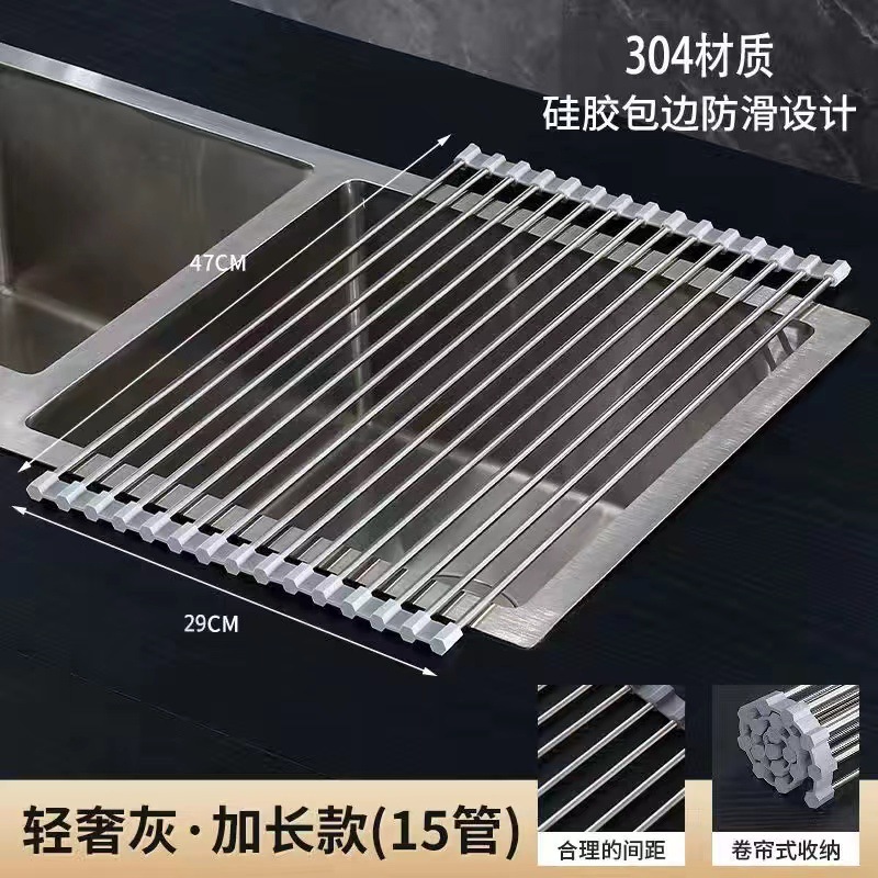 싱크대 아래 배수구 보관 선반 접이식 실리콘 롤러 셔터 매트 주방 싱크대 보관 선반 그릇 및 젓가락 선반