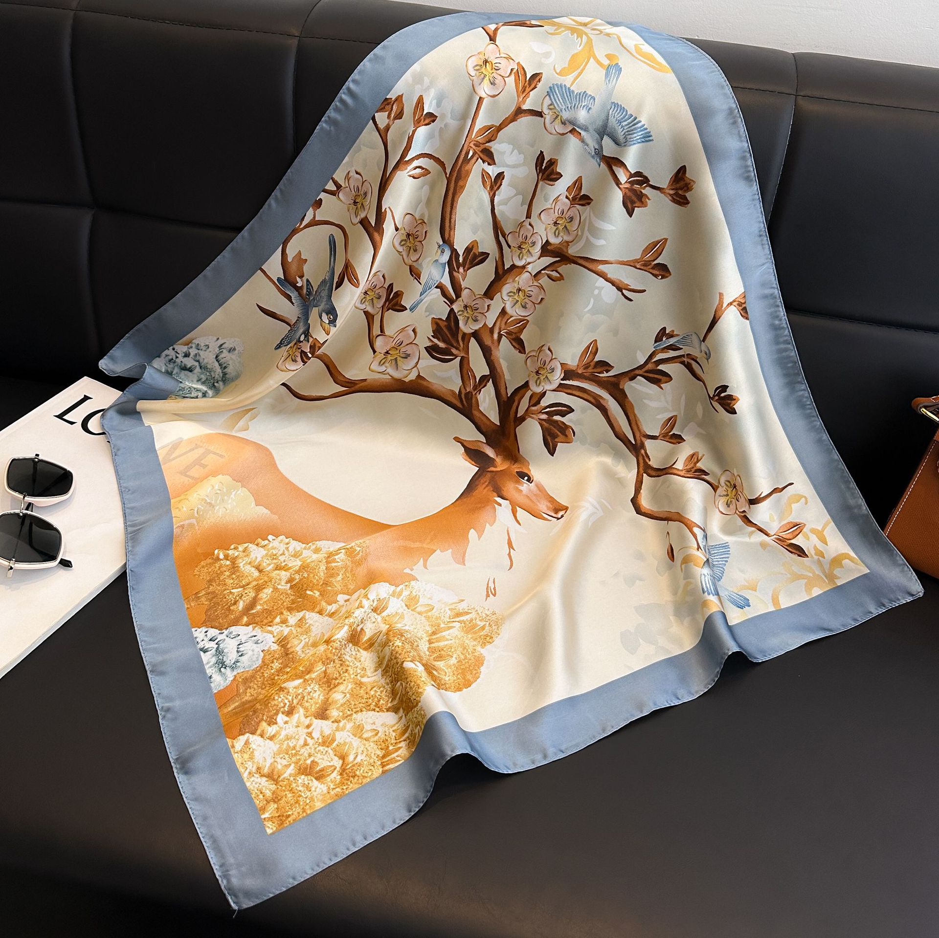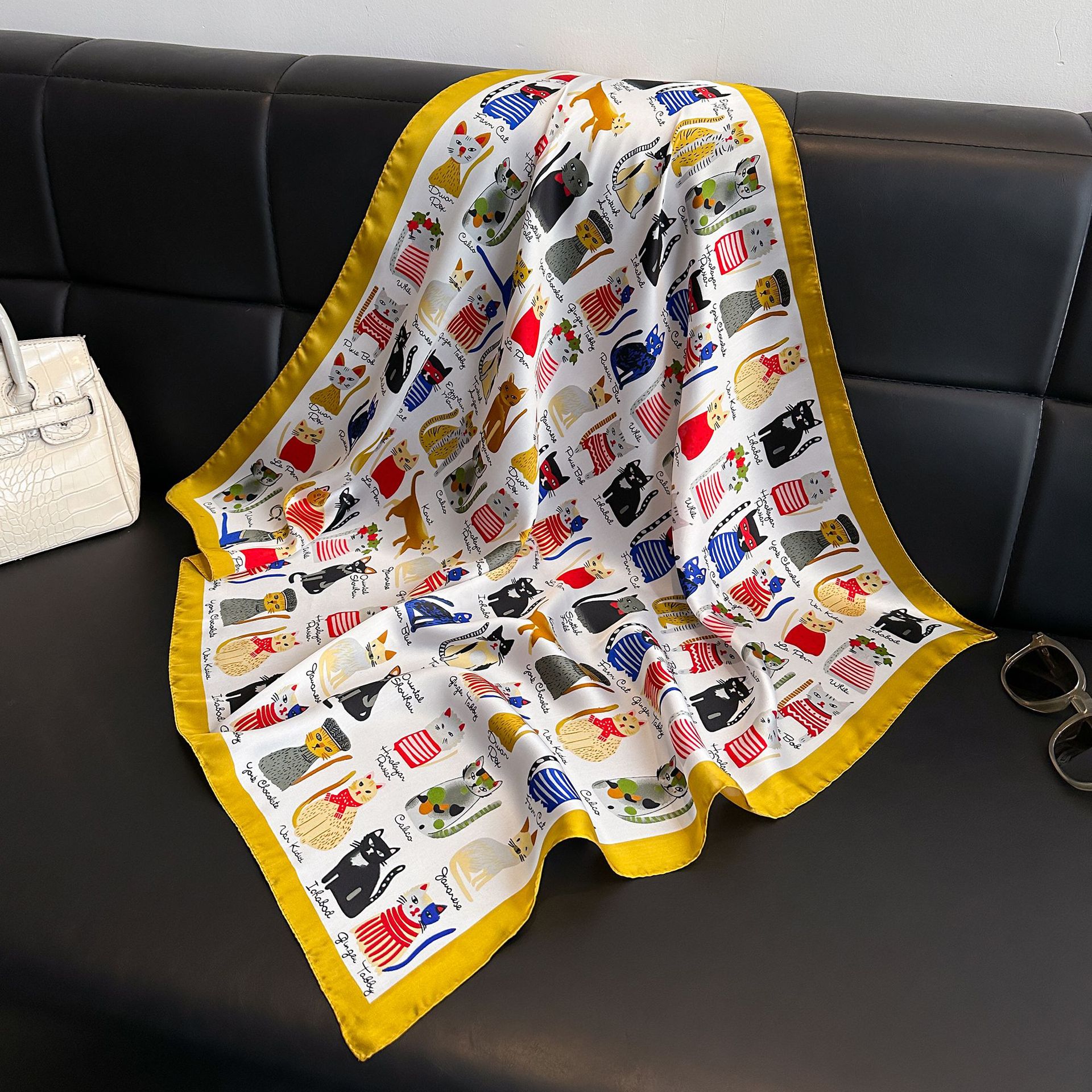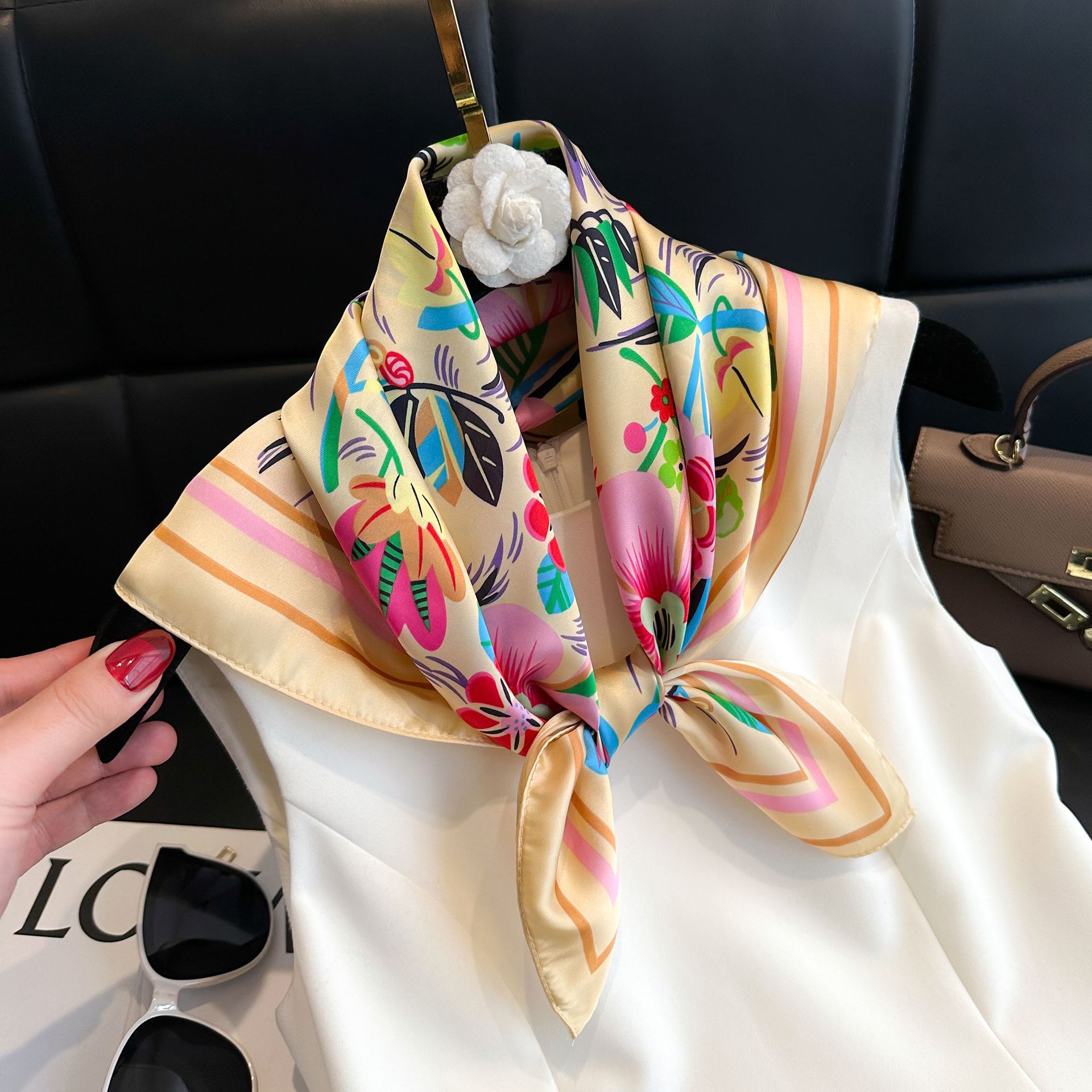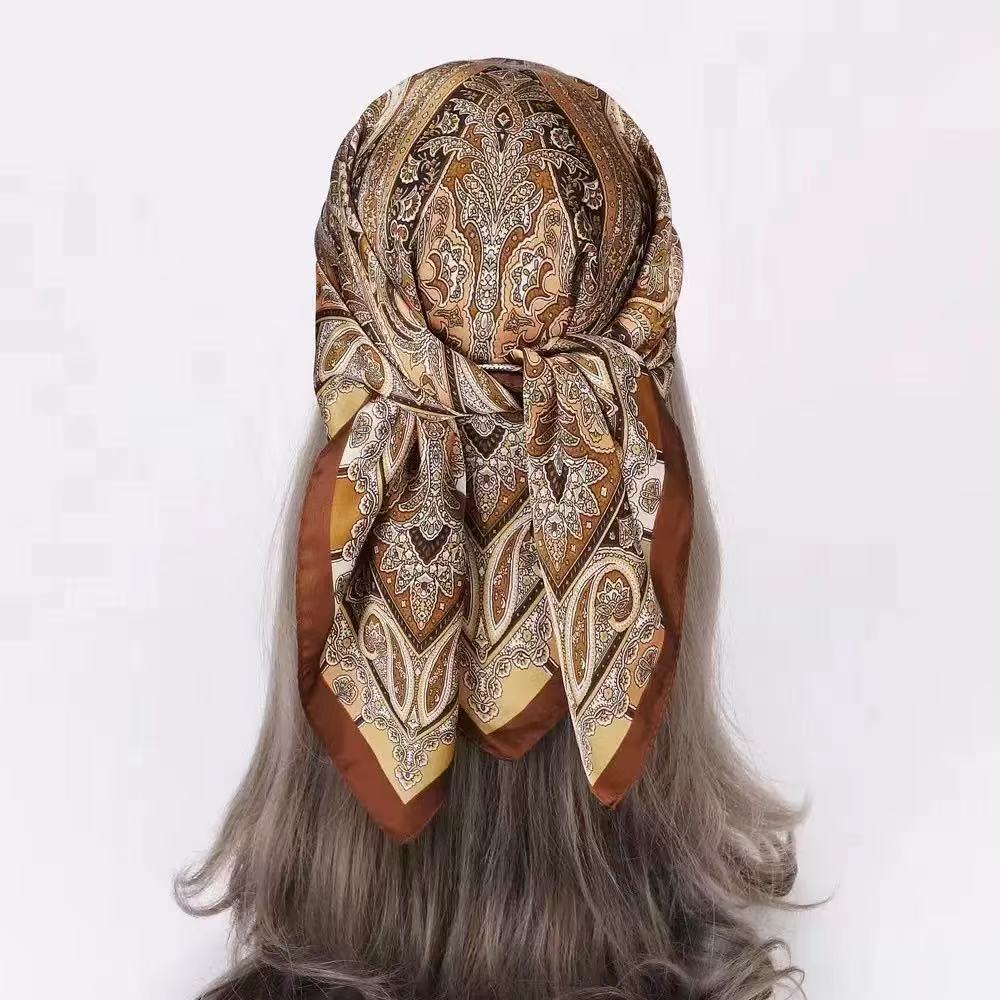 시뮬레이션 실크 프린트 실크 스카프 여성용 작은 사각형 스카프 한국 캐슈 레오파드 프린트 스카프 사계절 스카프 전문 스카프 도매스토어 가기