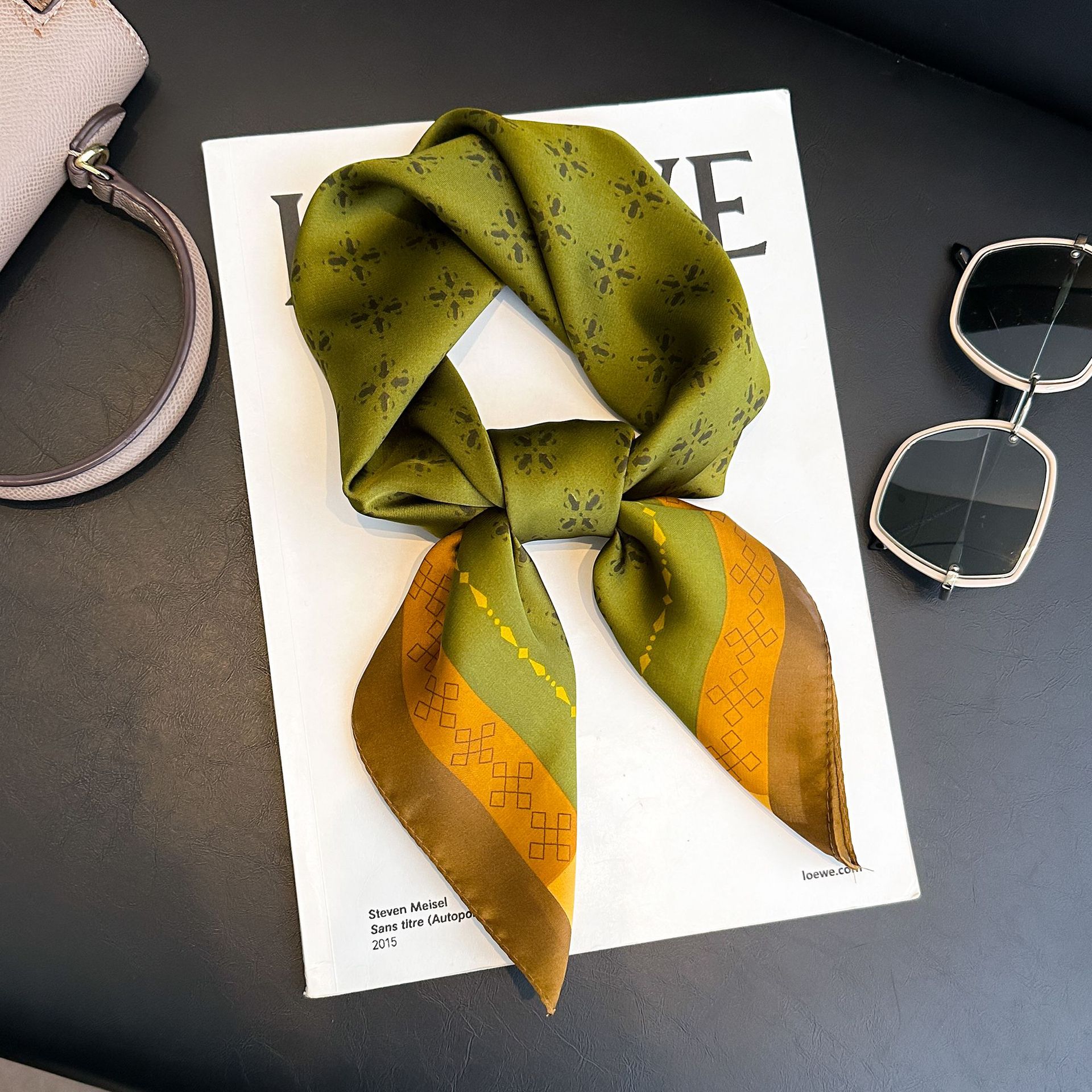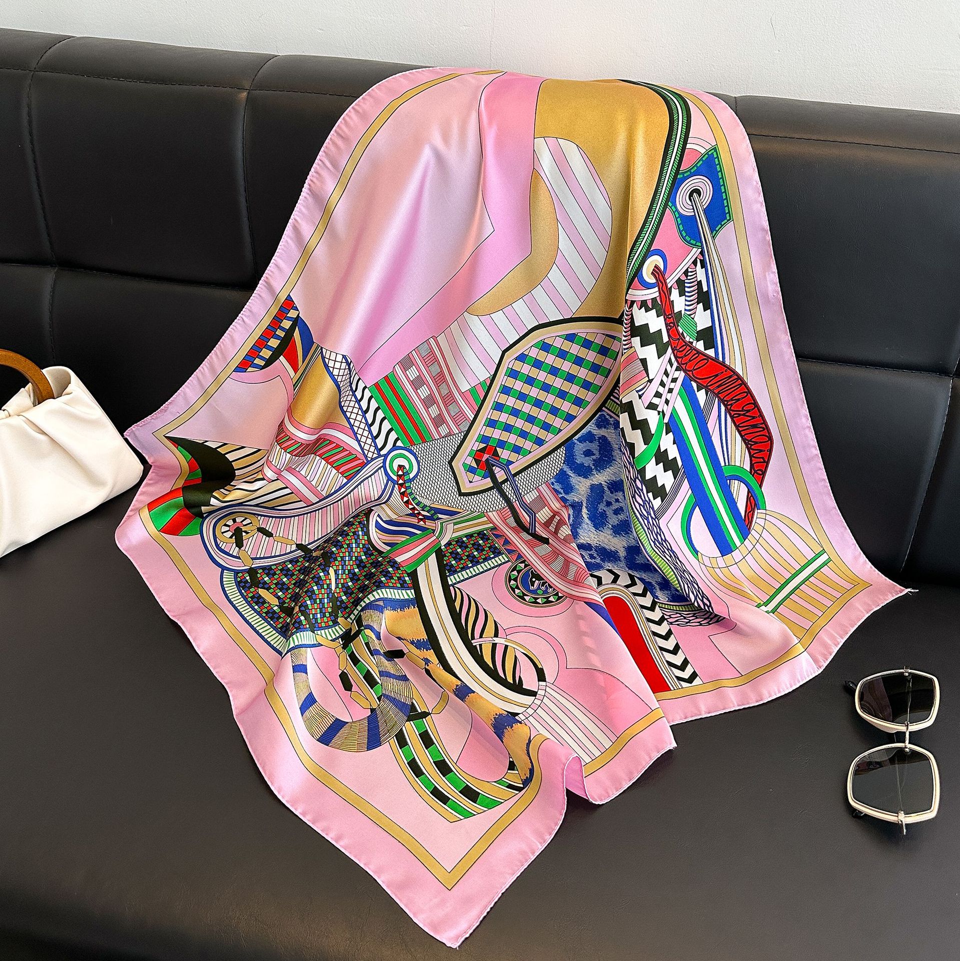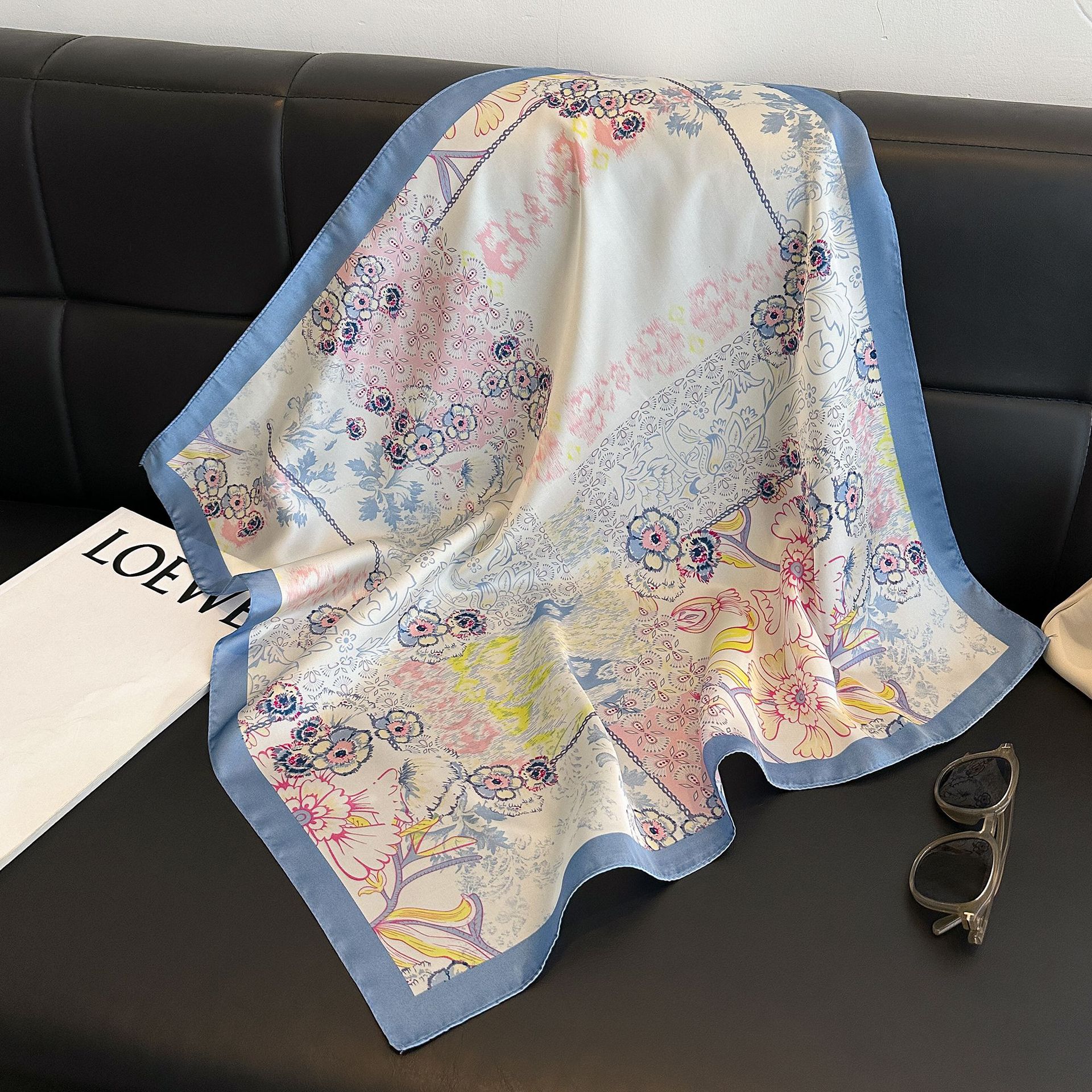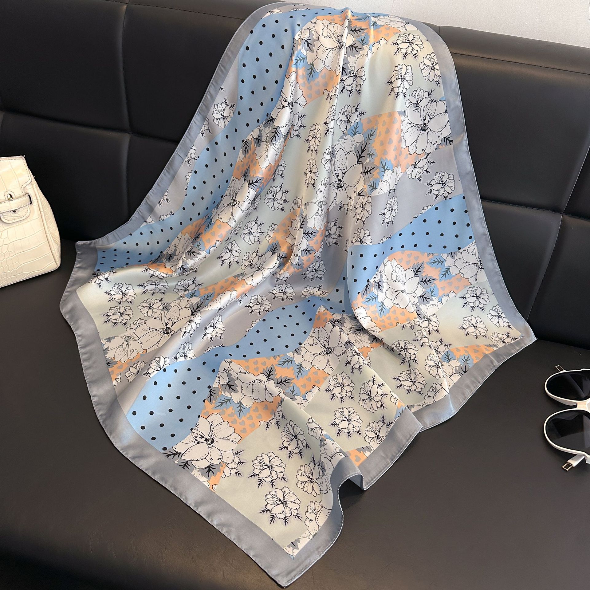 시뮬레이션 실크 프린트 실크 스카프 여성용 작은 사각형 스카프 한국 캐슈 레오파드 프린트 스카프 사계절 스카프 전문 스카프 도매스토어 가기