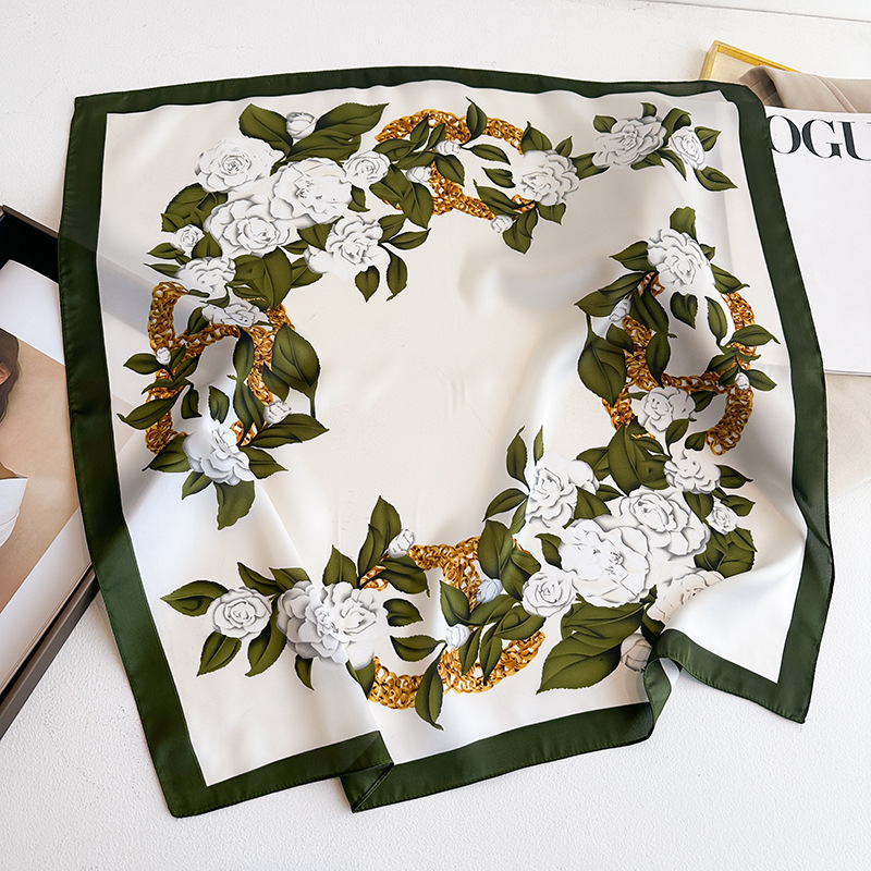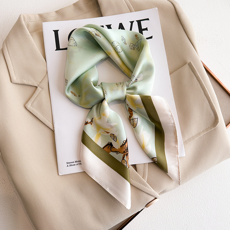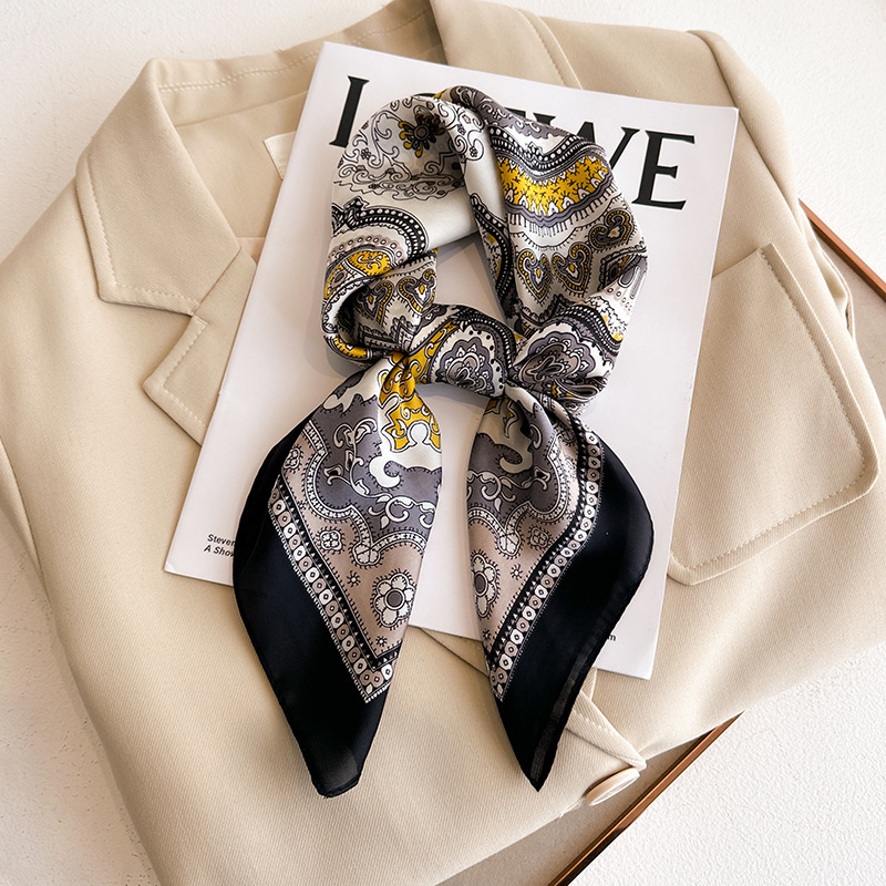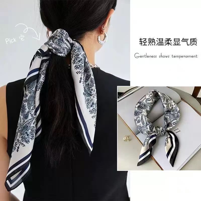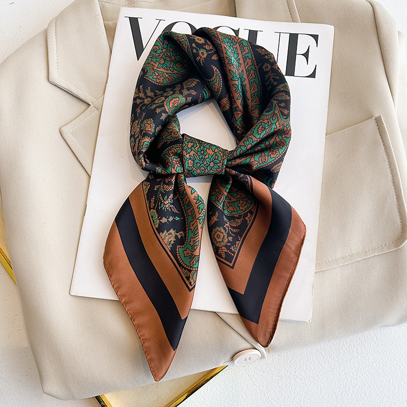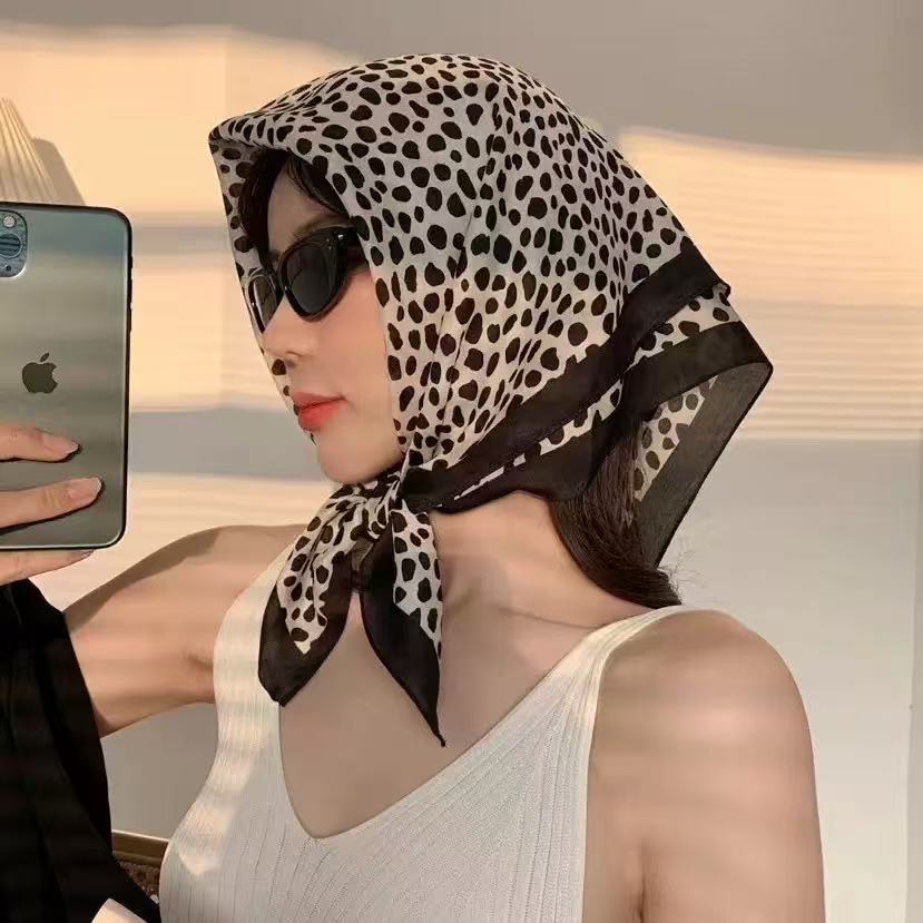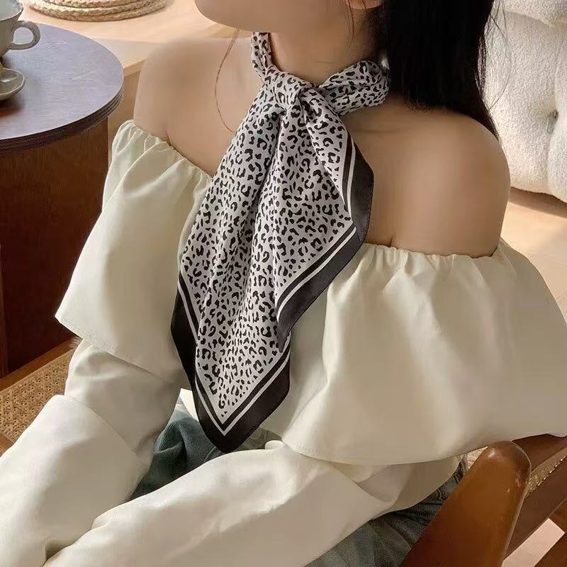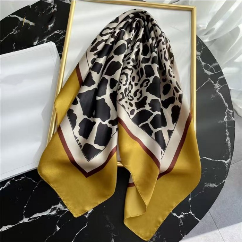 시뮬레이션 실크 프린트 실크 스카프 여성용 작은 사각형 스카프 한국 캐슈 레오파드 프린트 스카프 사계절 스카프 전문 스카프 도매