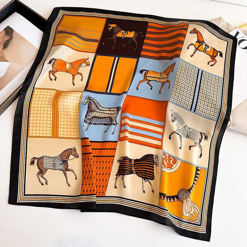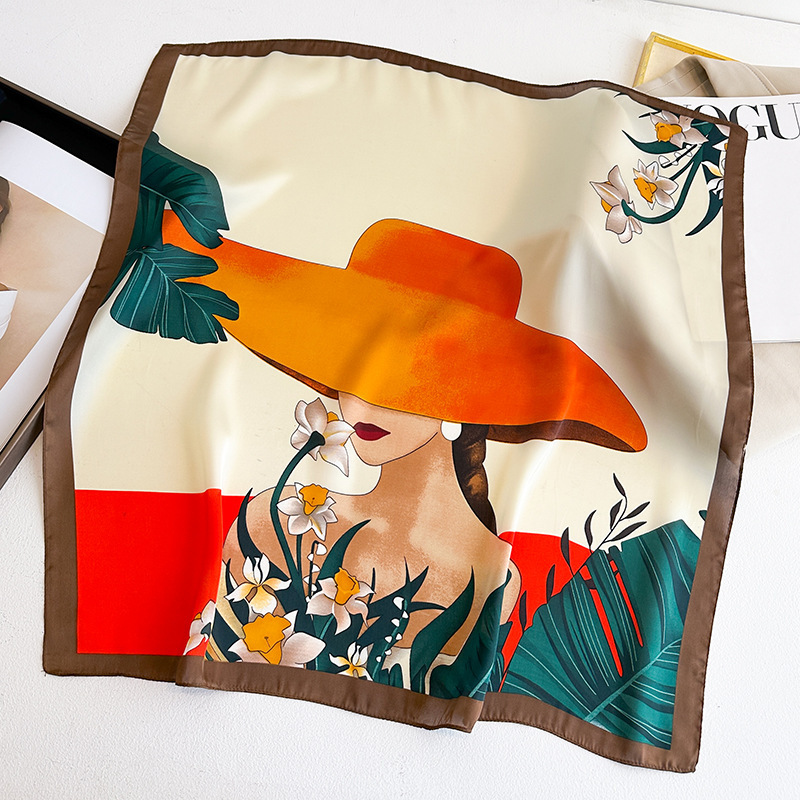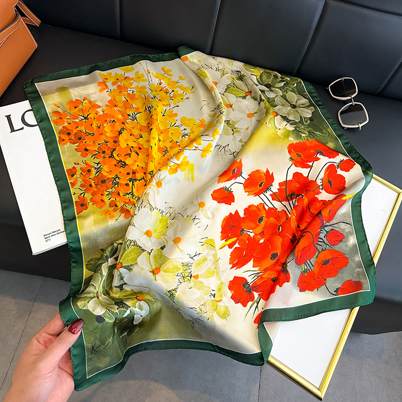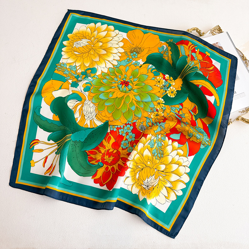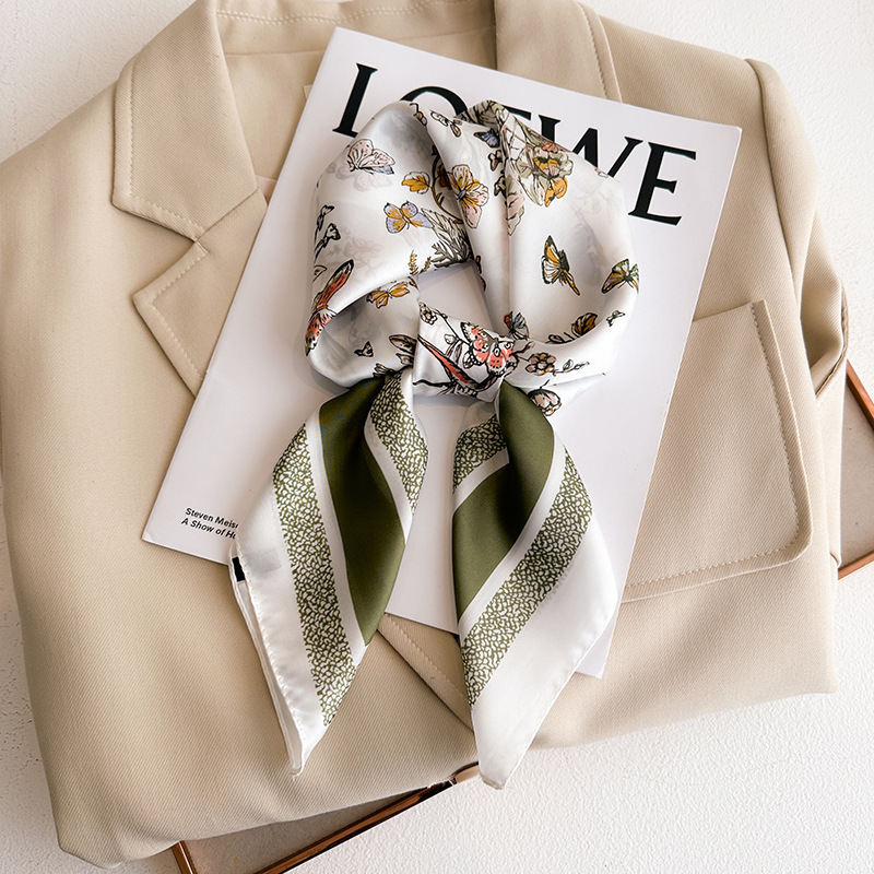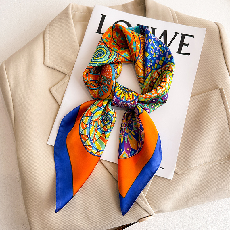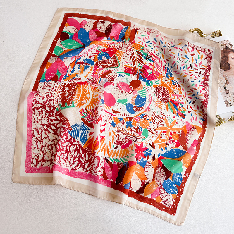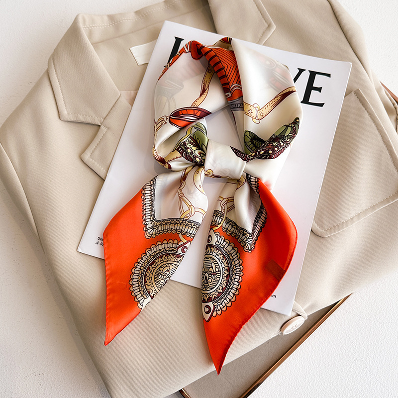 시뮬레이션 실크 프린트 실크 스카프 여성용 작은 사각형 스카프 한국 캐슈 레오파드 프린트 스카프 사계절 스카프 전문 스카프 도매