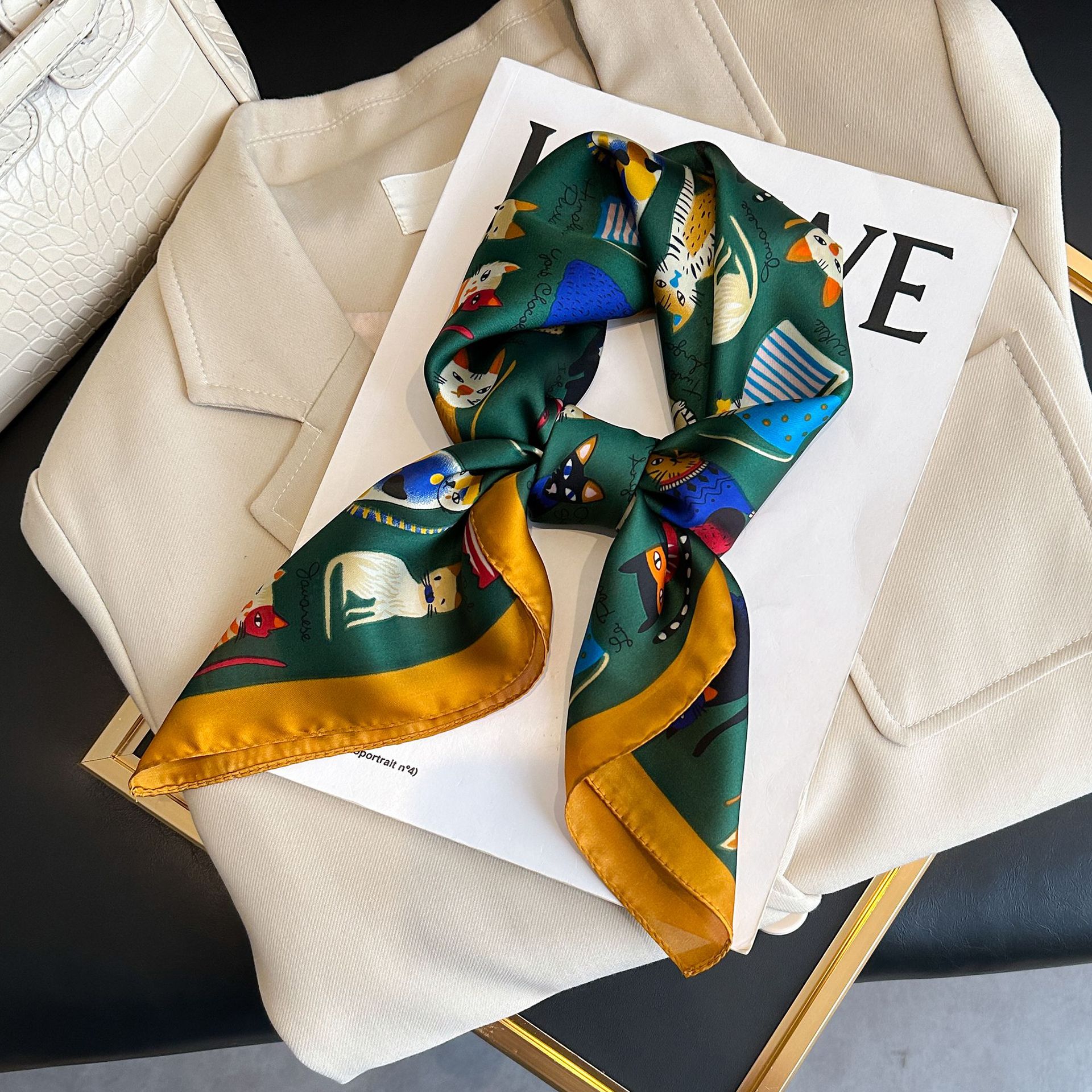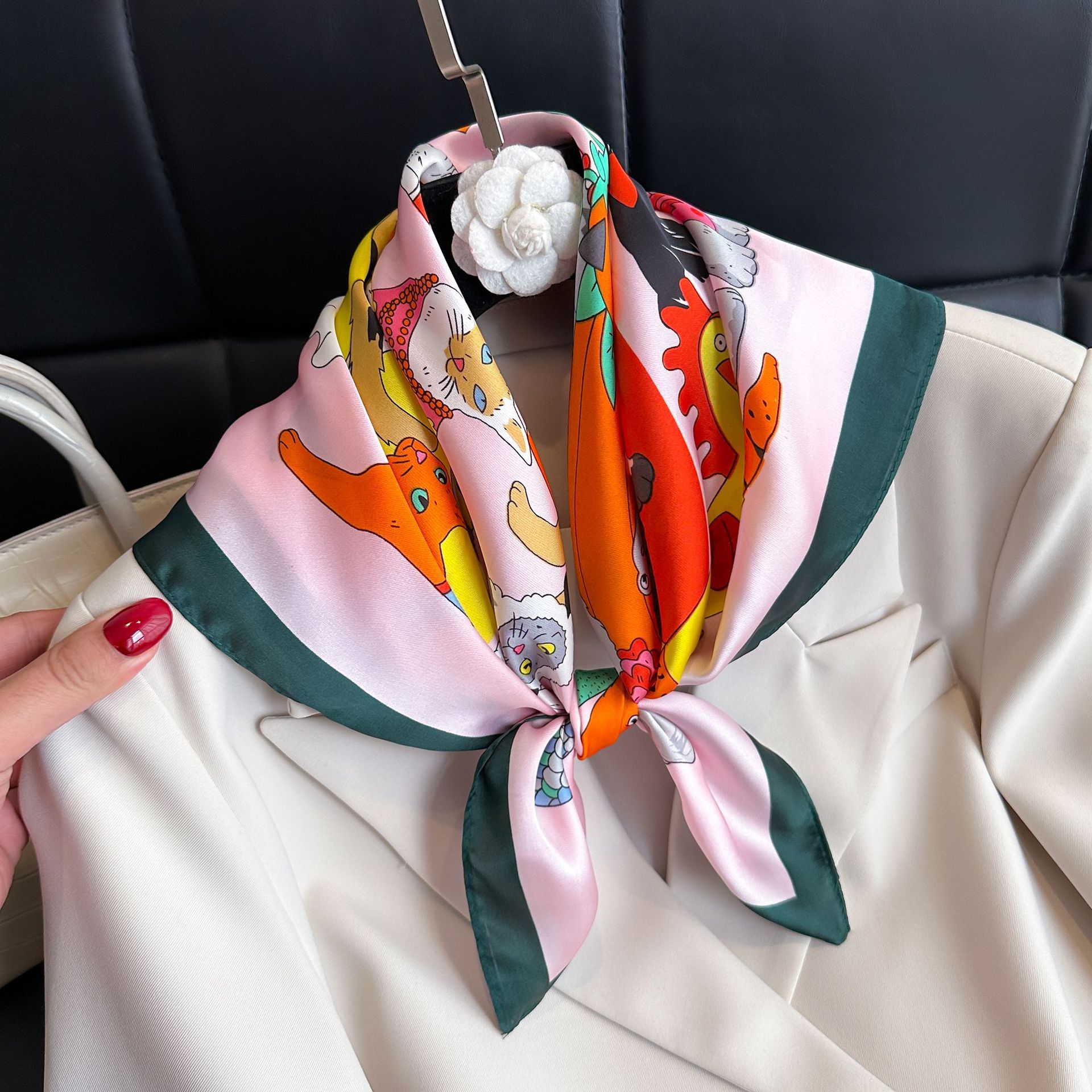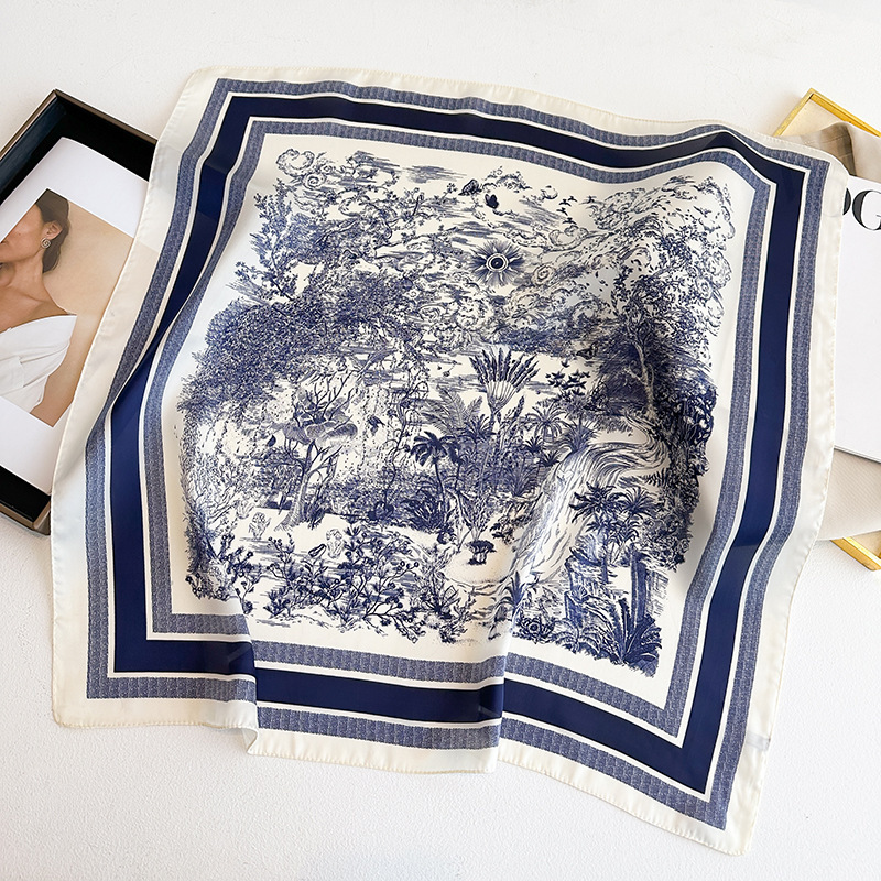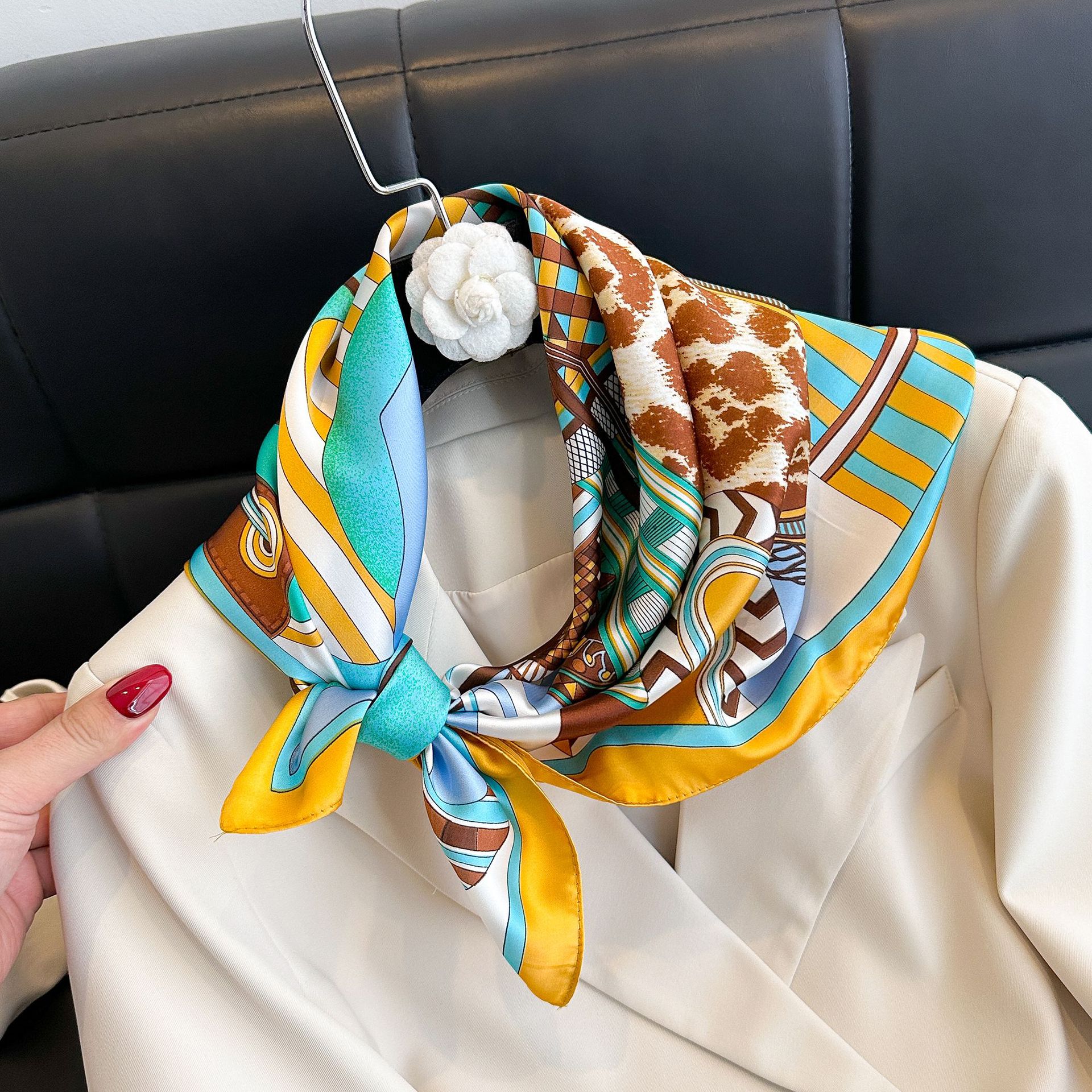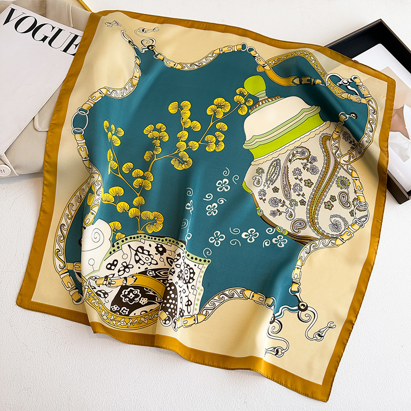 시뮬레이션 실크 프린트 실크 스카프 여성용 작은 사각형 스카프 한국 캐슈 레오파드 프린트 스카프 사계절 스카프 전문 스카프 도매