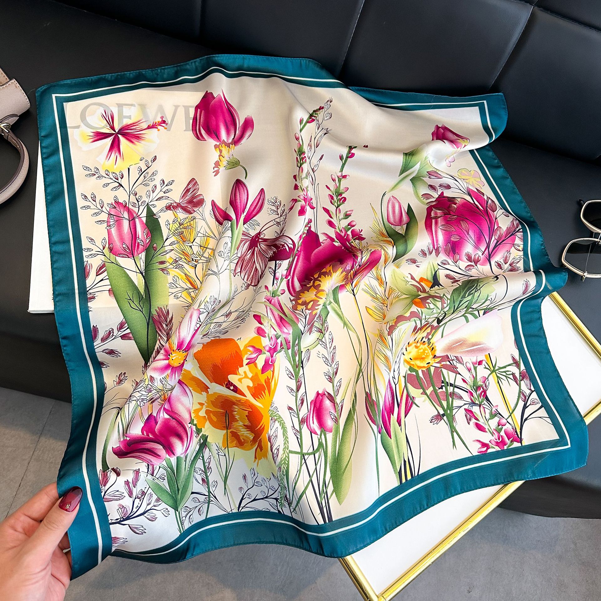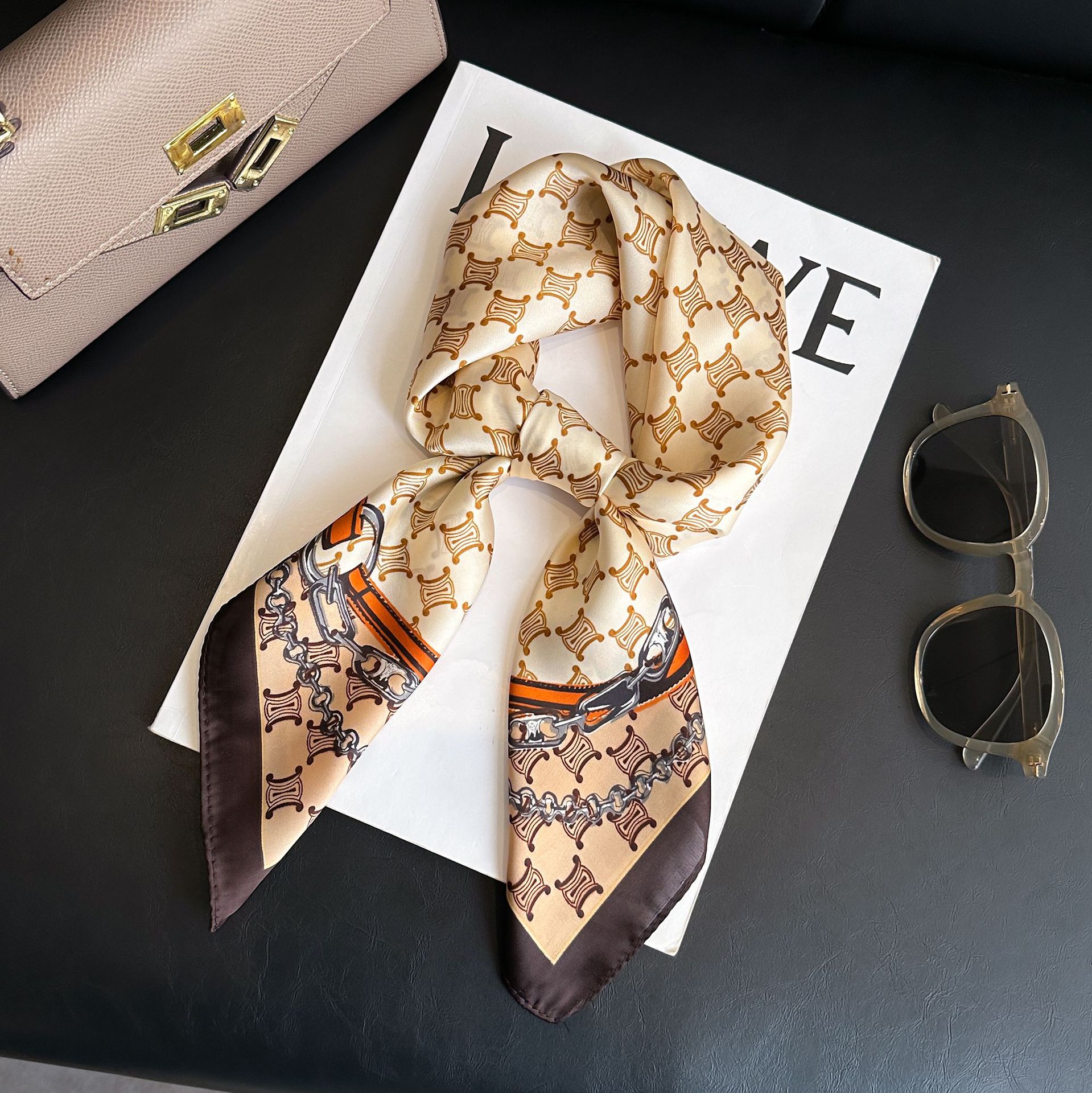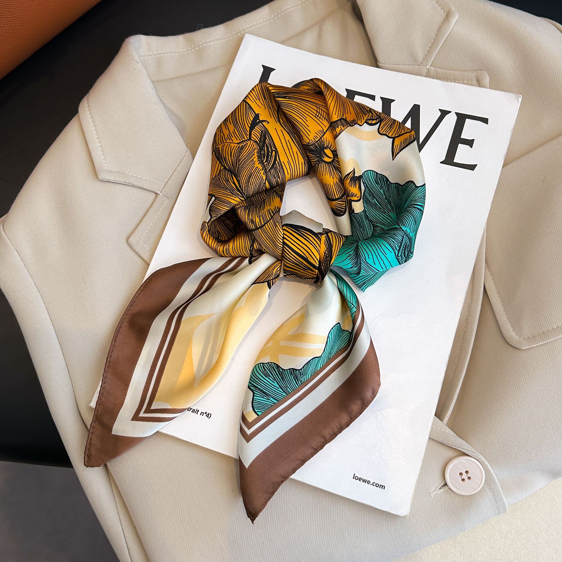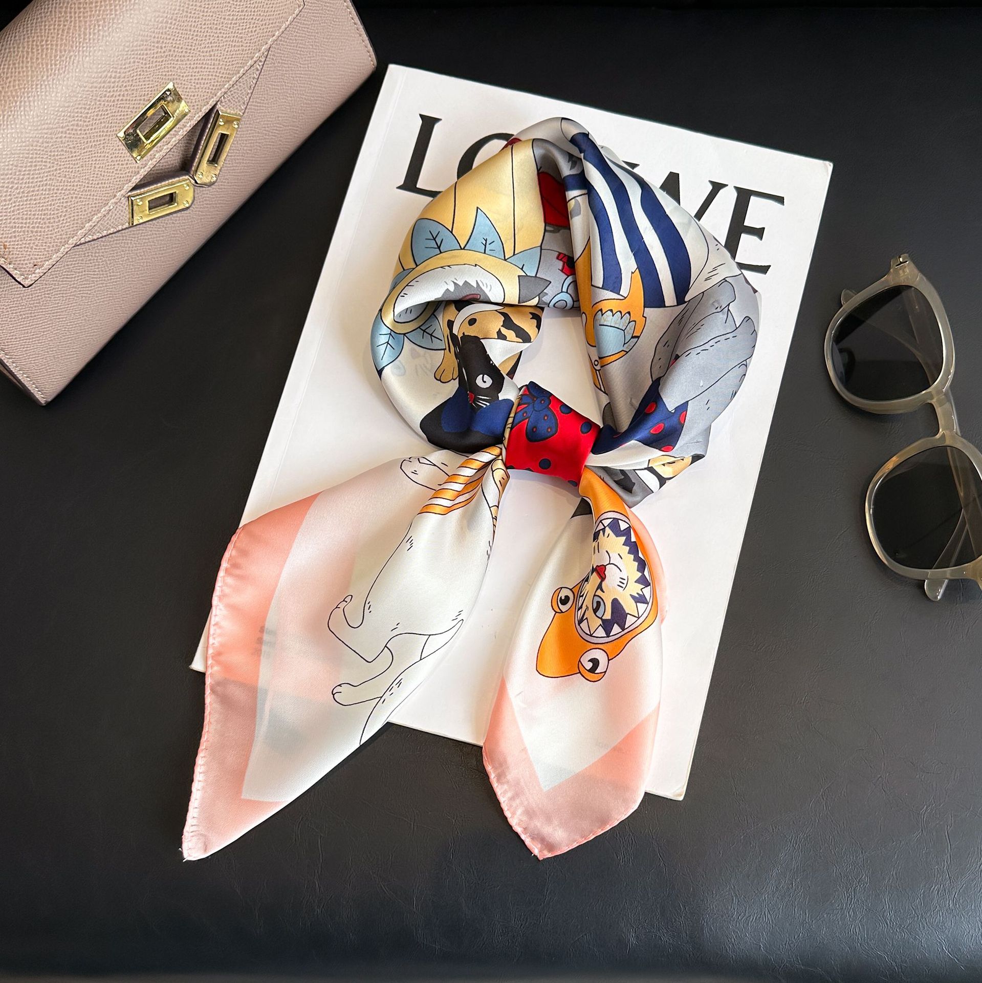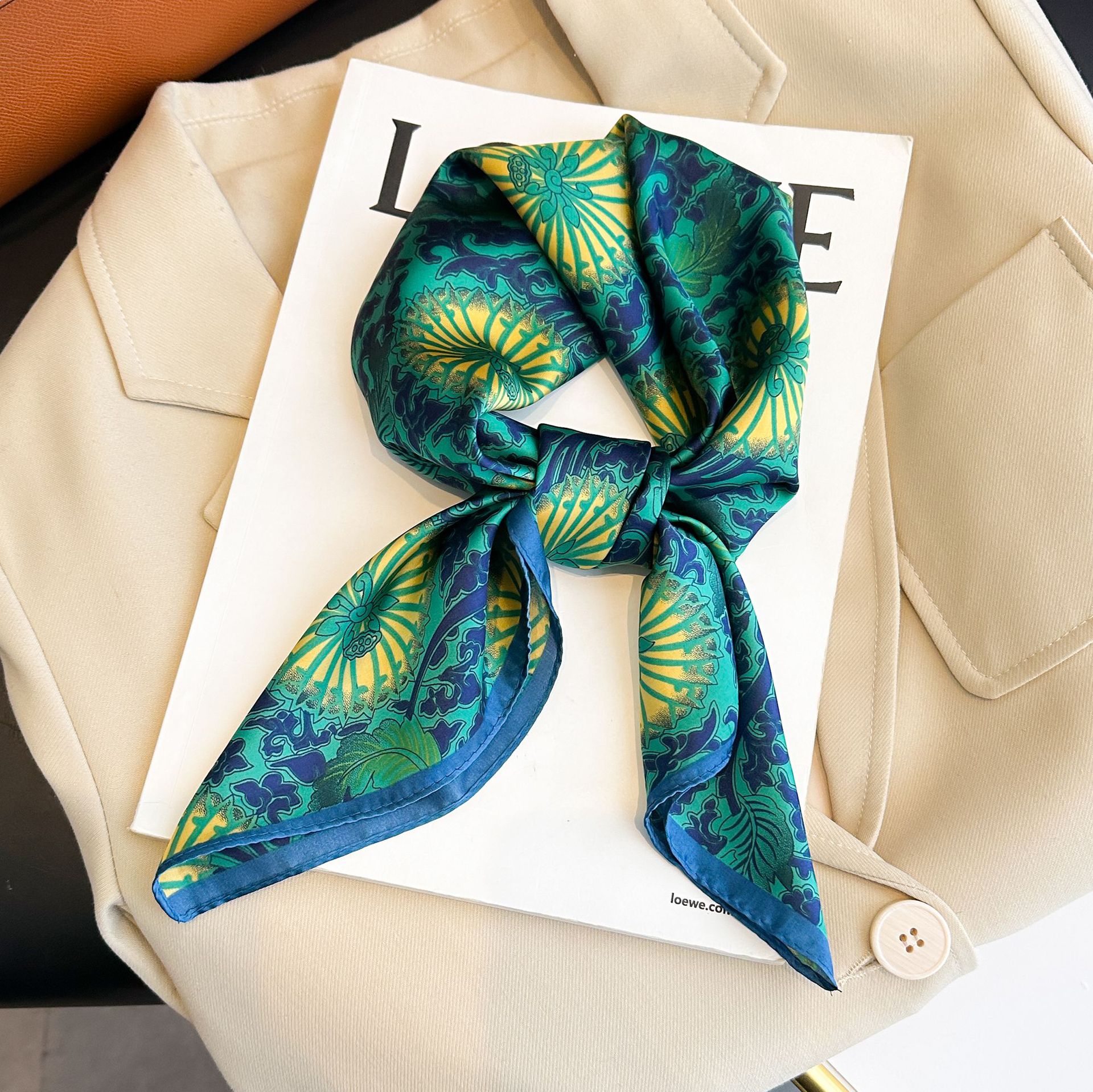 시뮬레이션 실크 프린트 실크 스카프 여성용 작은 사각형 스카프 한국 캐슈 레오파드 프린트 스카프 사계절 스카프 전문 스카프 도매