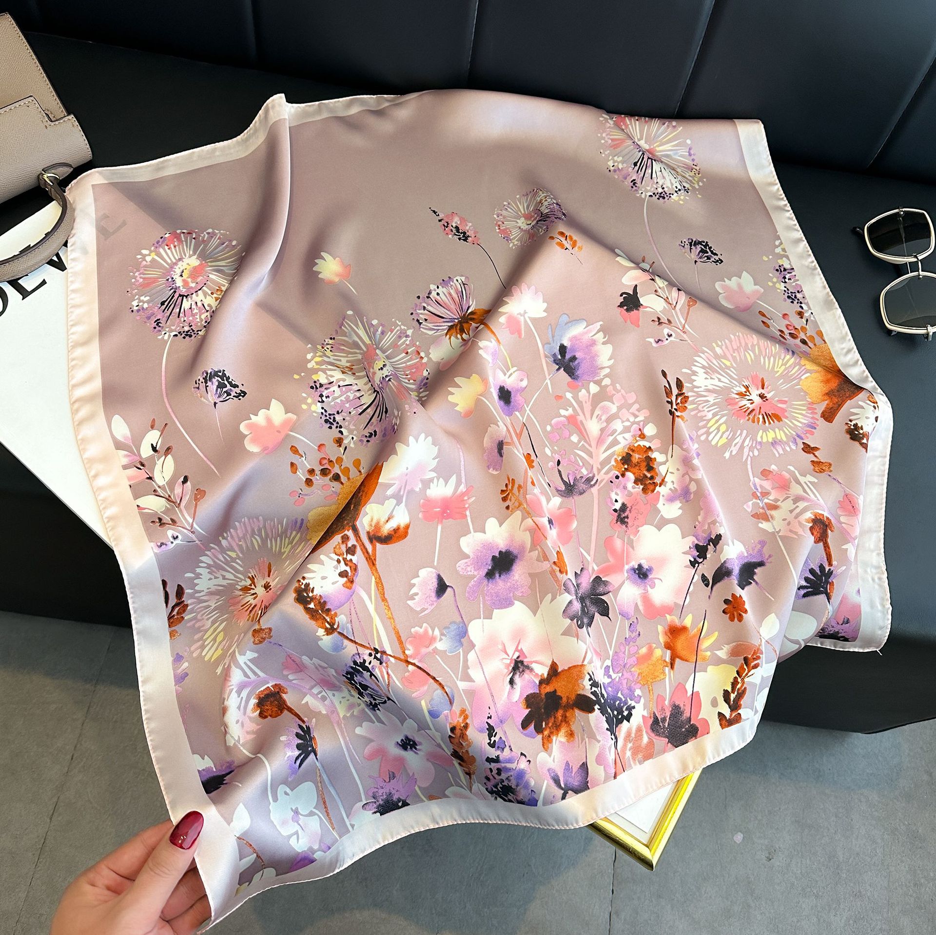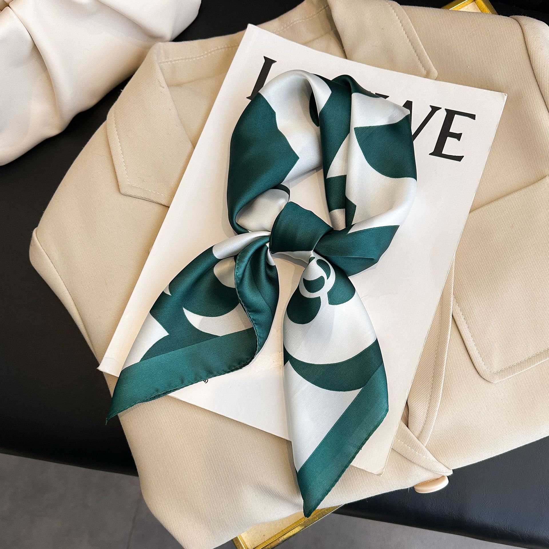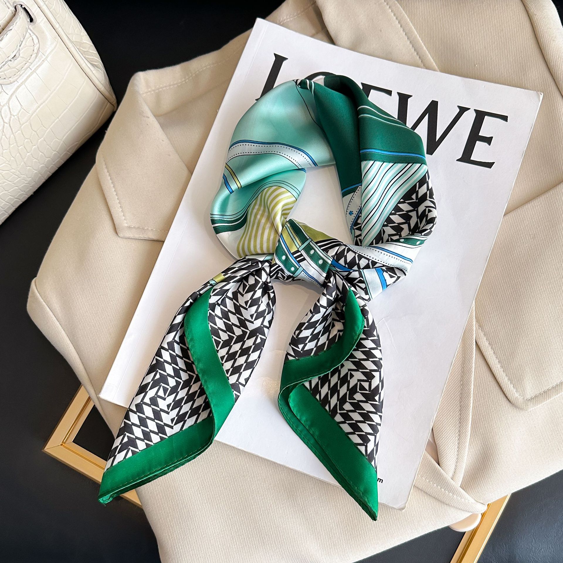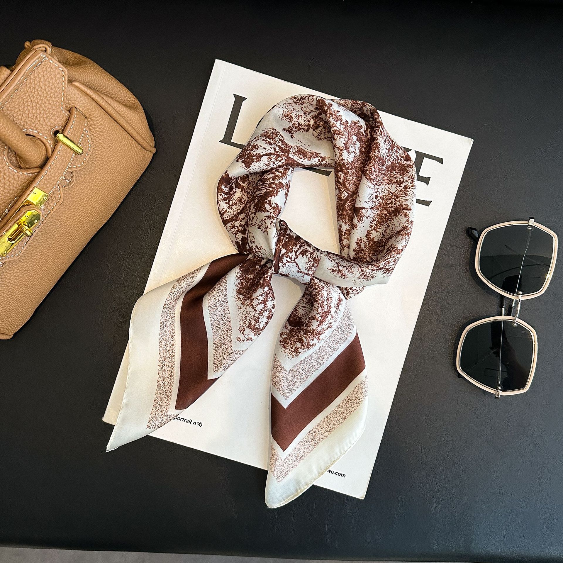 시뮬레이션 실크 프린트 실크 스카프 여성용 작은 사각형 스카프 한국 캐슈 레오파드 프린트 스카프 사계절 스카프 전문 스카프 도매