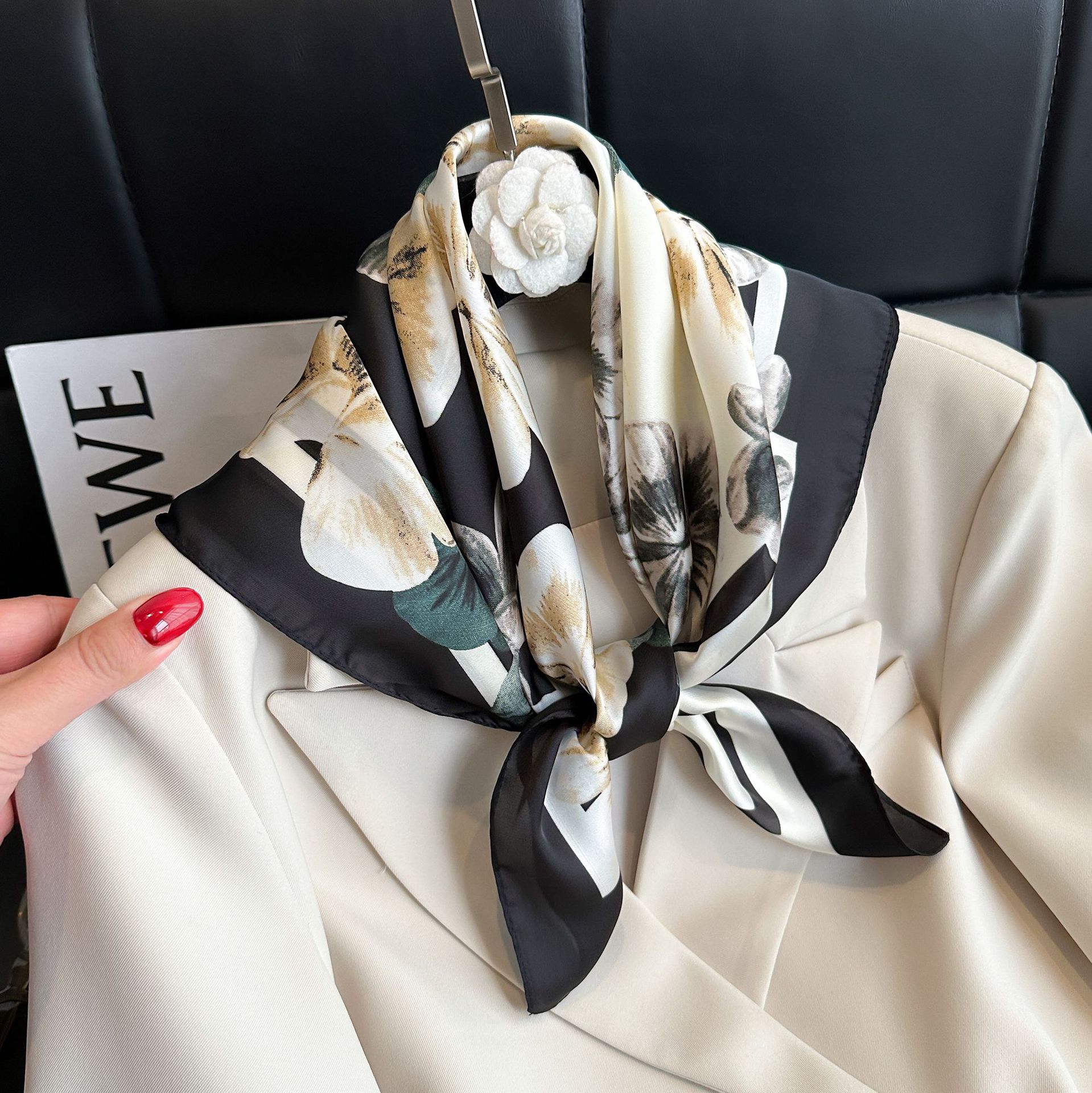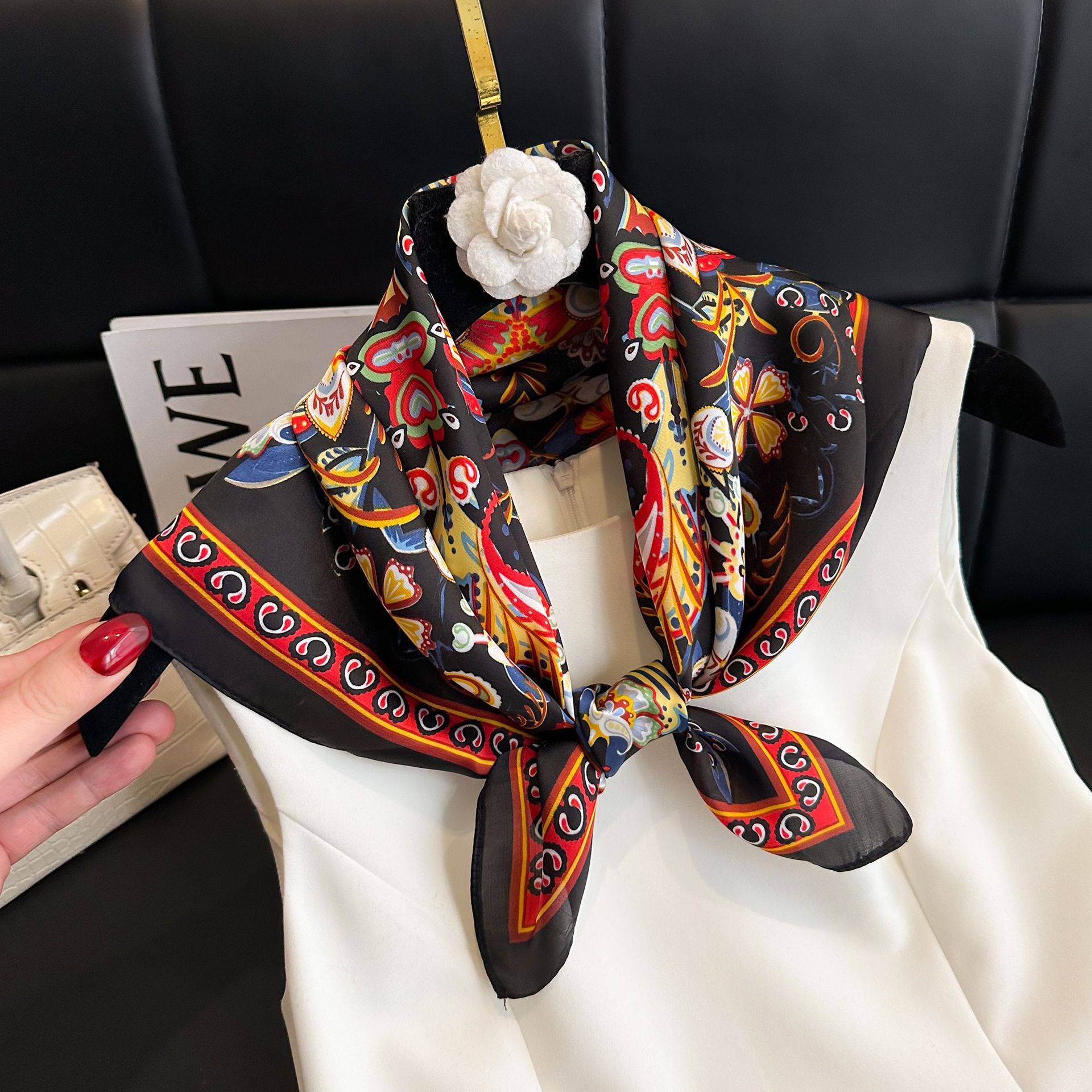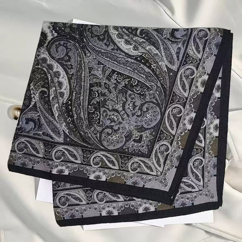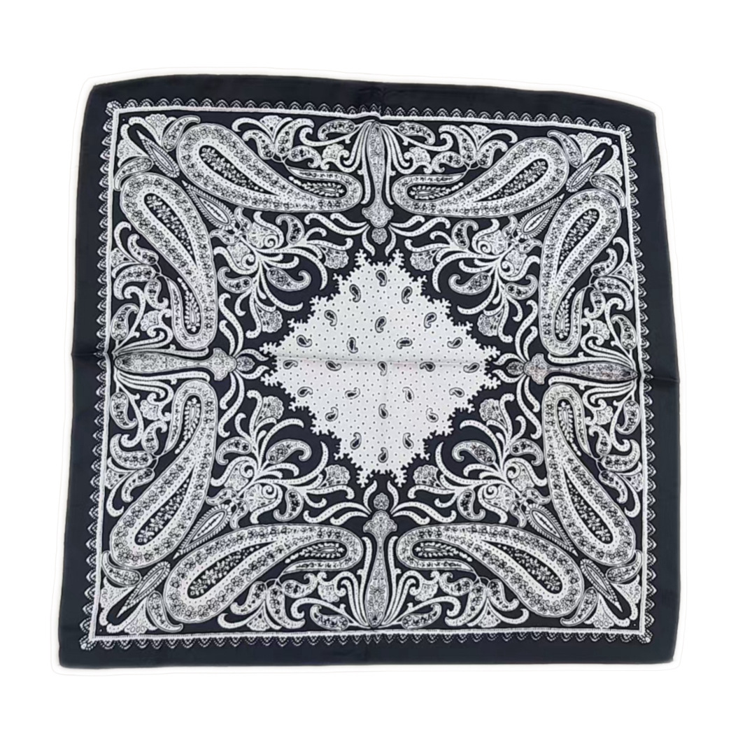 • 중공 캐슈 블랙 실크 스카프