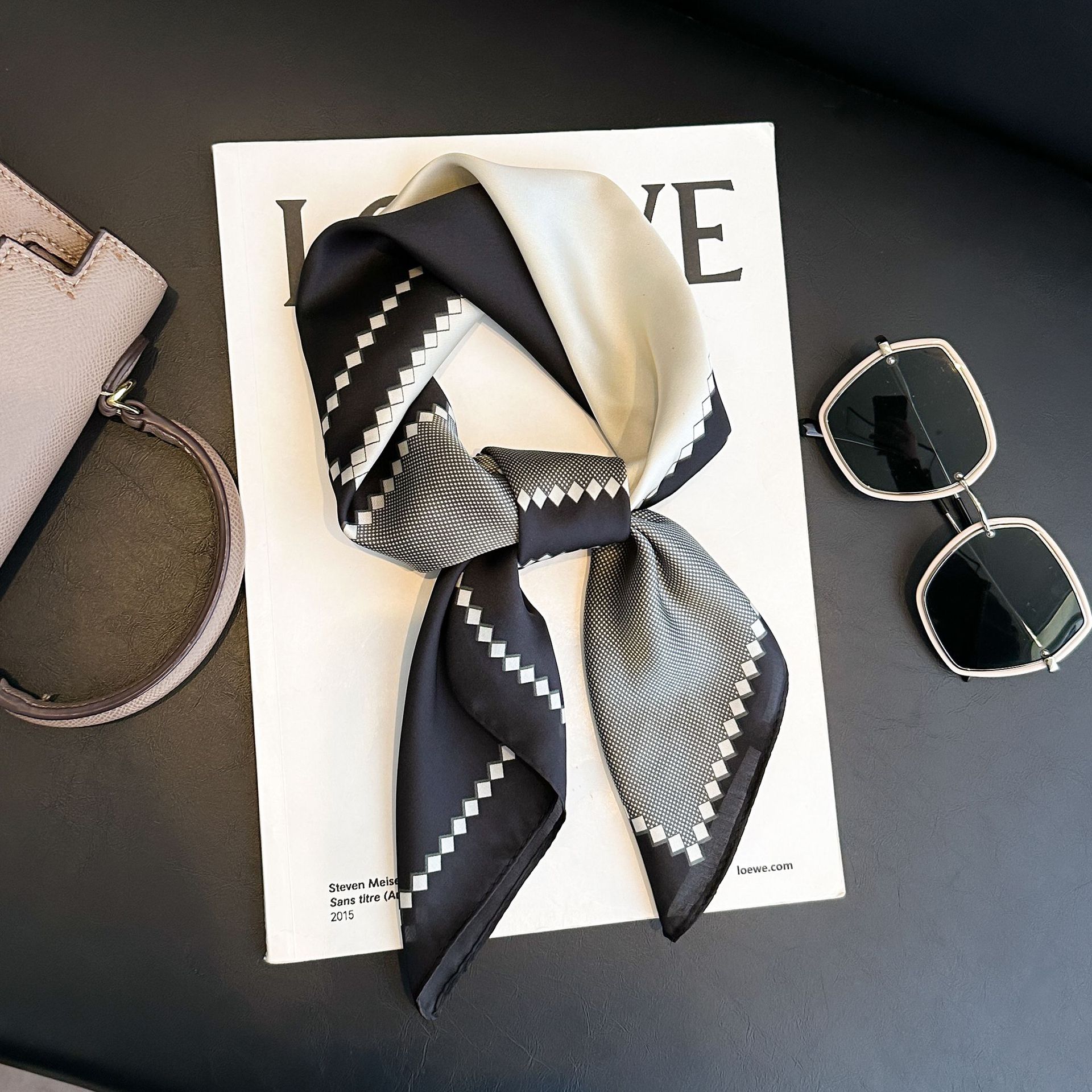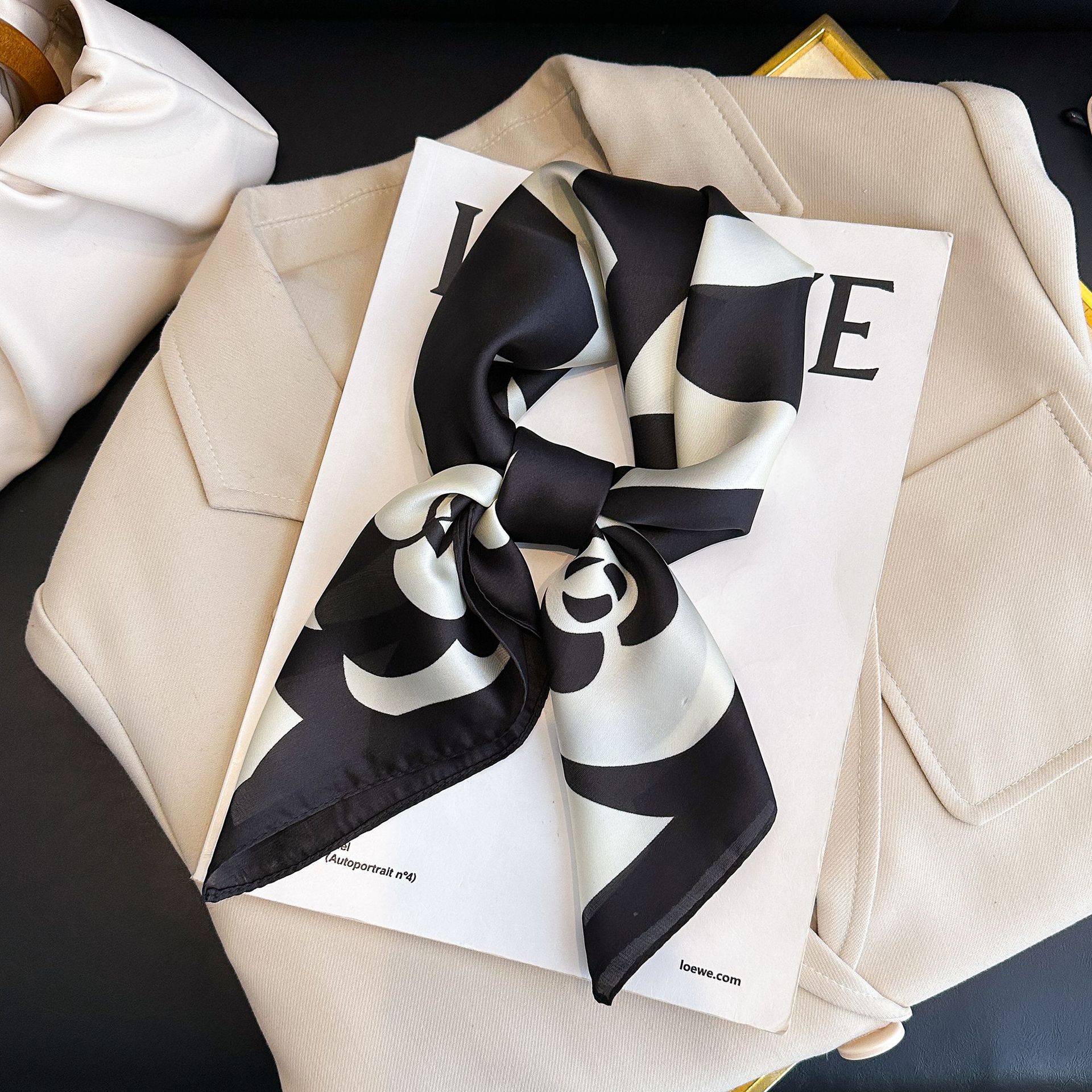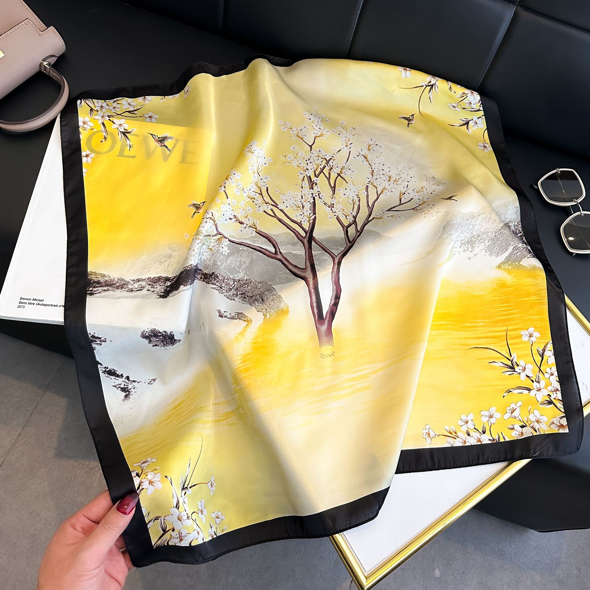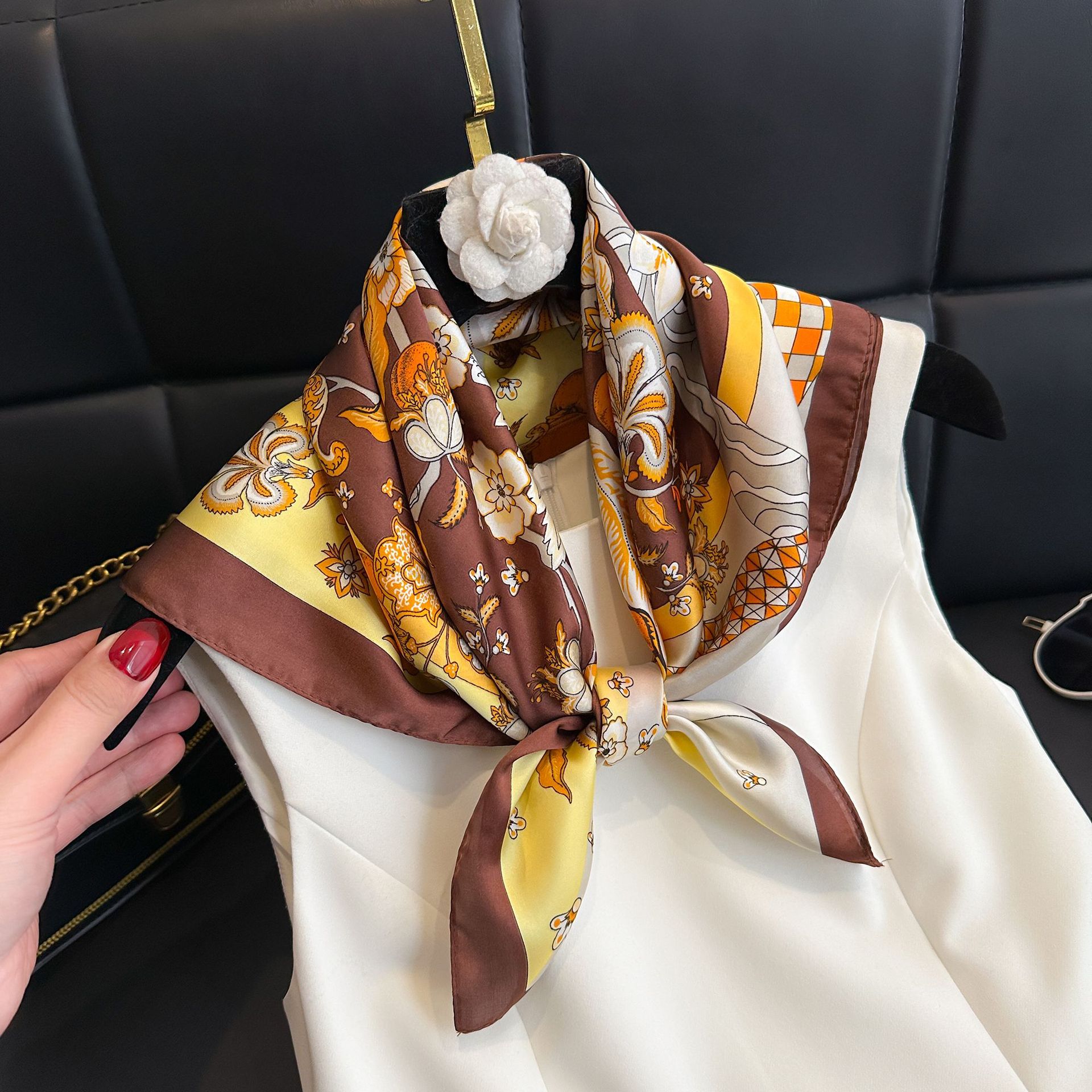 • 중공 캐슈 블랙 실크 스카프