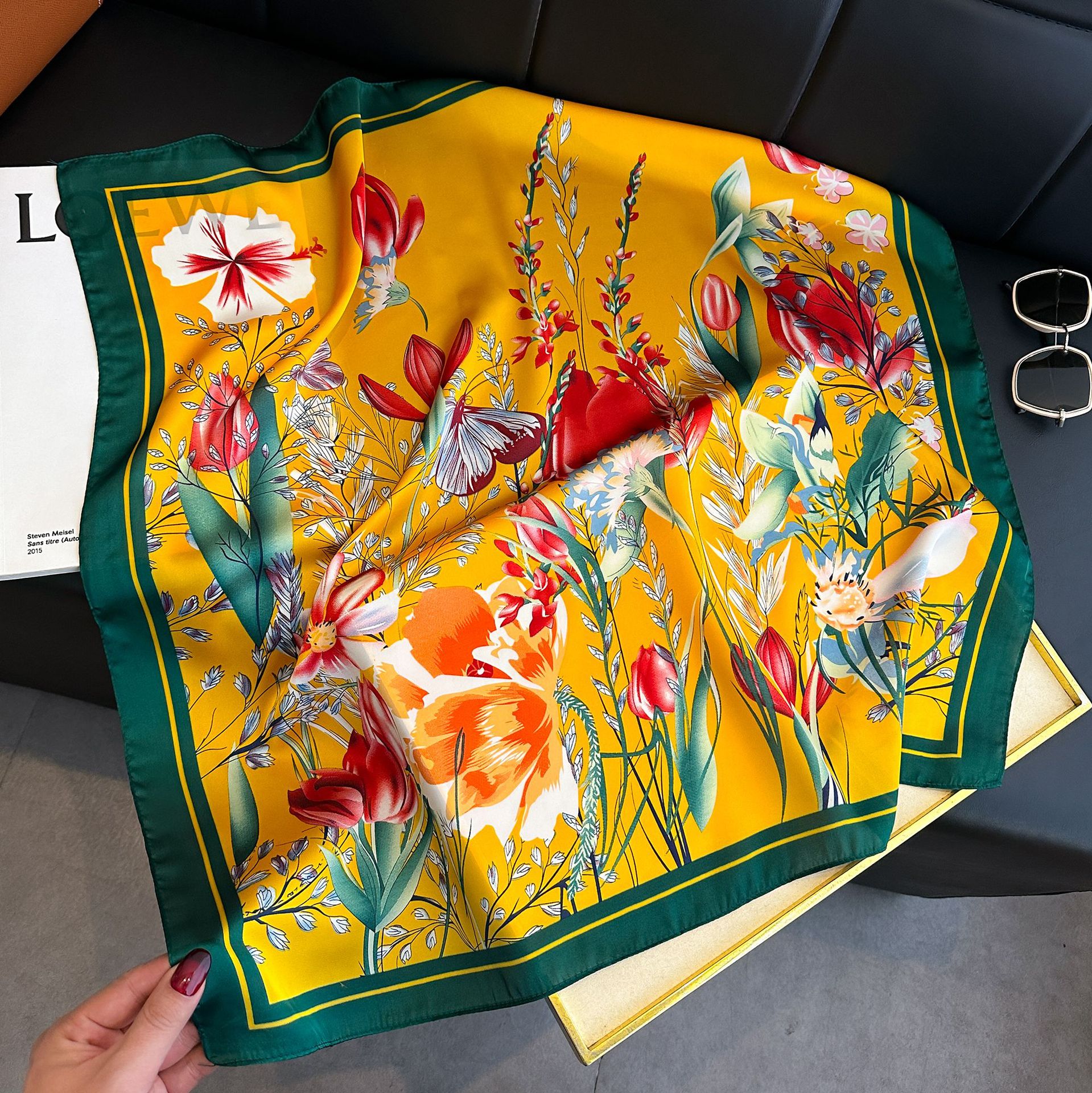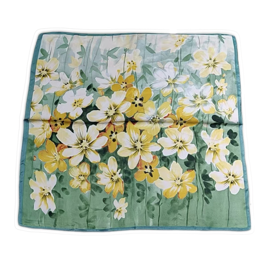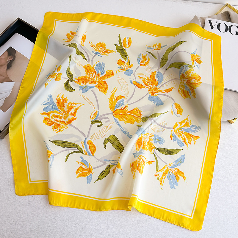 • 랜턴 꽃 노란색 실크 스카프