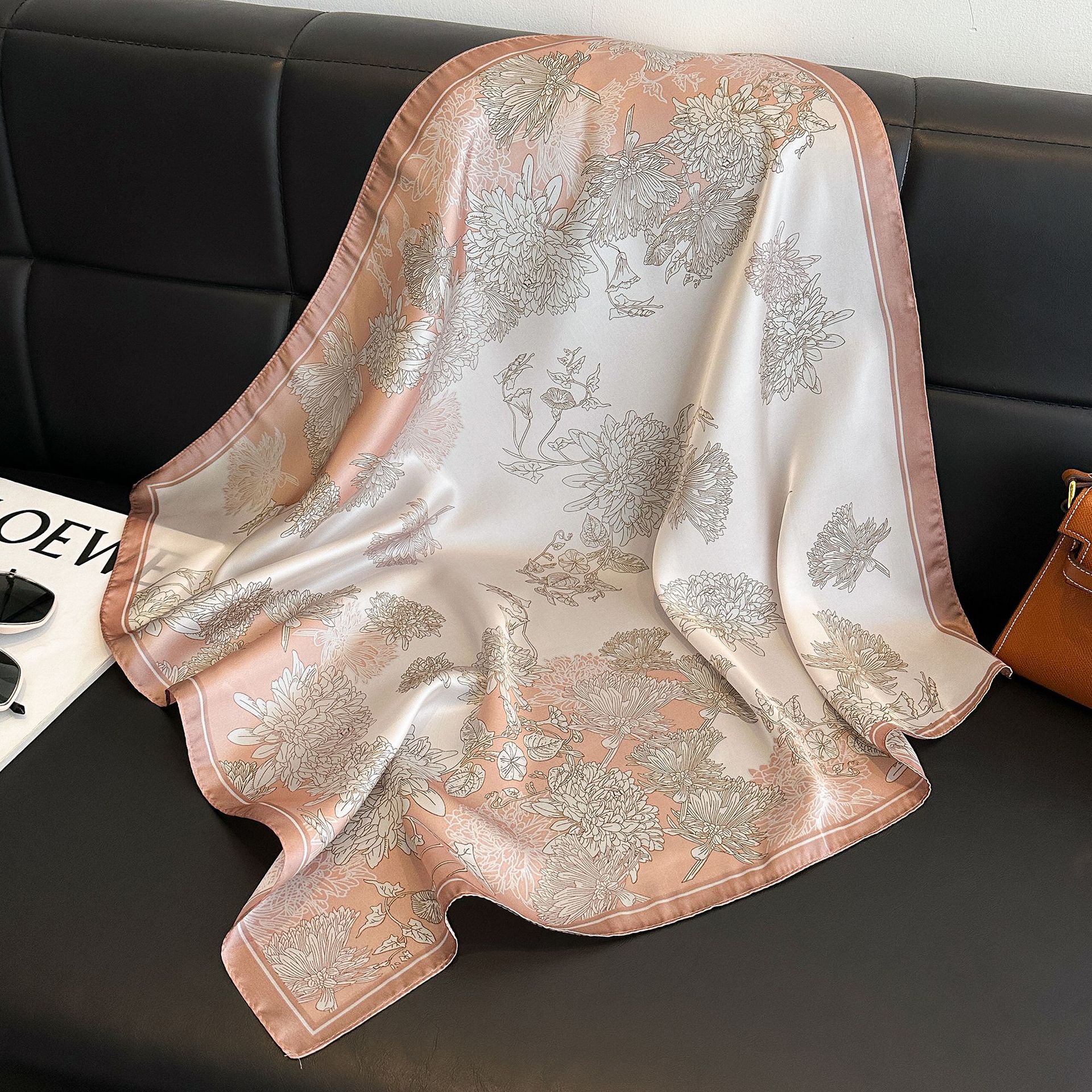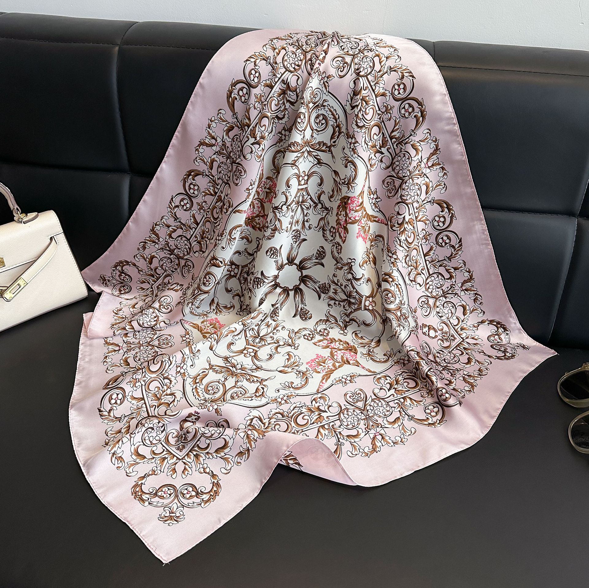• 작은 꽃 캐슈 핑크 실크 스카프
