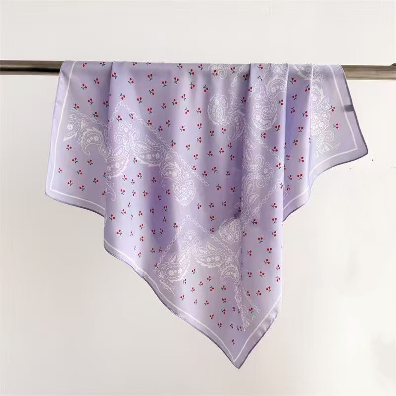 • 작은 꽃 캐슈 퍼플 실크 스카프